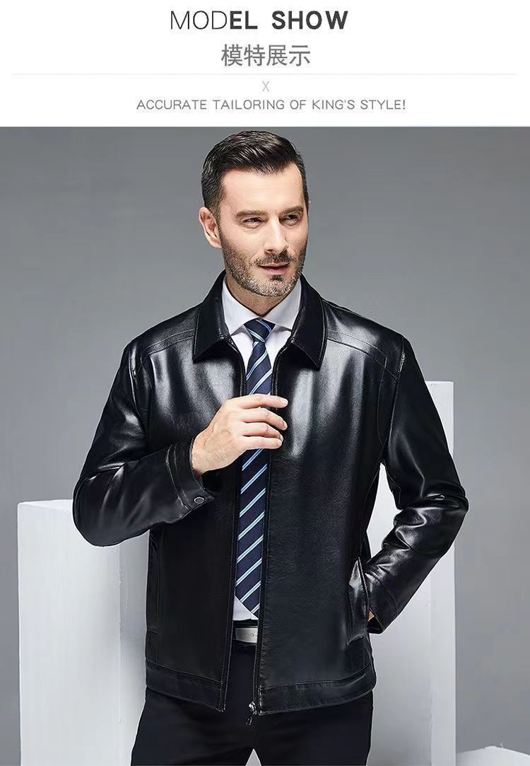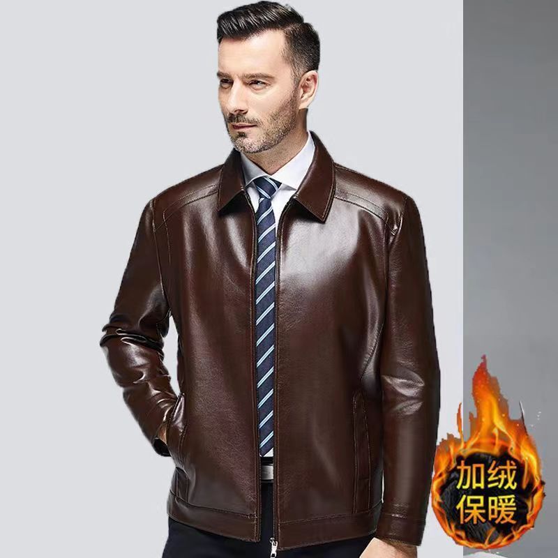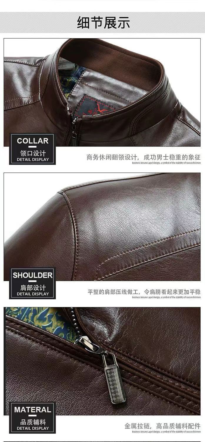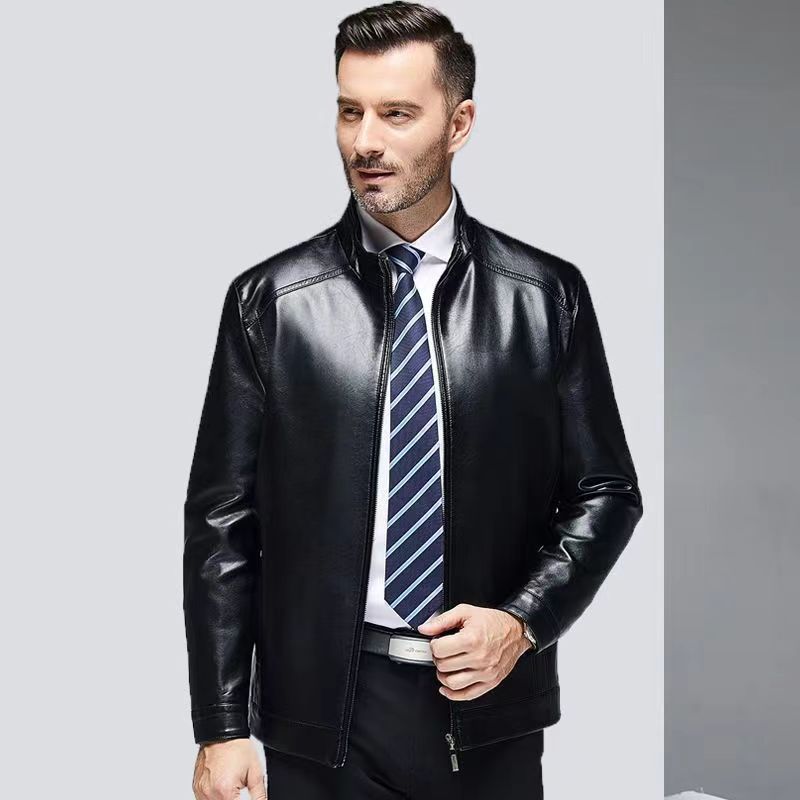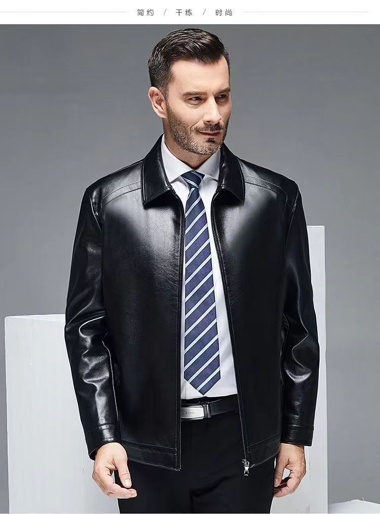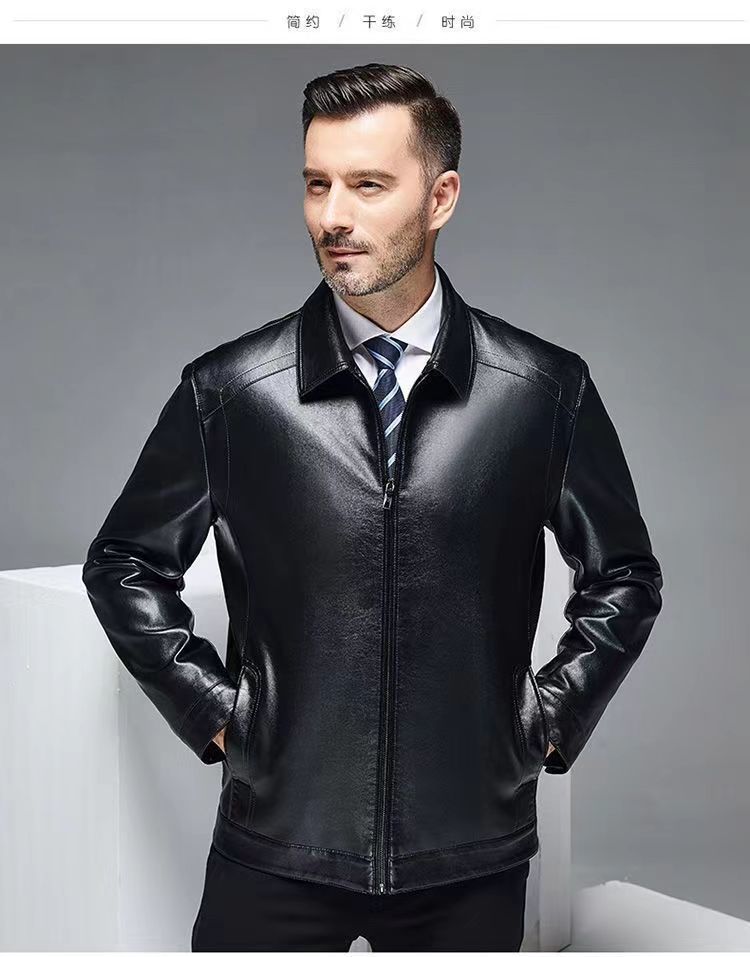 가을 겨울용 남성용 얇은 허니닝 PU 가죽 재킷, 중년 및 노년층을 위한 작업복 스타일 아빠 재킷스토어 가기