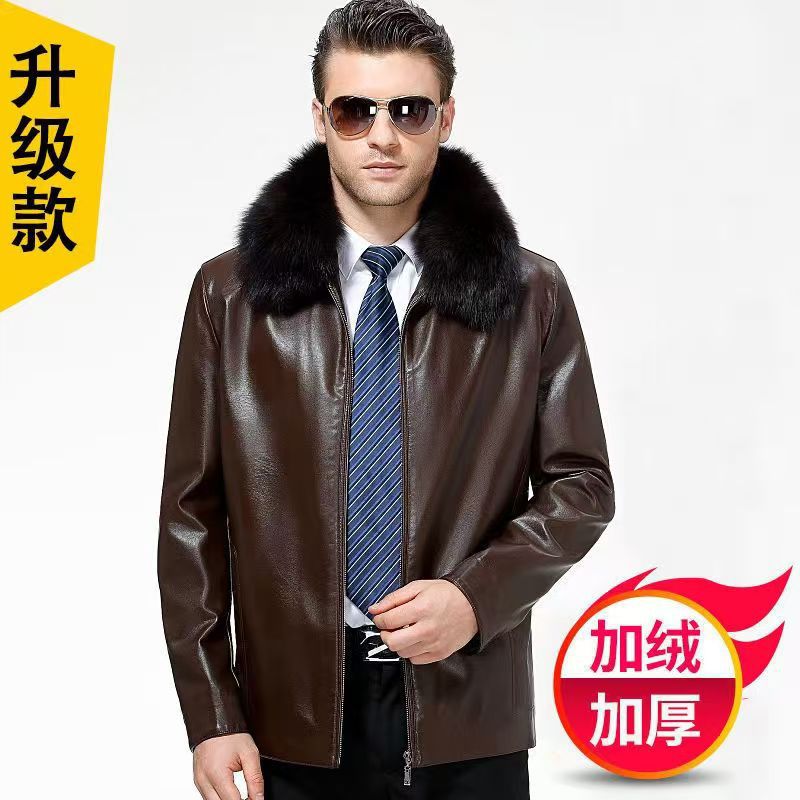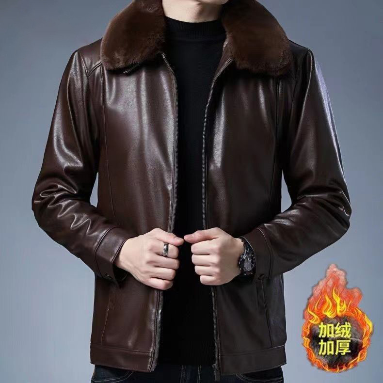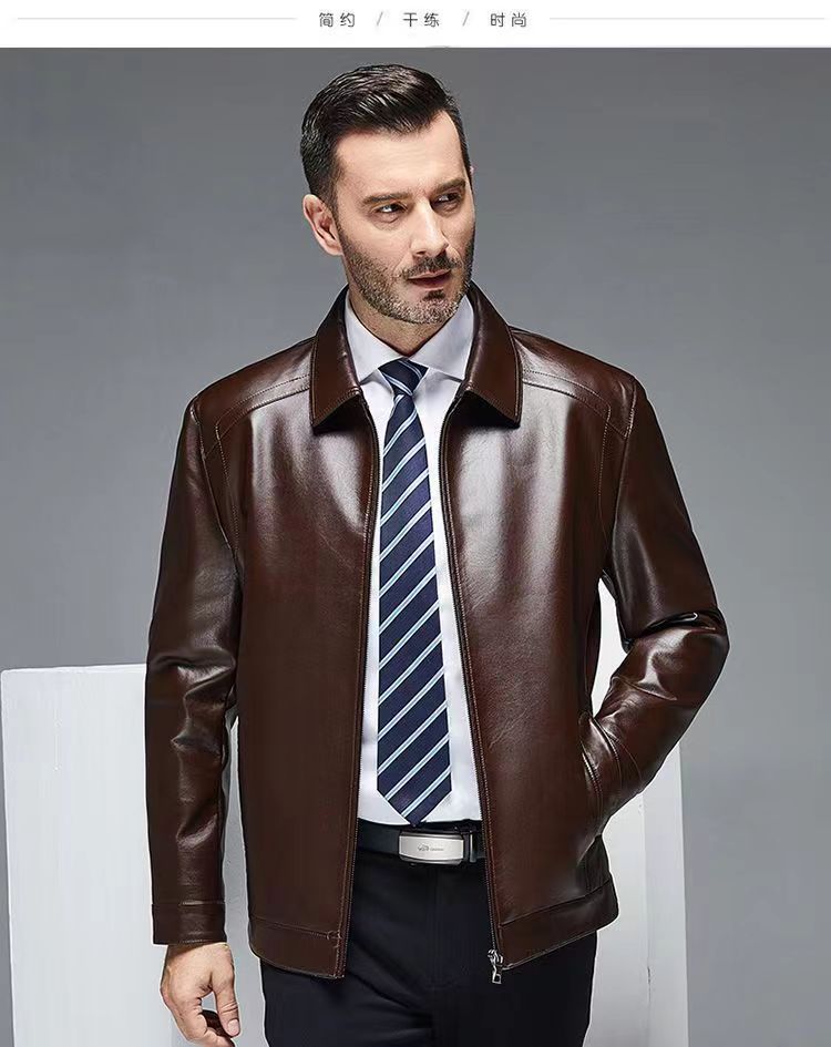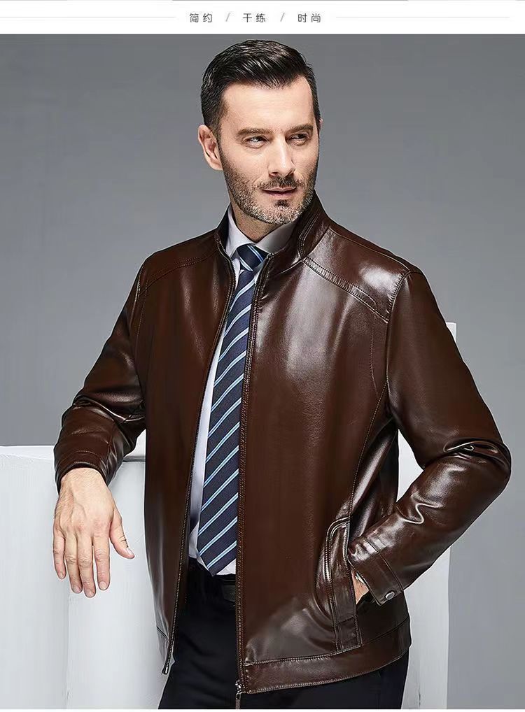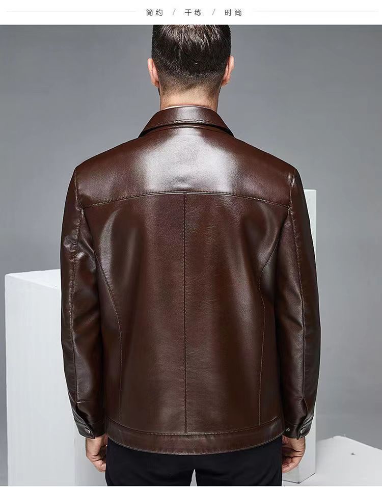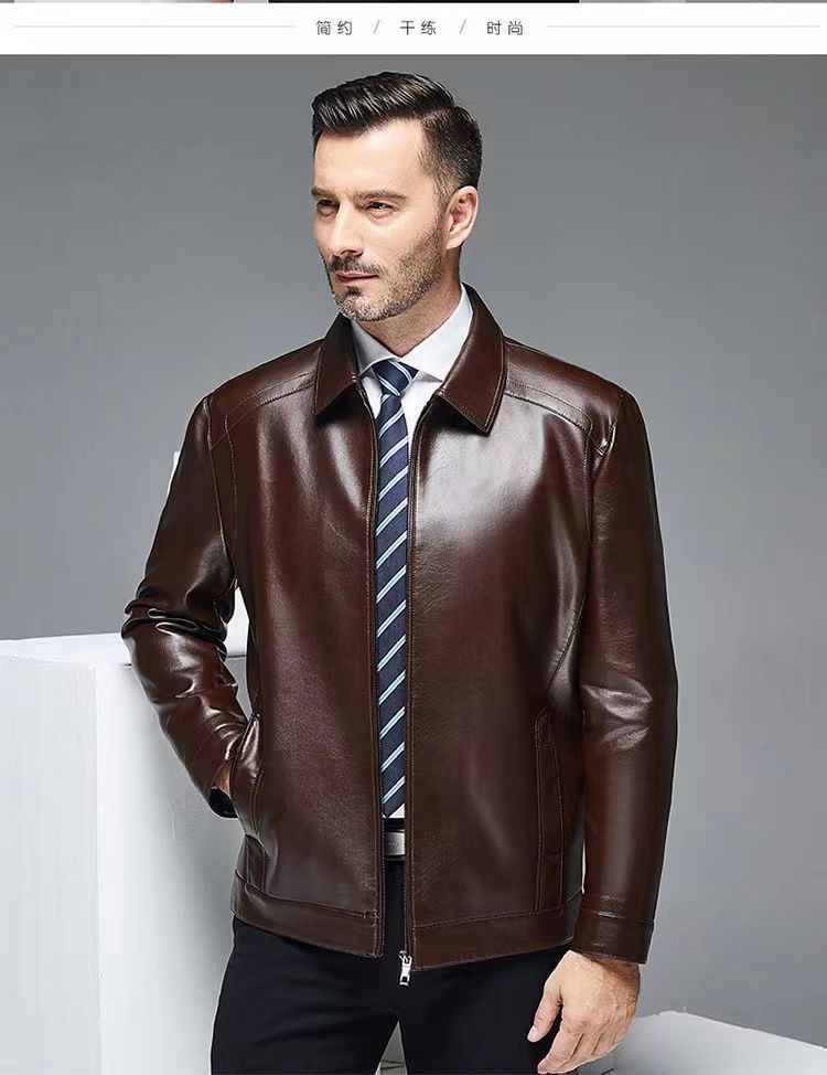 가을 겨울용 남성용 얇은 허니닝 PU 가죽 재킷, 중년 및 노년층을 위한 작업복 스타일 아빠 재킷스토어 가기