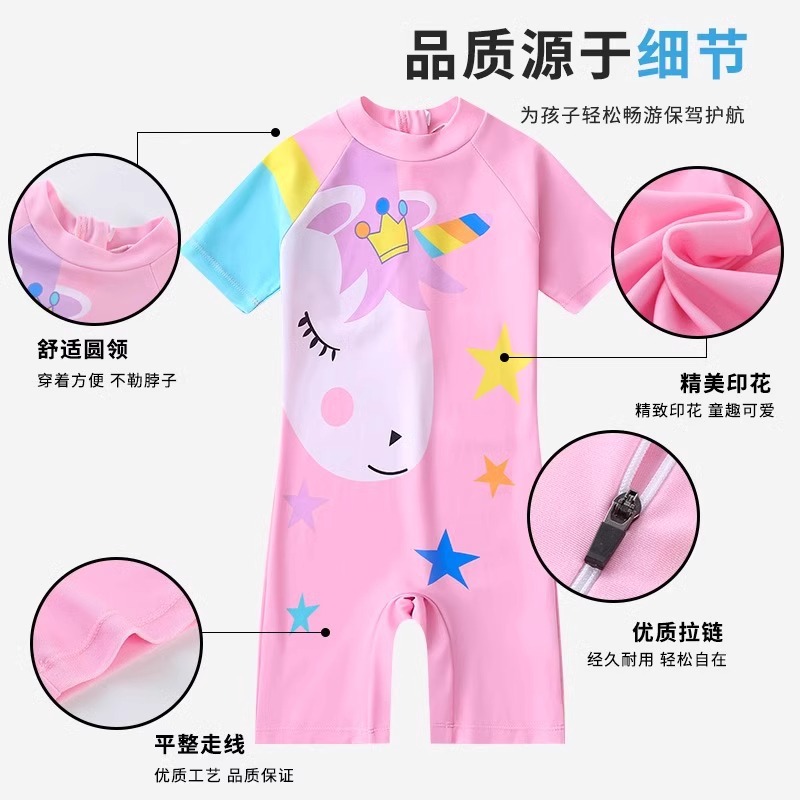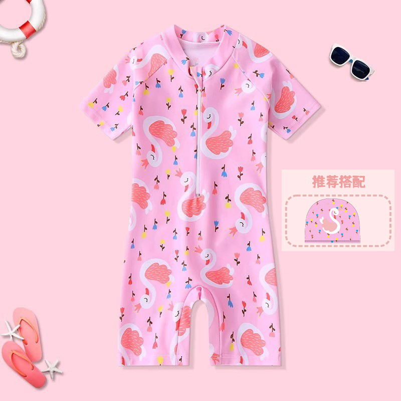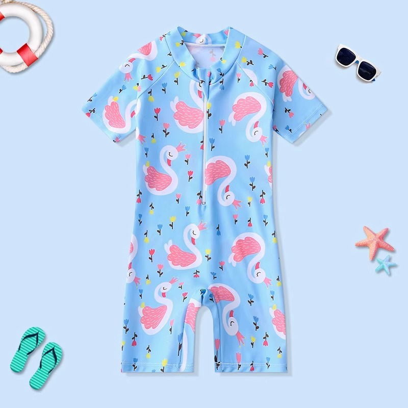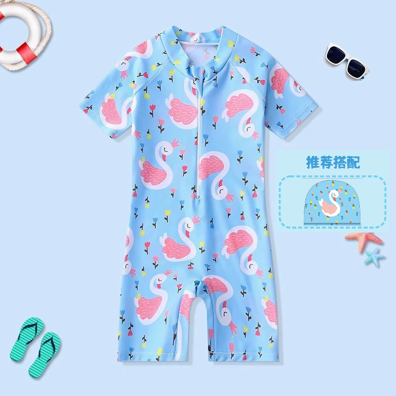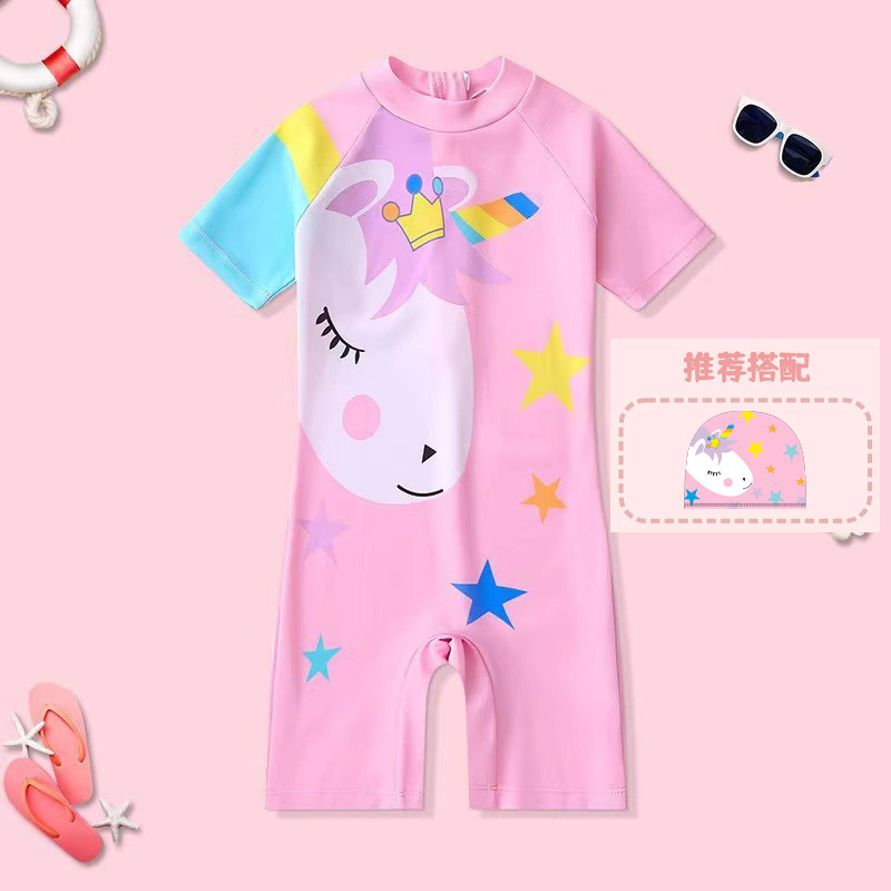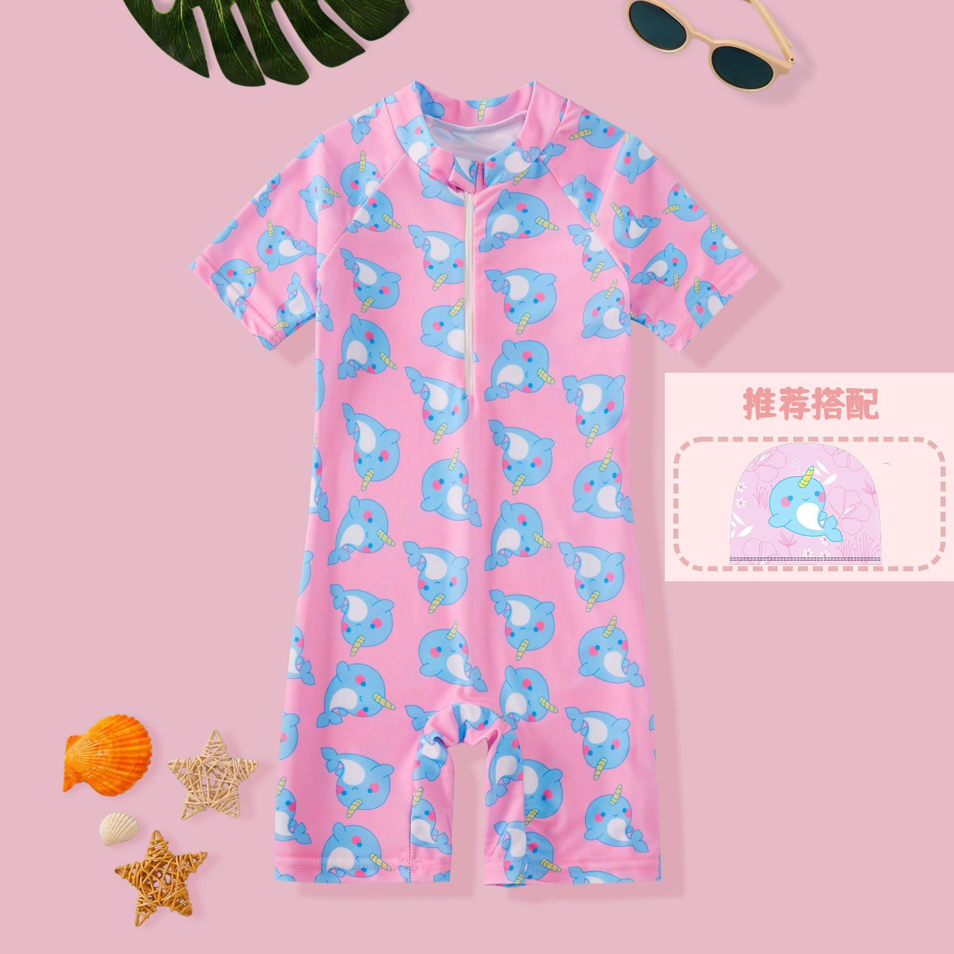 2024 여아 수영복 만화 반팔 어린이 수영복 원피스 3세 6세 남아 수영복 세트 수영모 유아용