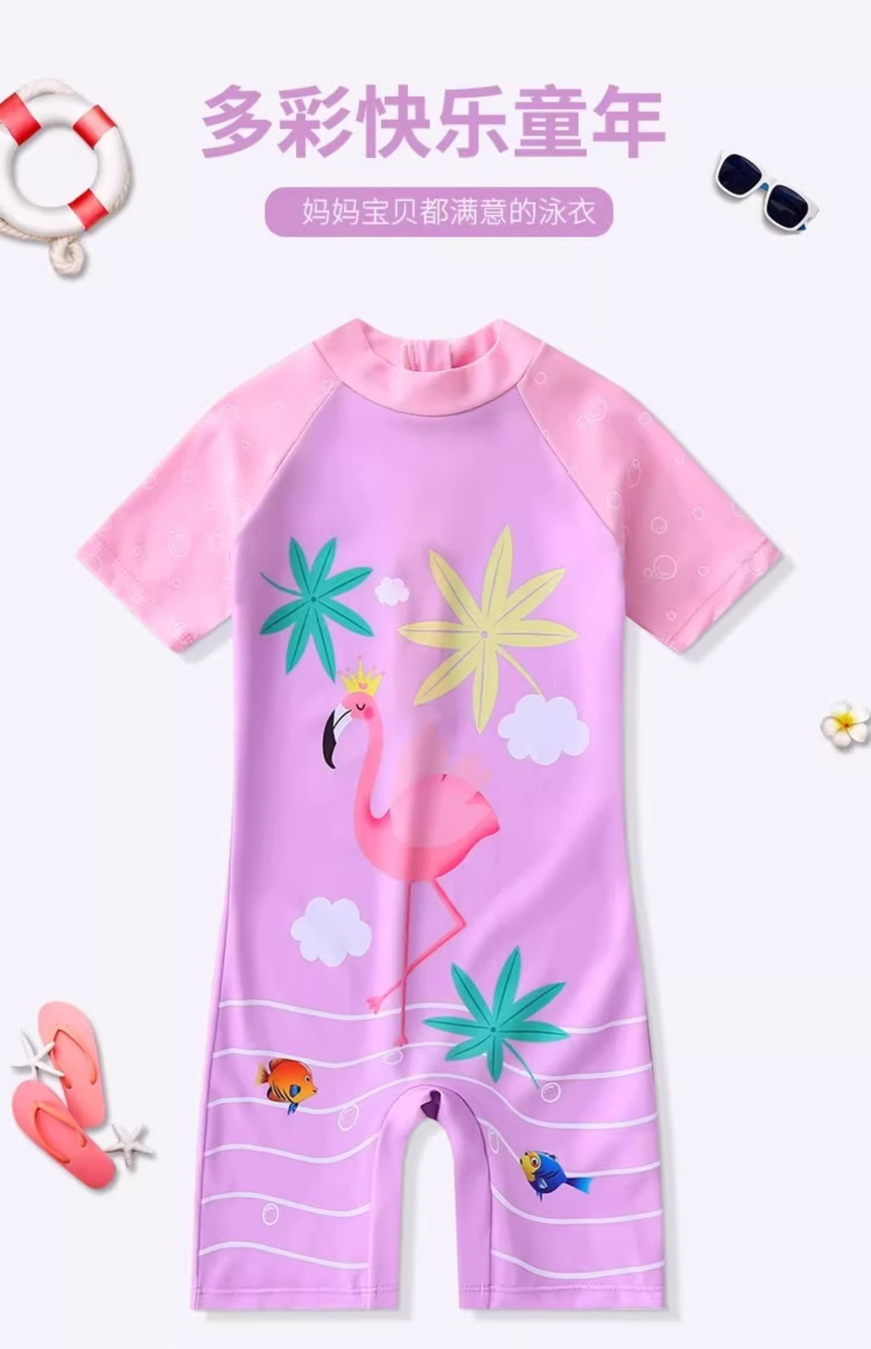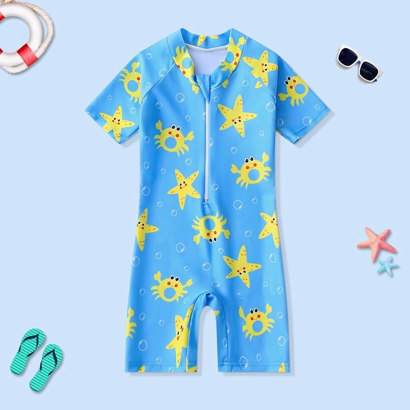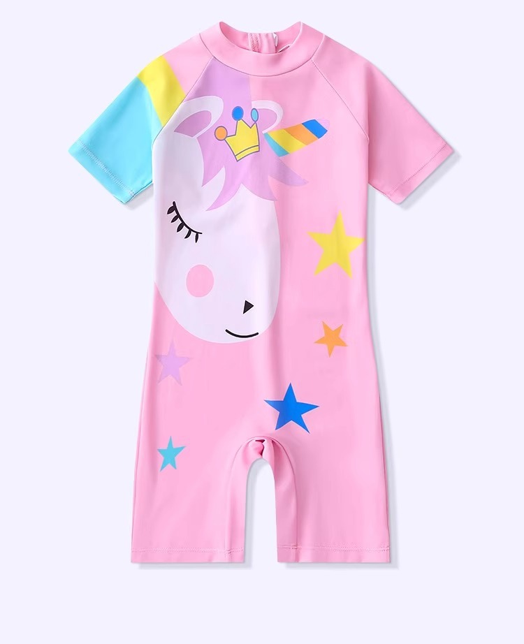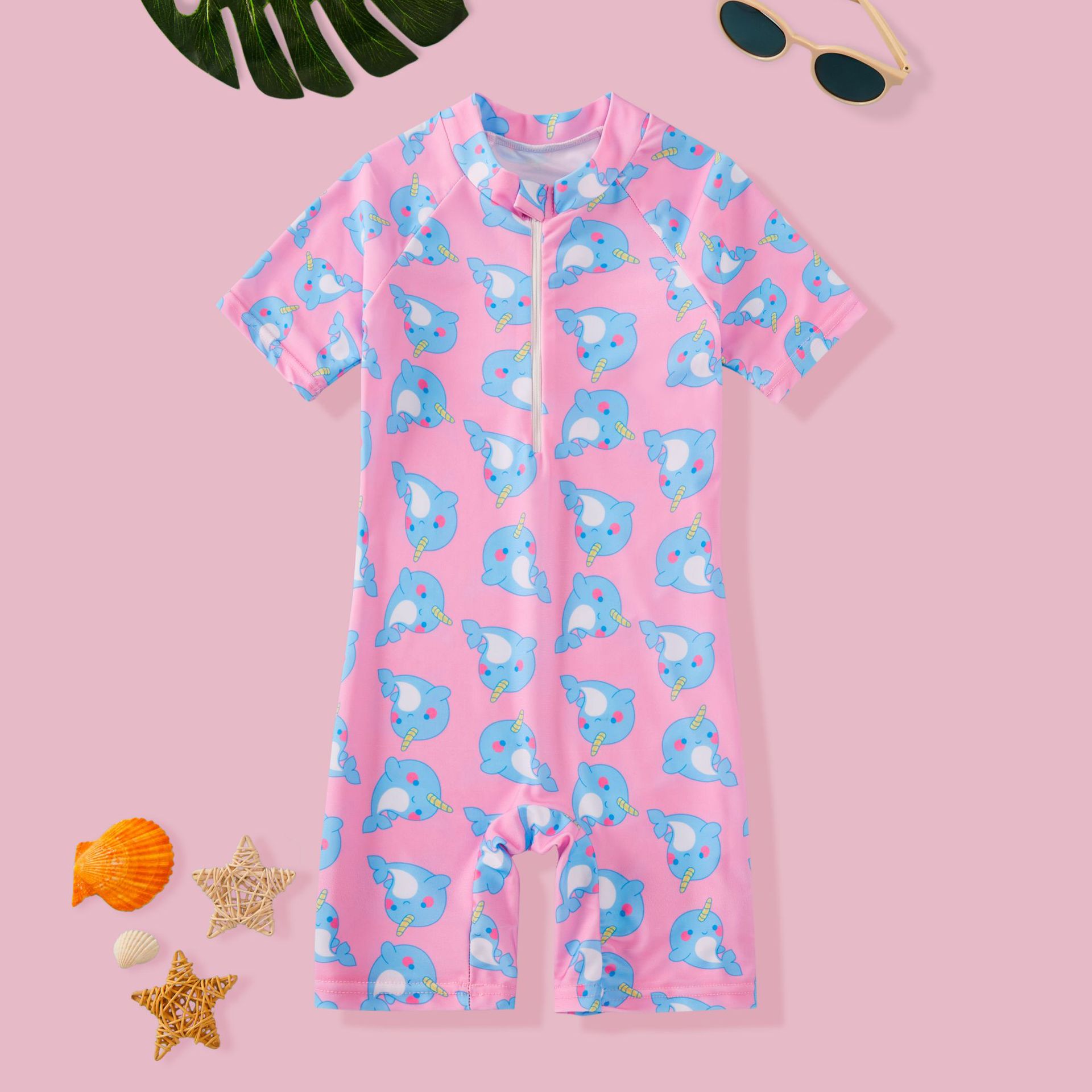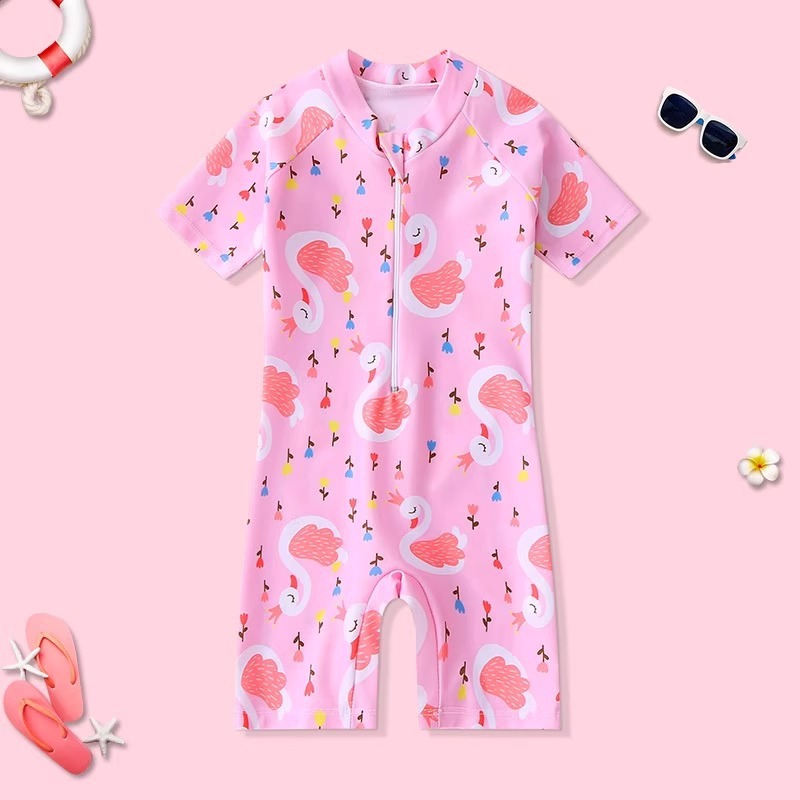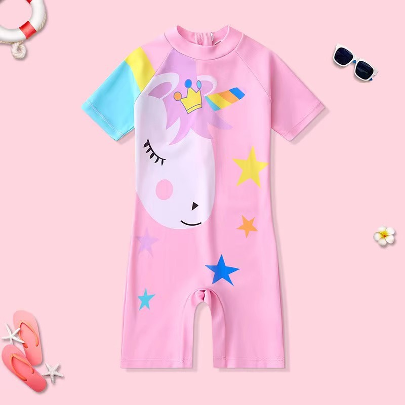 2024 여아 수영복 만화 반팔 어린이 수영복 원피스 3세 6세 남아 수영복 세트 수영모 유아용