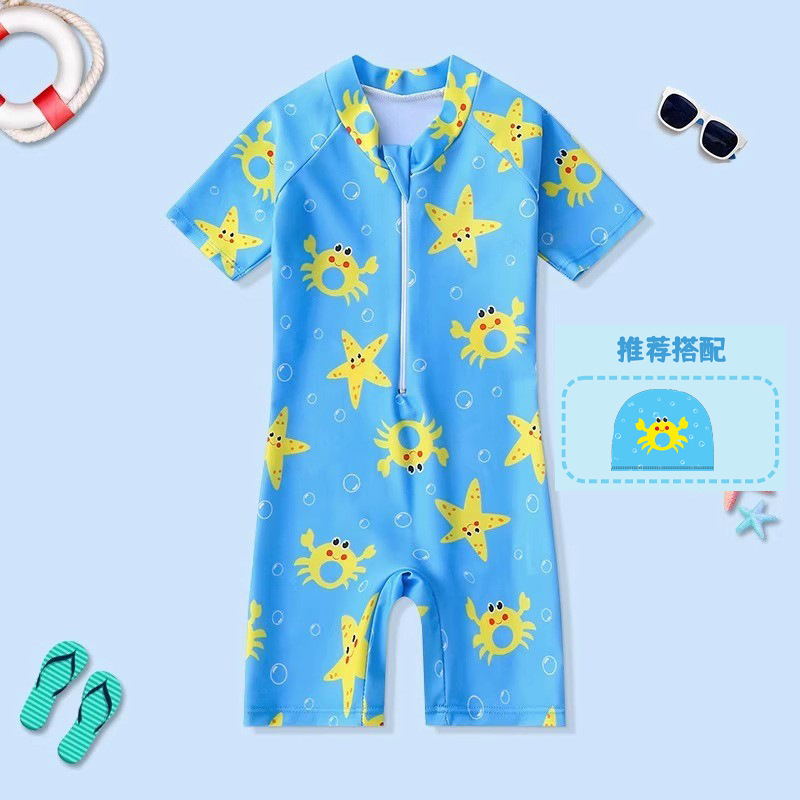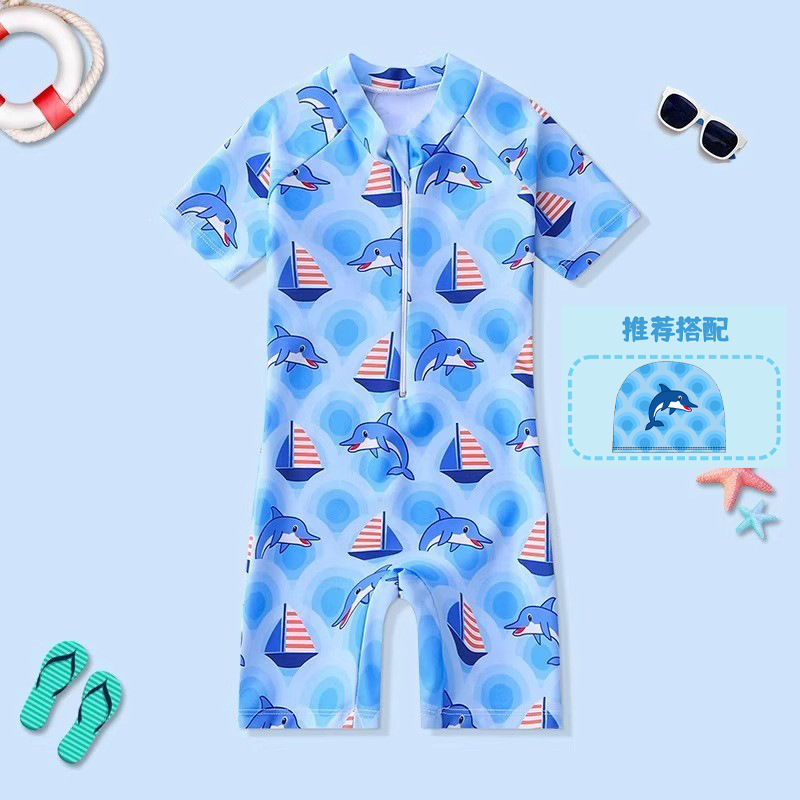 2024 여아 수영복 만화 반팔 어린이 수영복 원피스 3세 6세 남아 수영복 세트 수영모 유아용스토어 가기