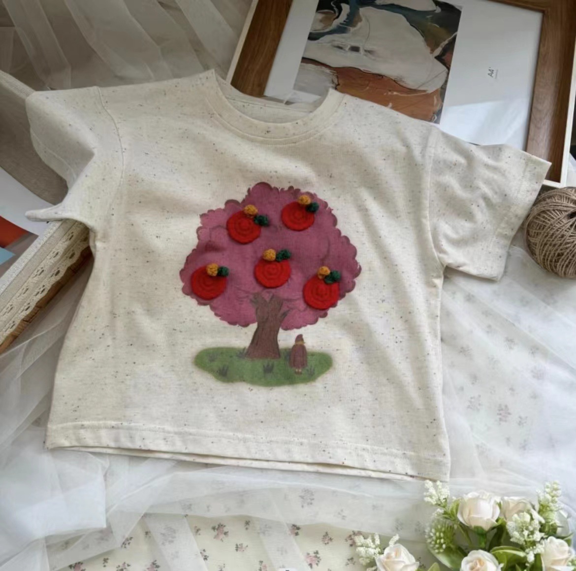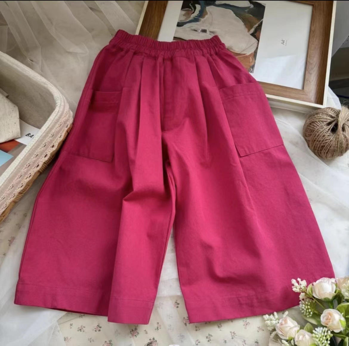 한국 아동복 소녀 세트 2024 여름 서양식 만화 인쇄 느슨한 반팔 티셔츠 로즈 레드 와이드 레그 바지스토어 가기