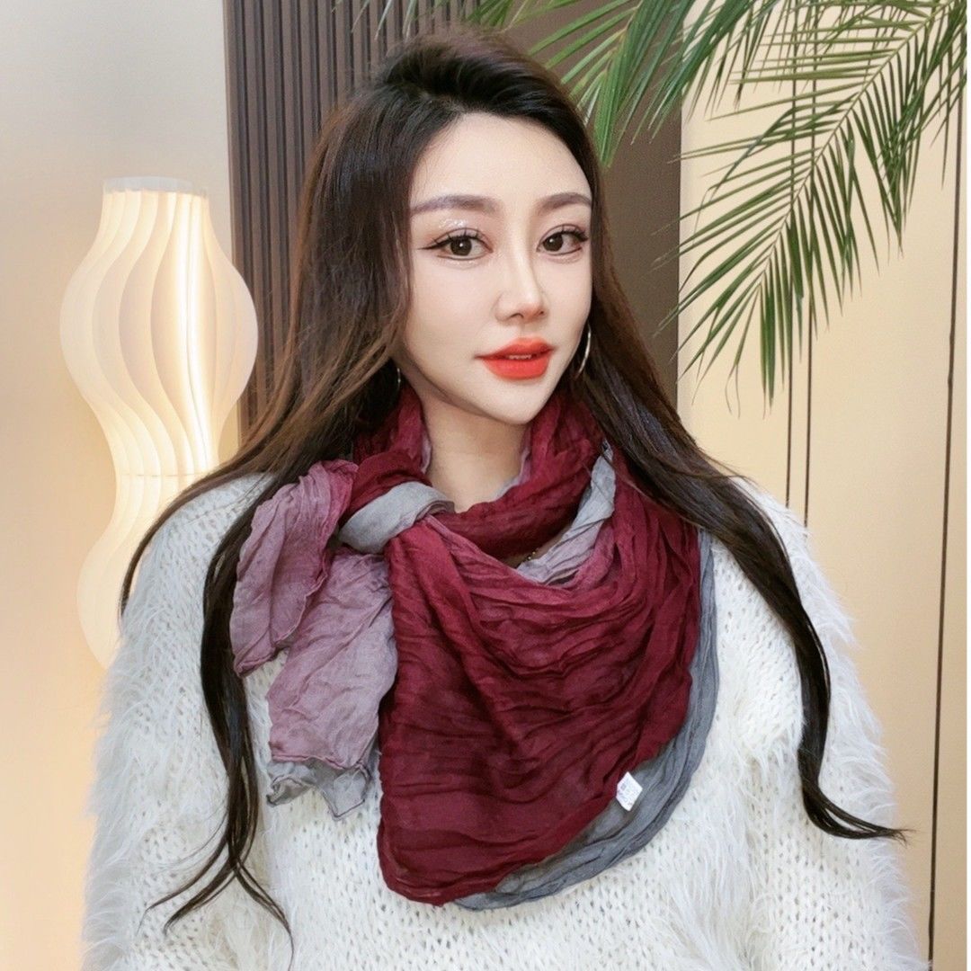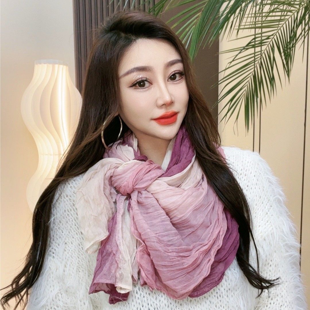 2024 새로운 2 색 스카프 긴 스카프 서양식 다재다능한 얇은 주름 긴 우아한 직사각형 여성용 스카프스토어 가기