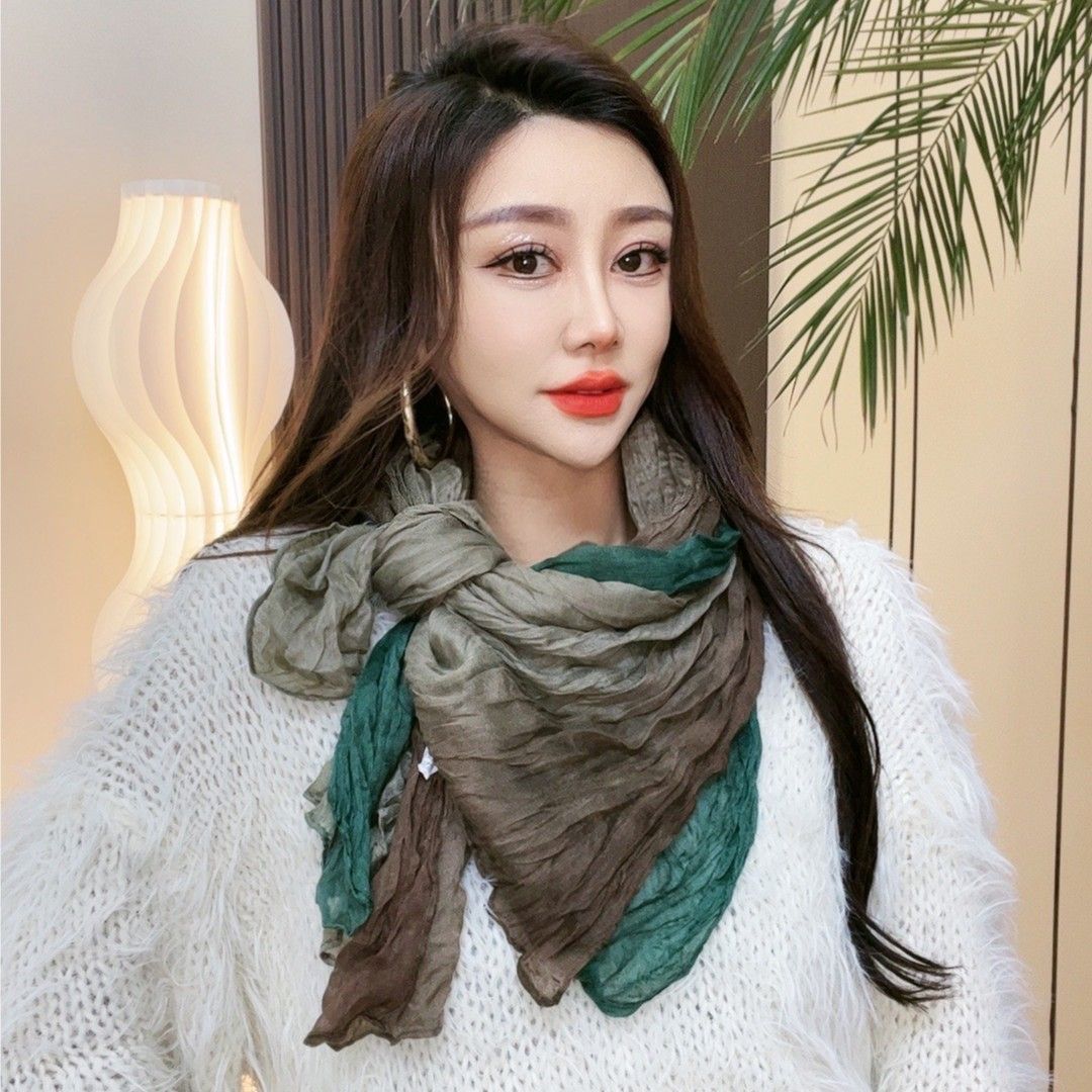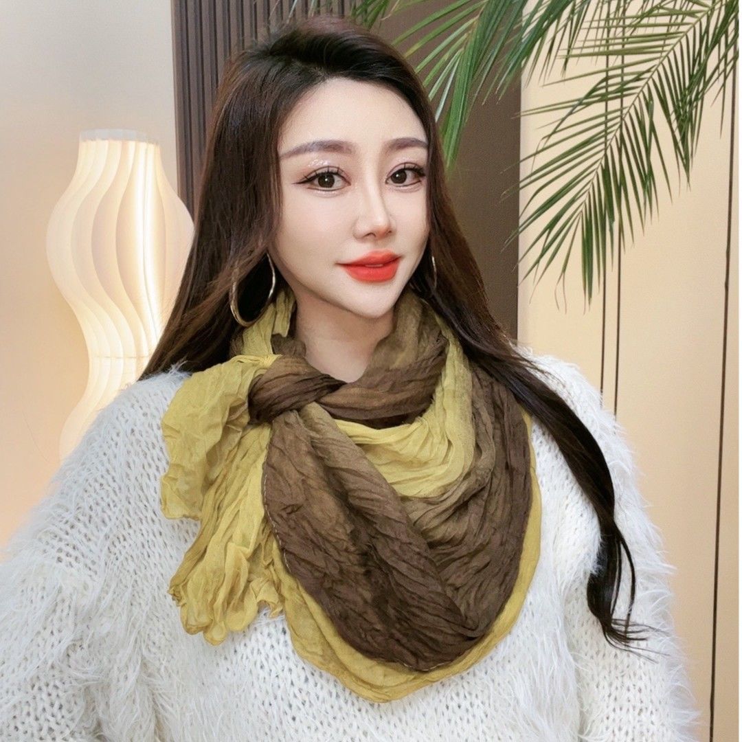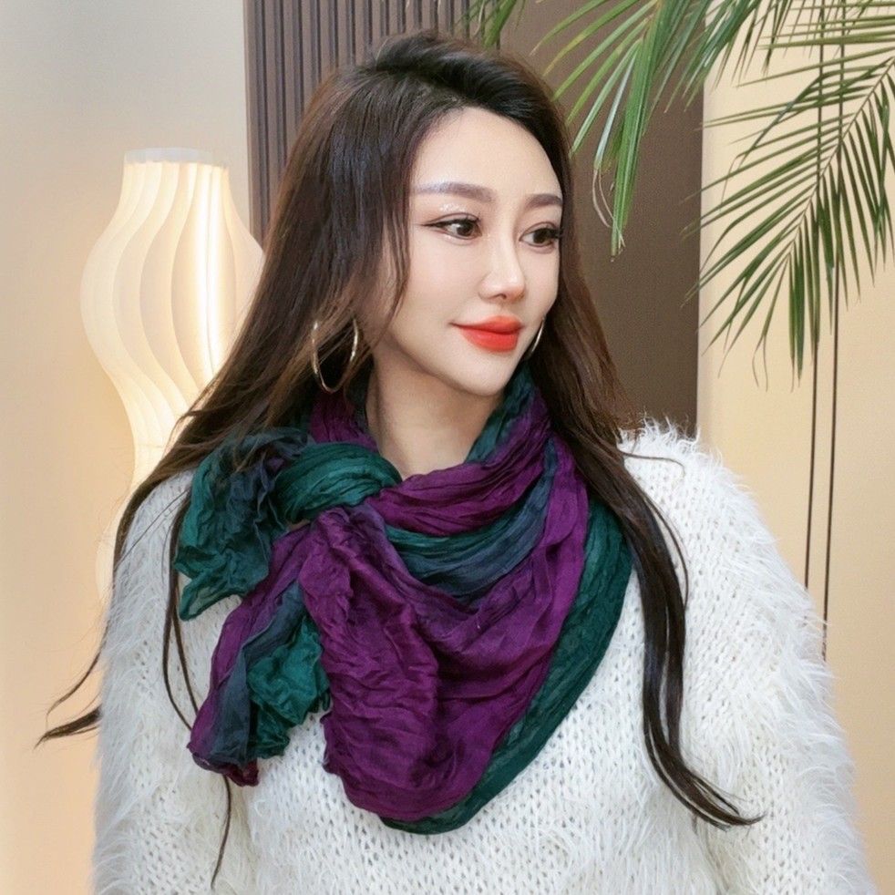 2024 새로운 2 색 스카프 긴 스카프 서양식 다재다능한 얇은 주름 긴 우아한 직사각형 여성용 스카프