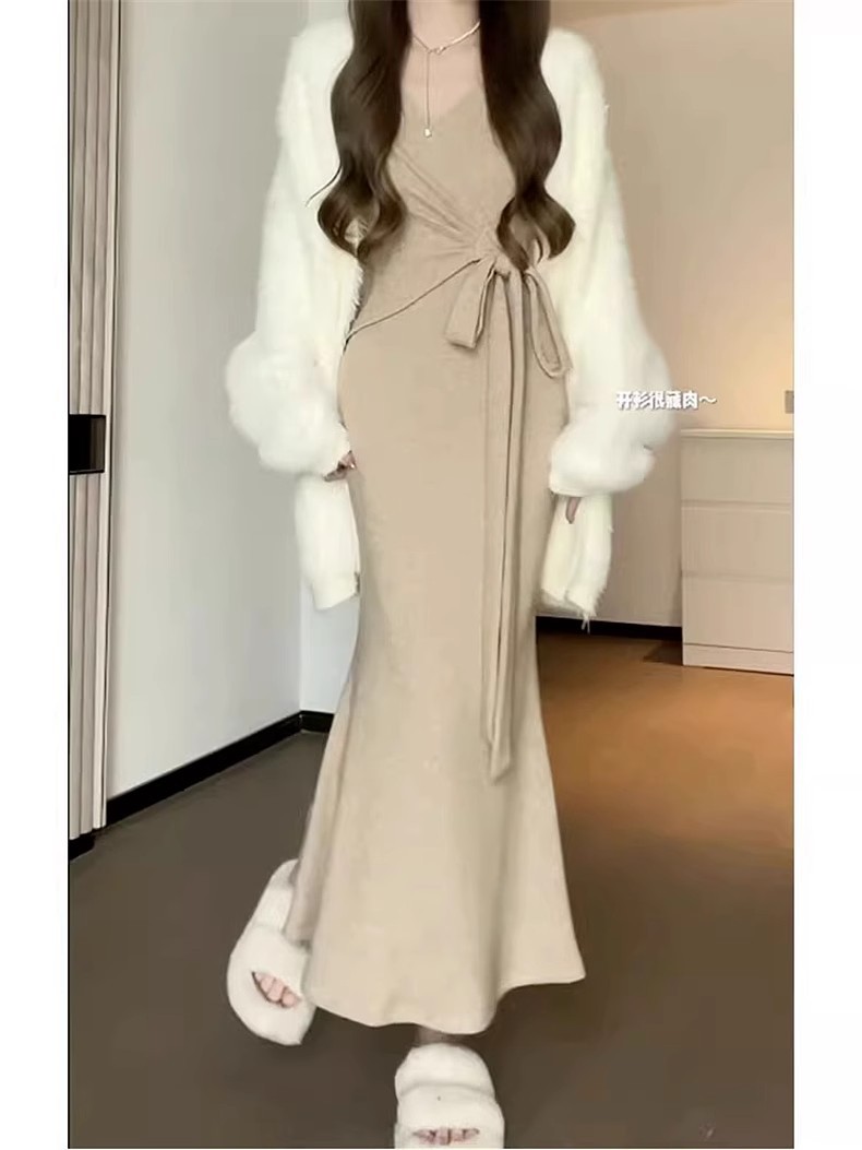 고급 투피스 슈트, 니트 스웨터 드레스, 2025 가을 겨울 신상 여성 겨울 롱 스커트