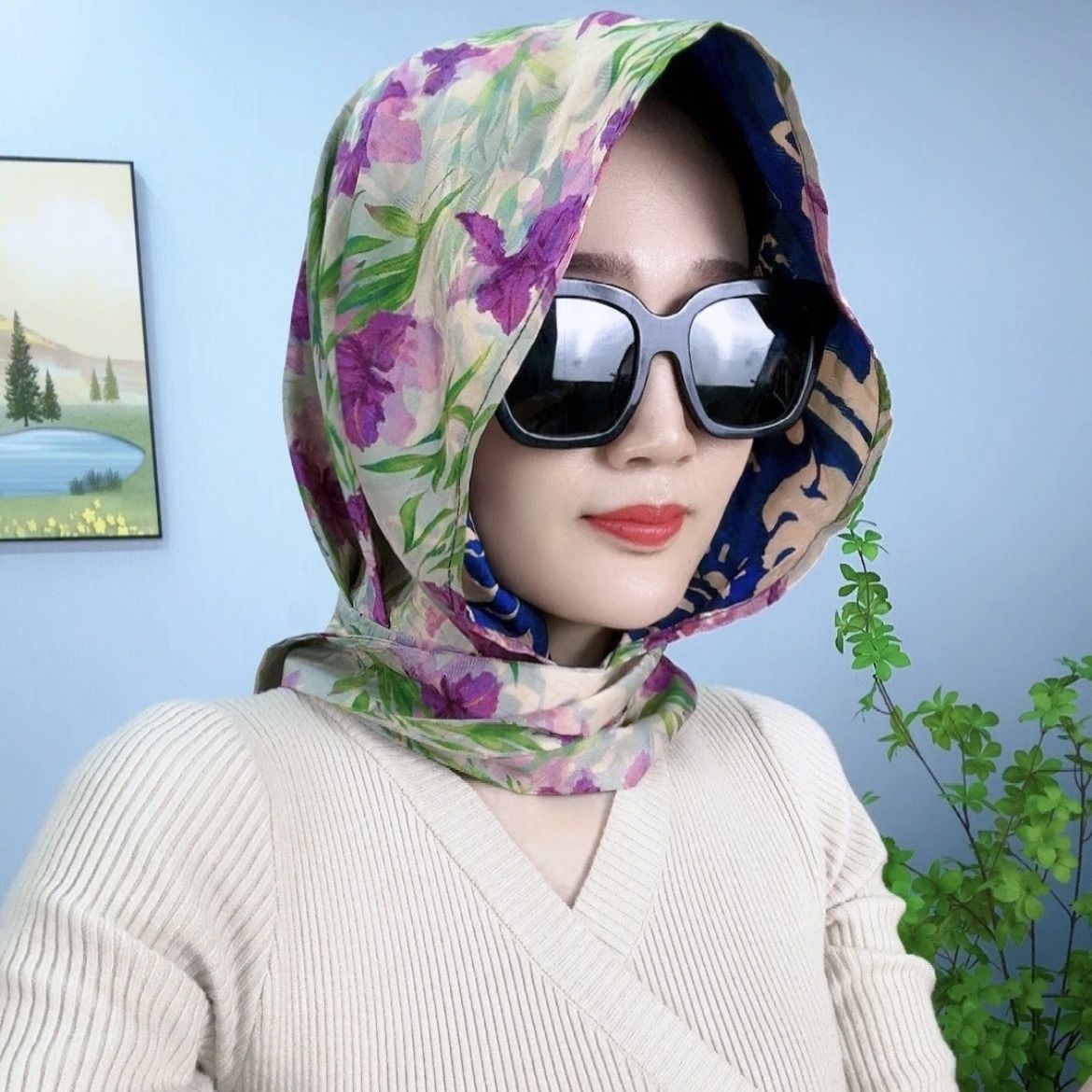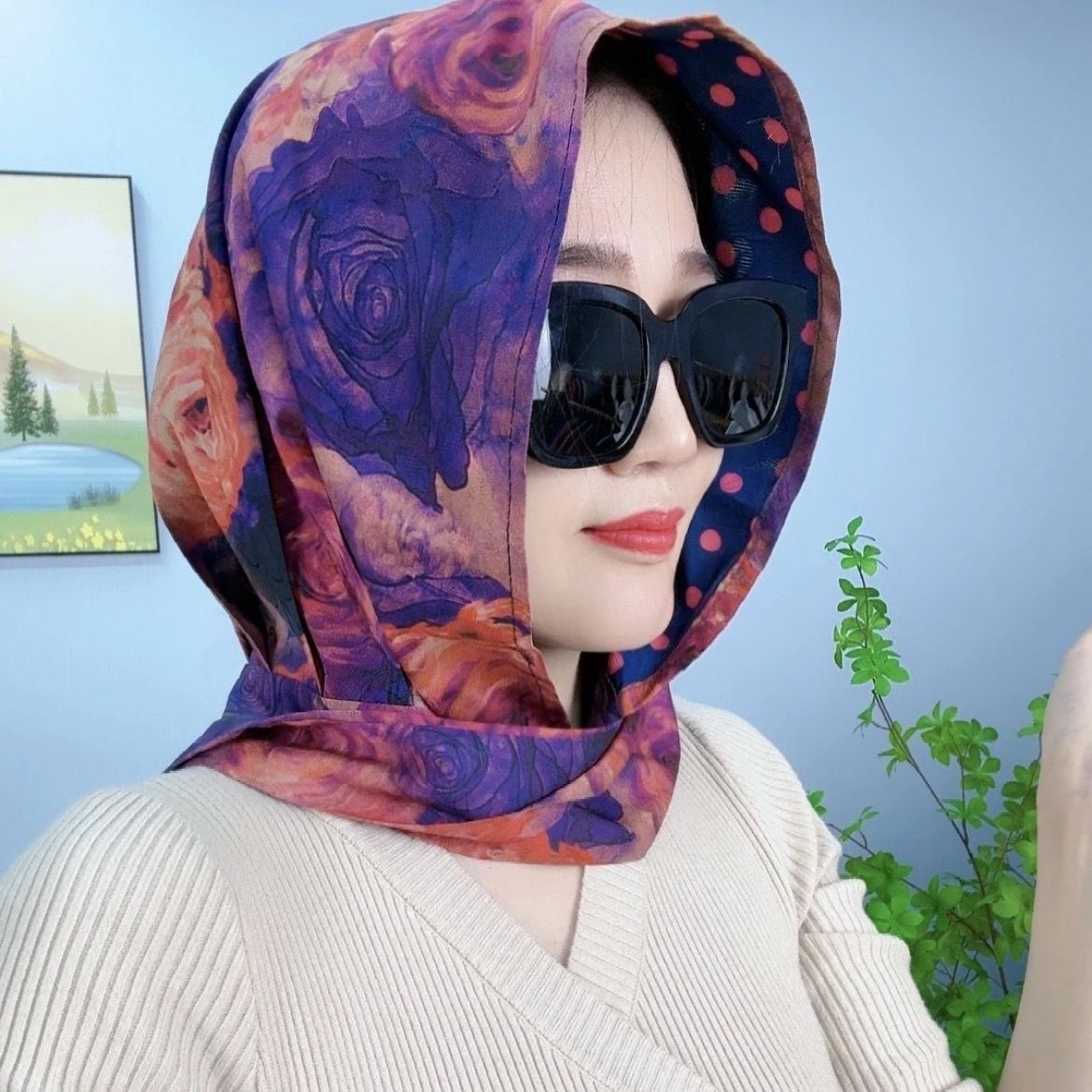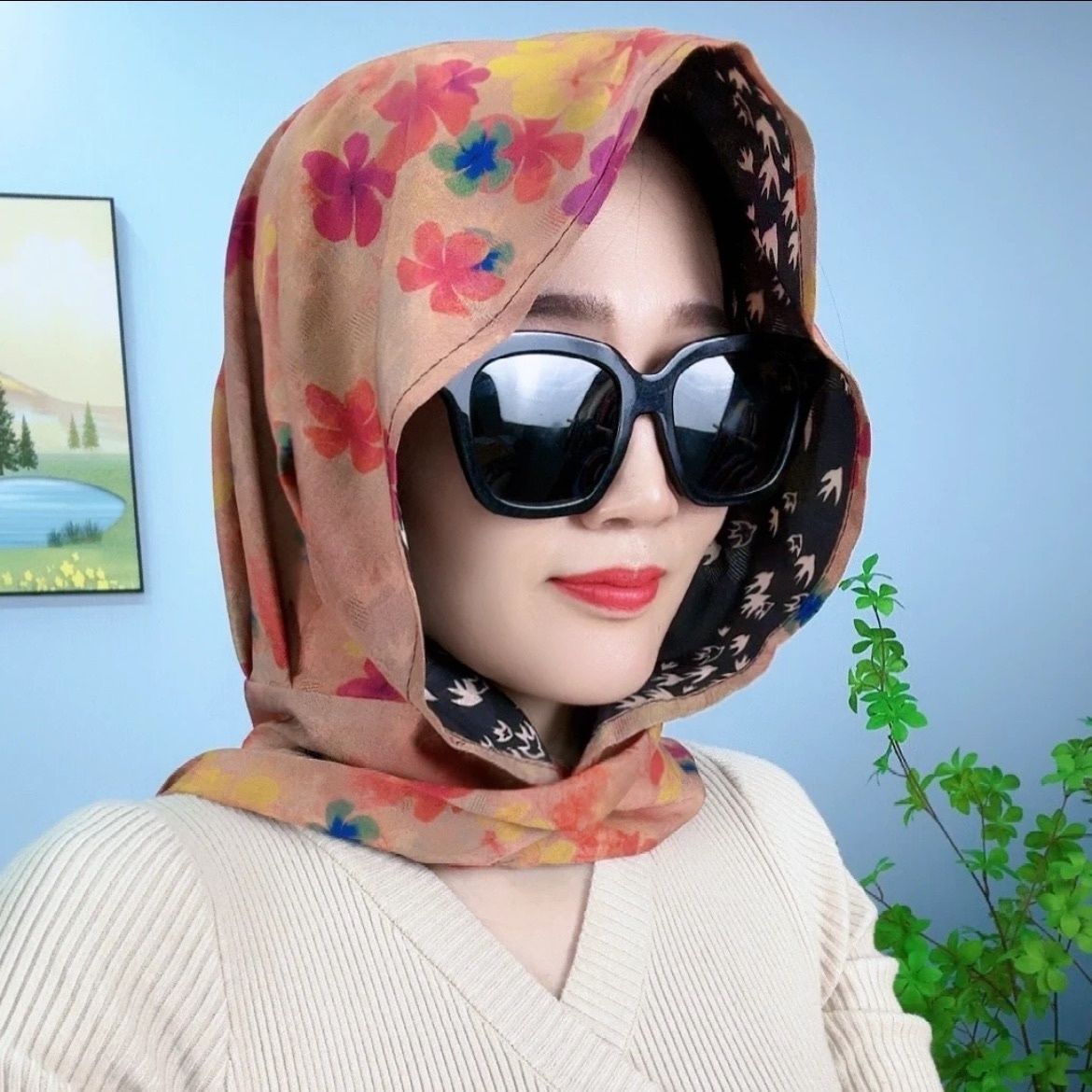 • 리브 새틴 스카프 모자-봄 꽃