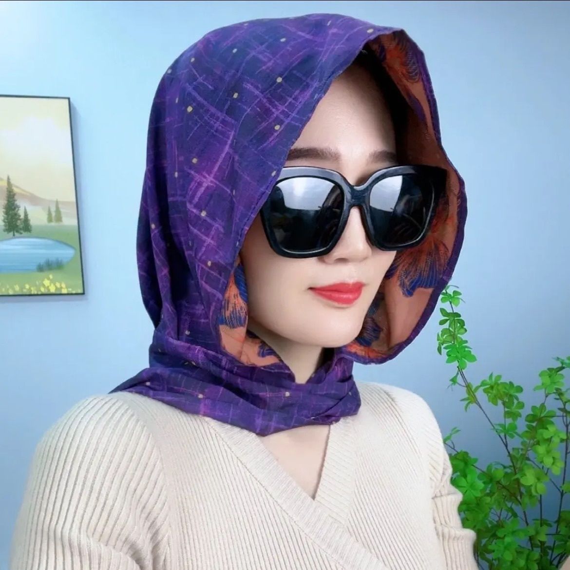 • 리브 새틴 스카프 모자-보라색 모란
