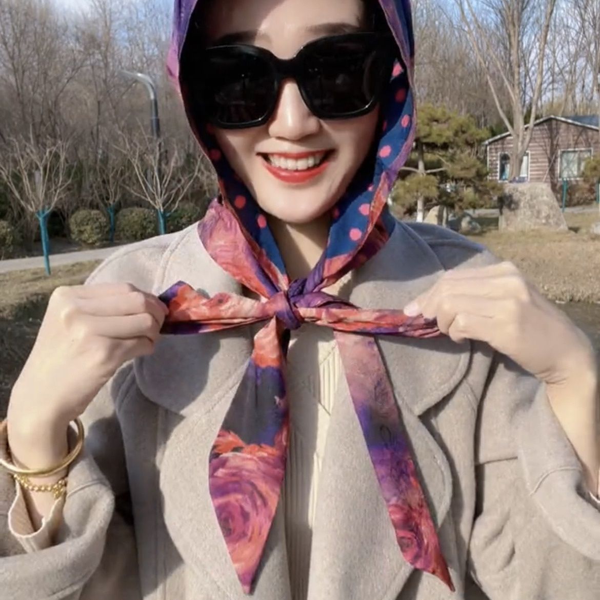 • 리브 새틴 스카프 모자-홍윤 모란