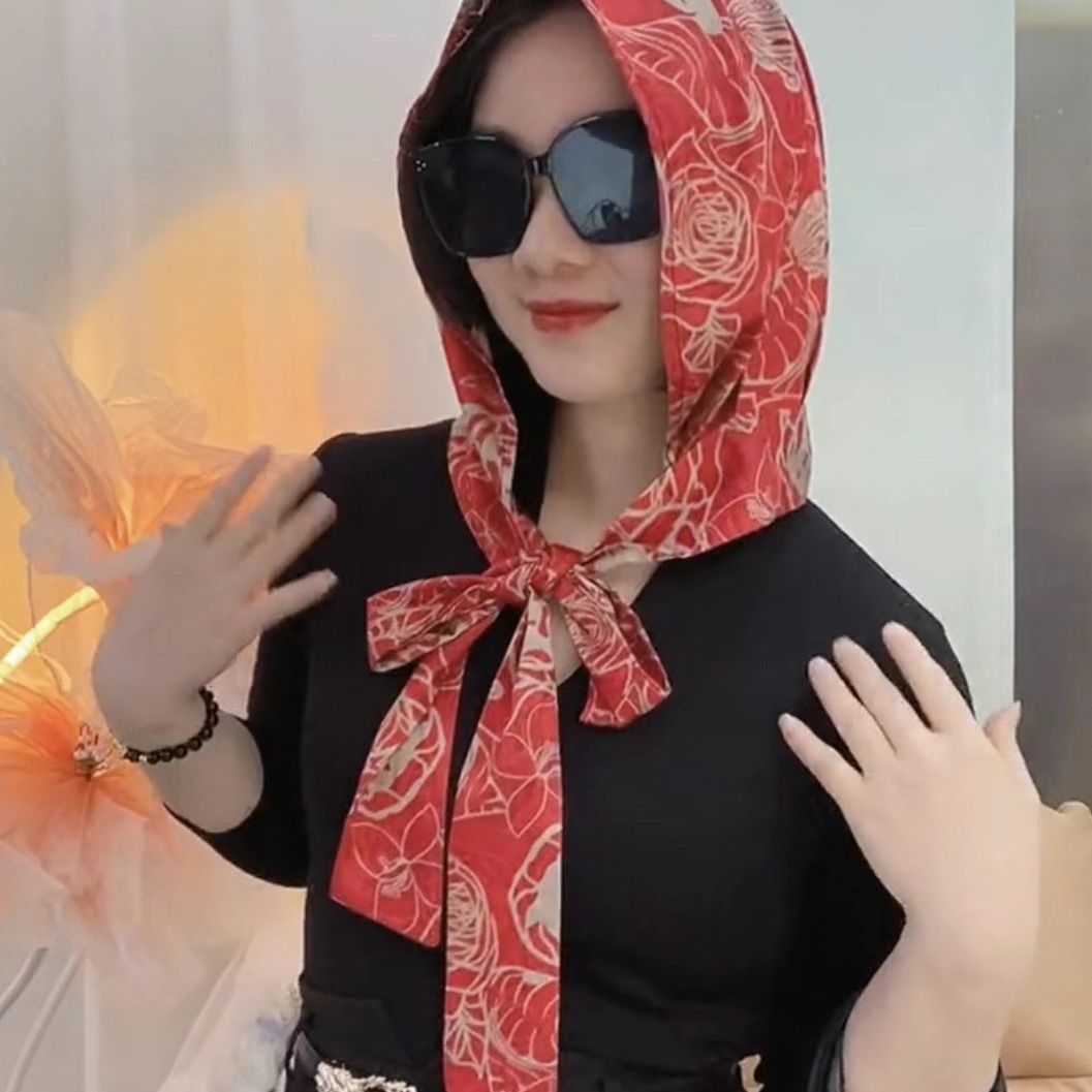 봄과 여름 새로운 패션 리브 새틴 리본 모자 질감 꽃 장미 스카프 모자 방풍 태양 보호 봄 나들이 사진스토어 가기