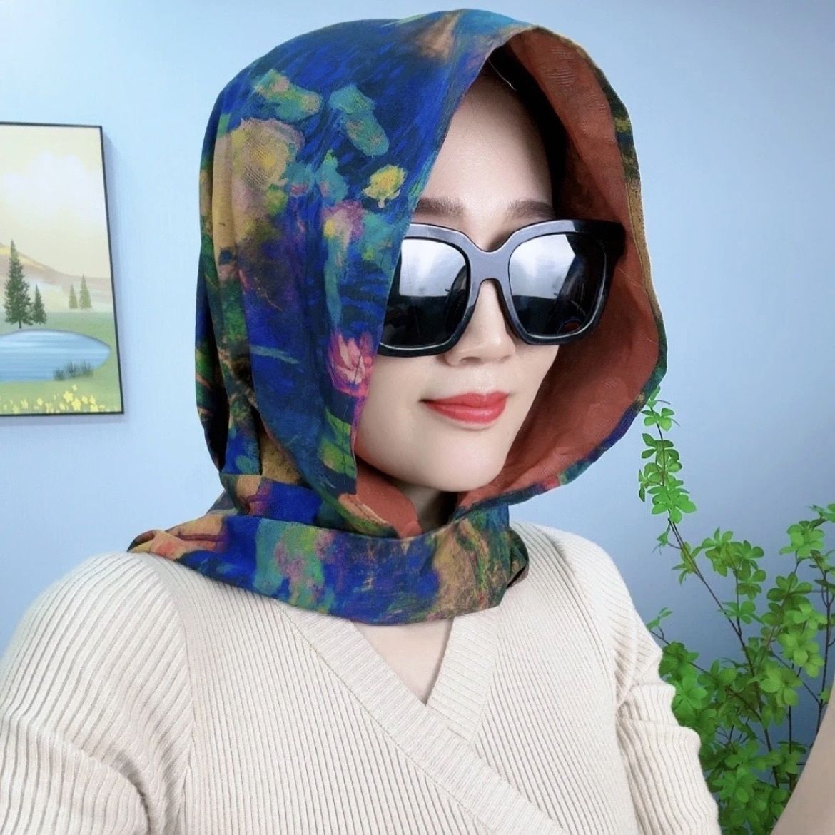 • 리브 새틴 스카프 모자-화려한