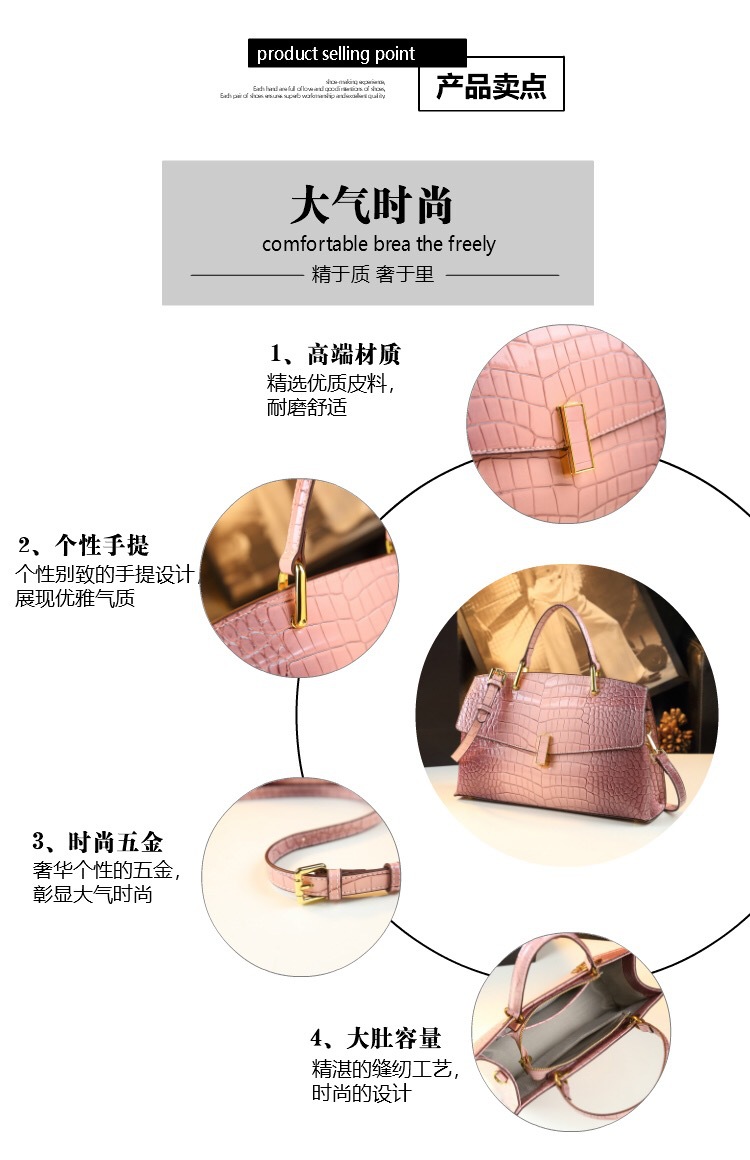 공장 직접 공급 하이 엔드 패션 악어 패턴 핸드백 2025 새로운 정품 가죽 대외 무역 크로스 바운드 어깨 크로스 바디 대형 가방