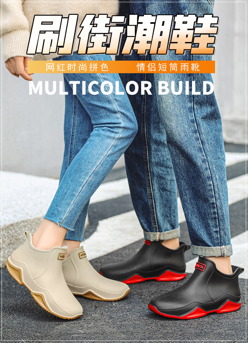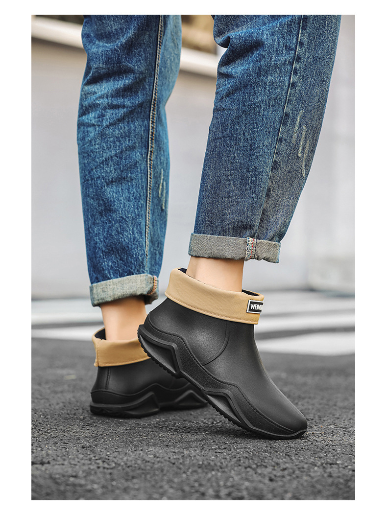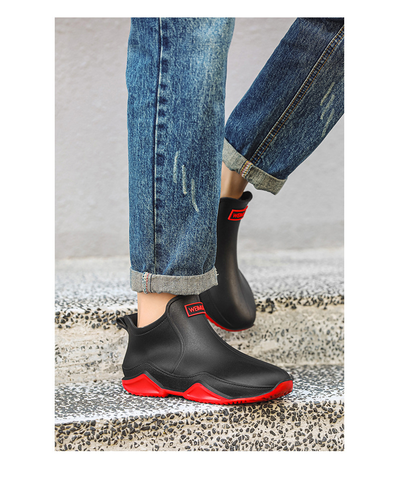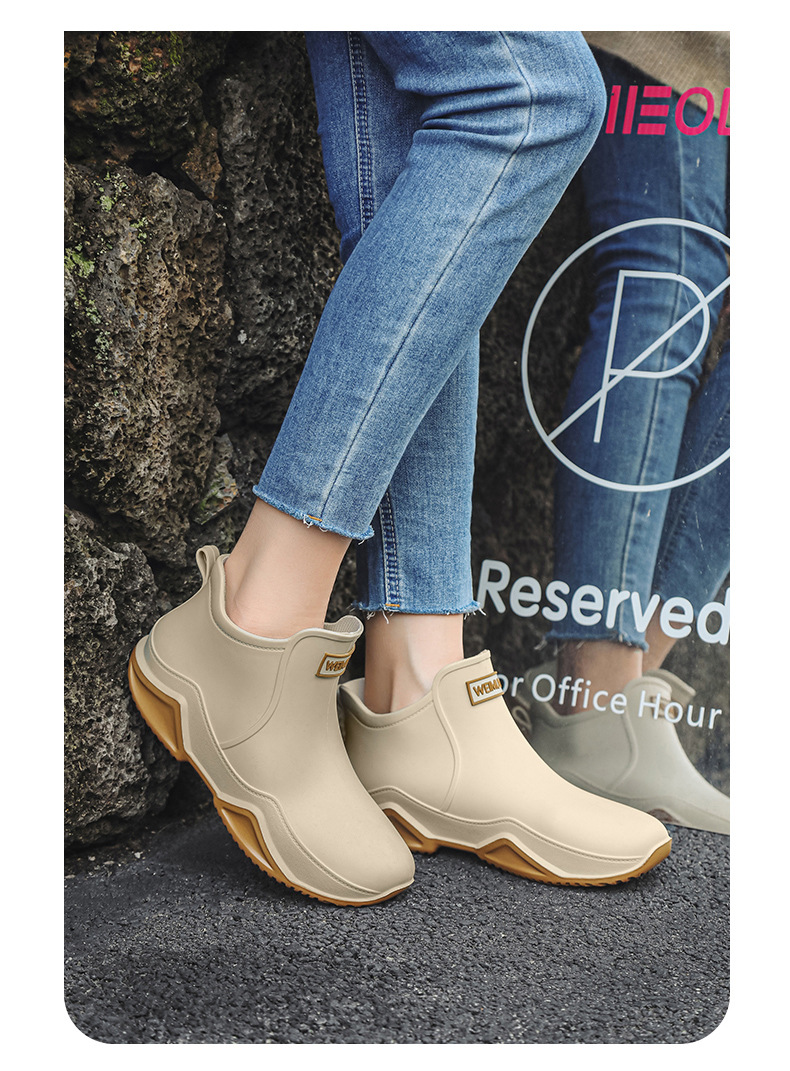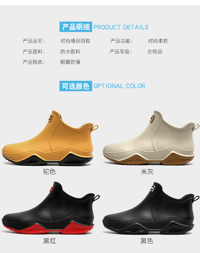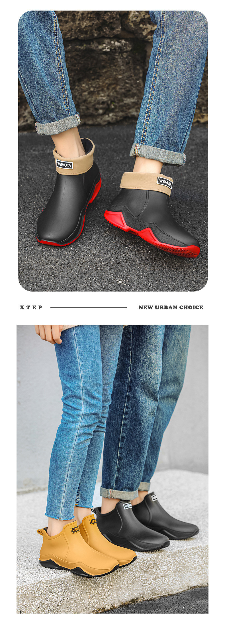 국경 간 폭발 패션 남성과 여성을위한 짧은 장화 한국 하이 엔드 소프트 솔 미끄럼 방지 장화 방수 접착제 신발 커버 신발 신발 신발