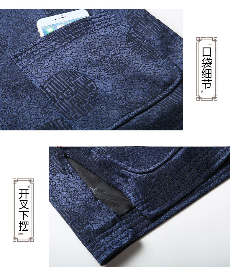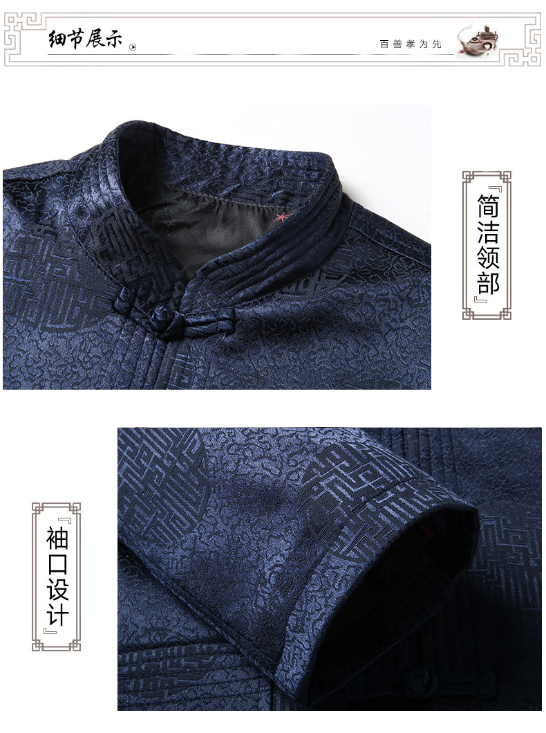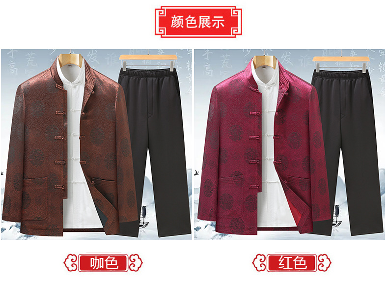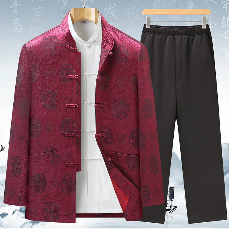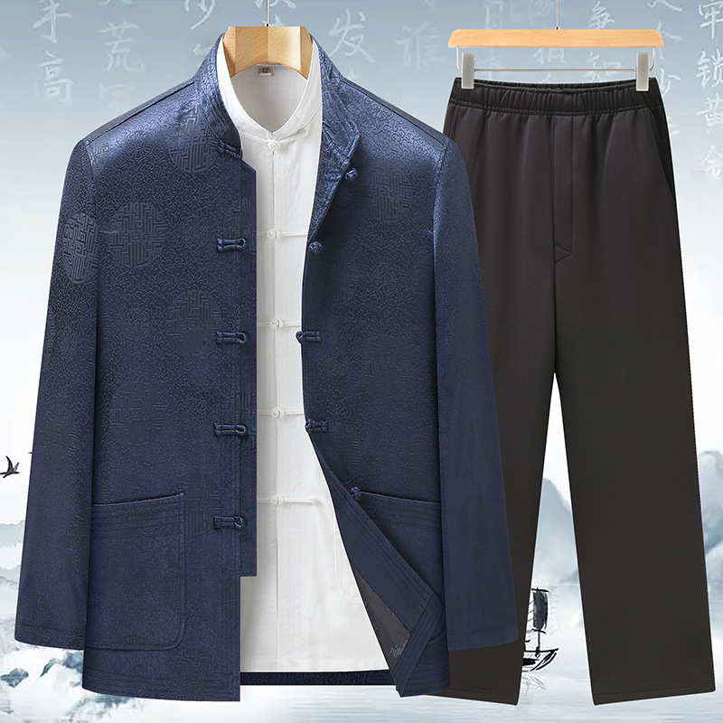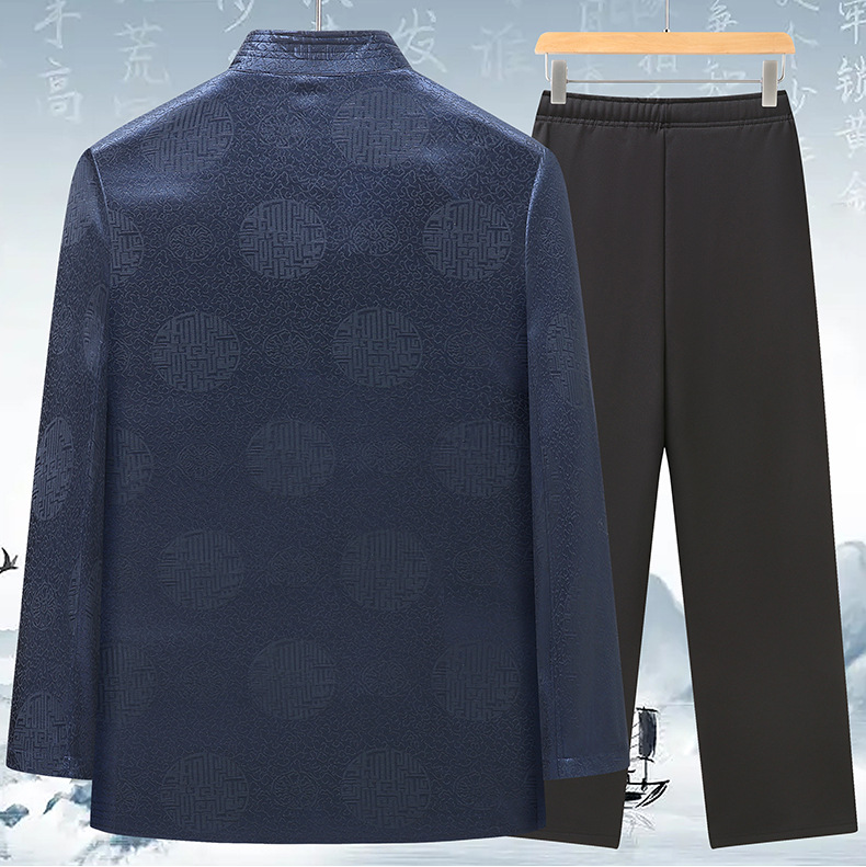 Tang 세트 최고 남성 캐주얼 긴팔 재킷 중국 스타일 스탠드 칼라 아빠는 생일 연회 자카드 할아버지복을 입습니다.스토어 가기