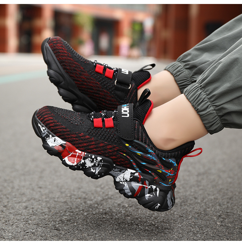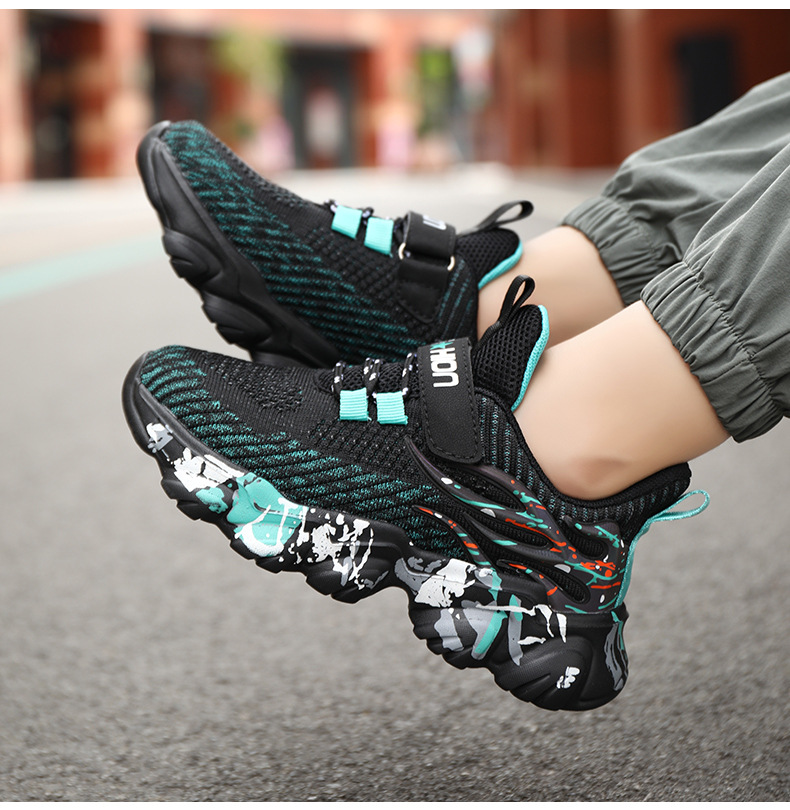 국경 간 어린이 운동화 2024 봄 새 소년 메쉬 통기성 캐주얼 신발 중형 및 대형 어린이 부드러운 바닥 운동화스토어 가기