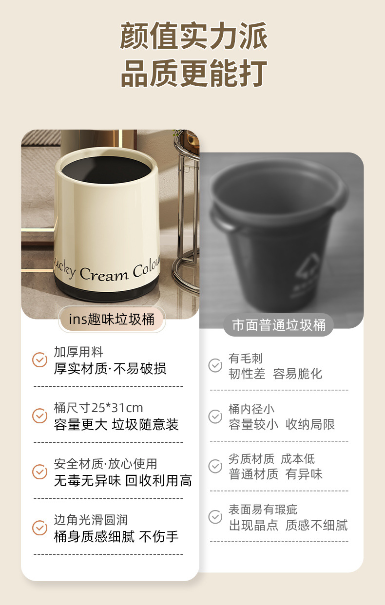 크림색 블랙 이중통 대용량 가정용 거실 화장실 쓰레기통 두꺼운 고급 위생통 내부통스토어 가기