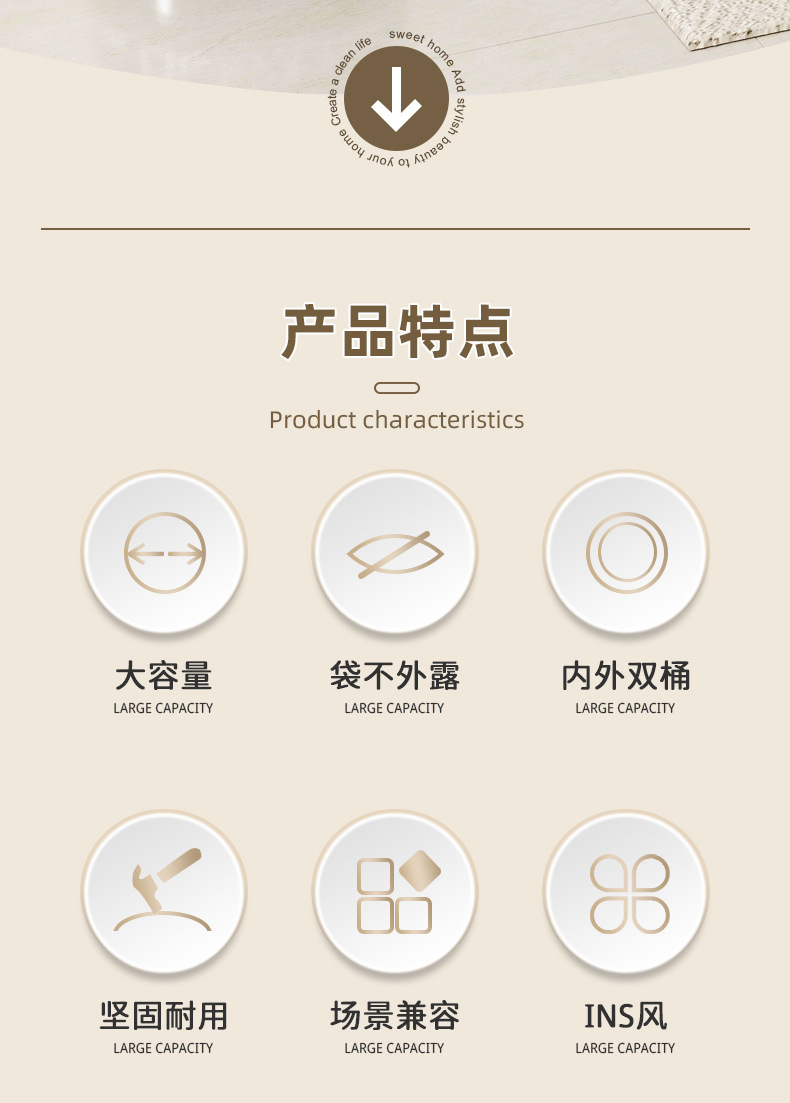 크림색 블랙 이중통 대용량 가정용 거실 화장실 쓰레기통 두꺼운 고급 위생통 내부통