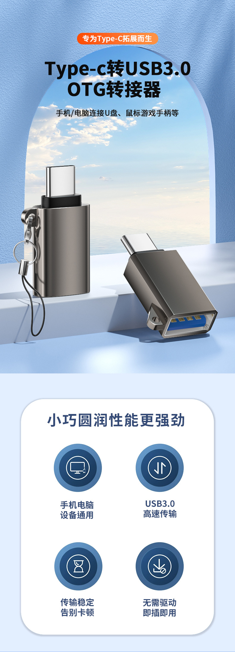 • OTG 어댑터 TYPE-C USB3.0, 타원형, 아연 합금 쉘