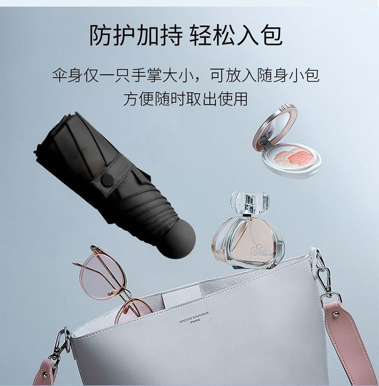 50% off 우산 미니 휴대용 초경량 우산 블랙 글로시 자외선 차단 40% off 햇빛 가리개 우산 손바닥 크기의 컴팩트 우산