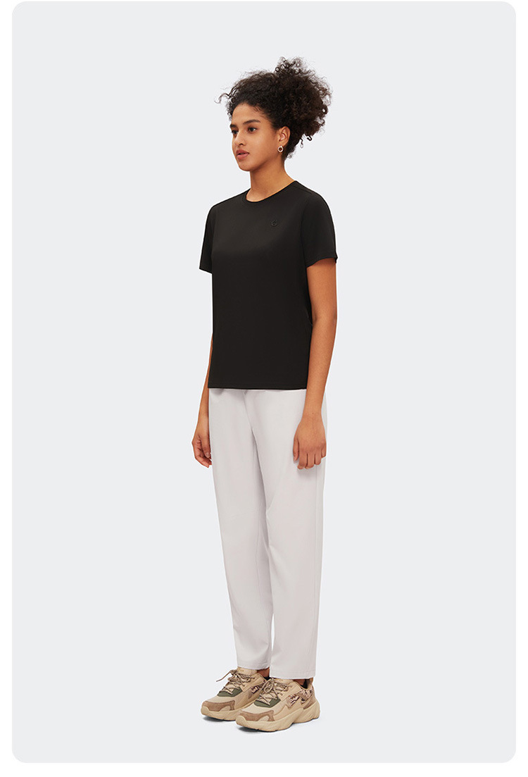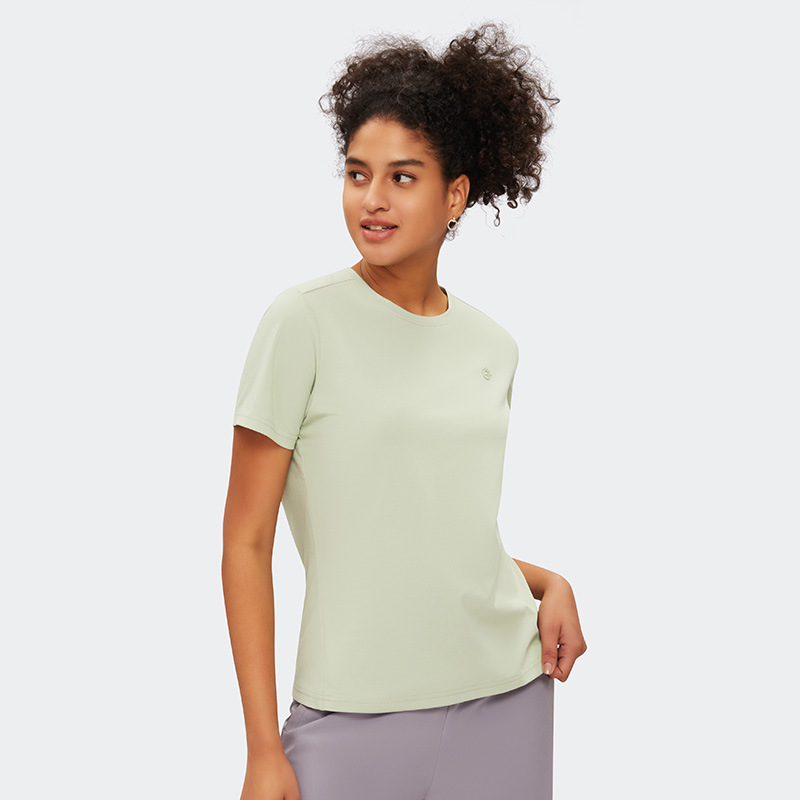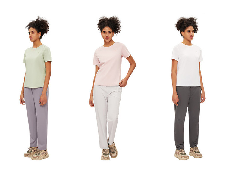 2025 봄과 여름 새로운 속건성 라운드 넥 반팔 티셔츠 여성 속건성 의류 여성 수분 흡수 스웨터 정통