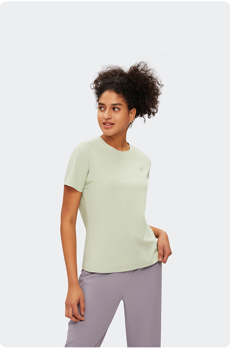 2025 봄과 여름 새로운 속건성 라운드 넥 반팔 티셔츠 여성 속건성 의류 여성 수분 흡수 스웨터 정통스토어 가기