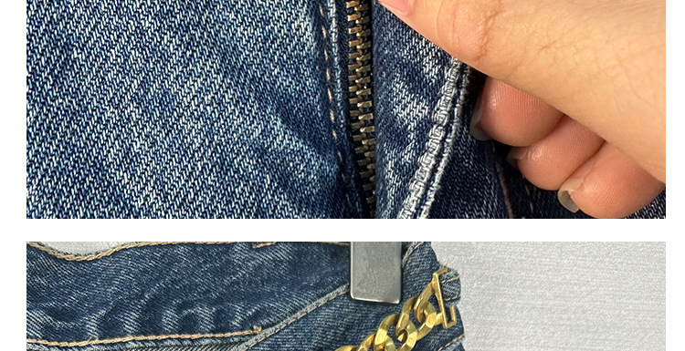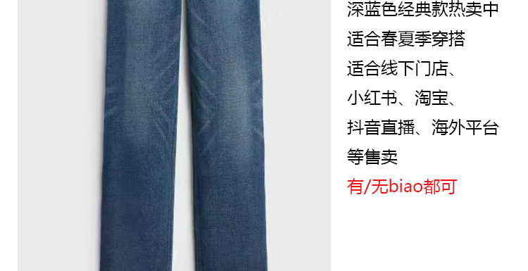 CE 스트레이트 청바지 여성 하이 웨스트 체인 진한 파란색 바지 스타 인터넷 연예인 같은 스타일 2025 여름 공장 직접 판매