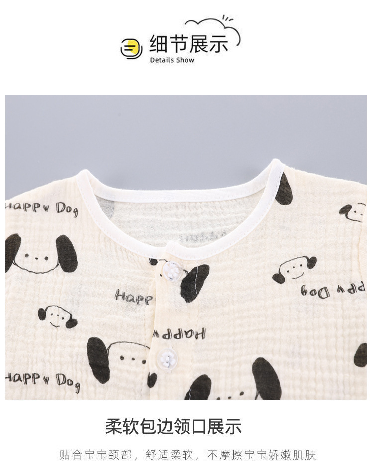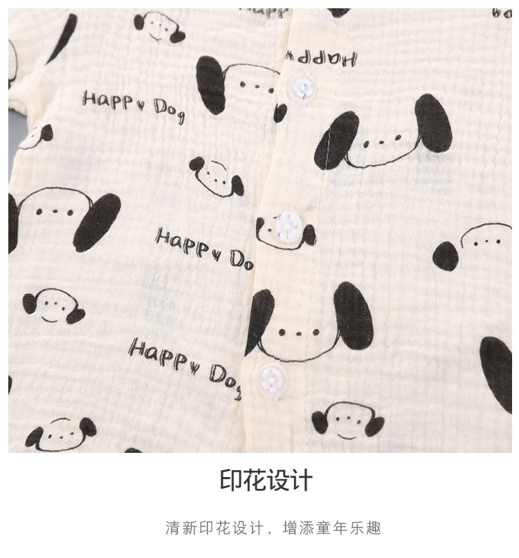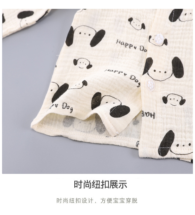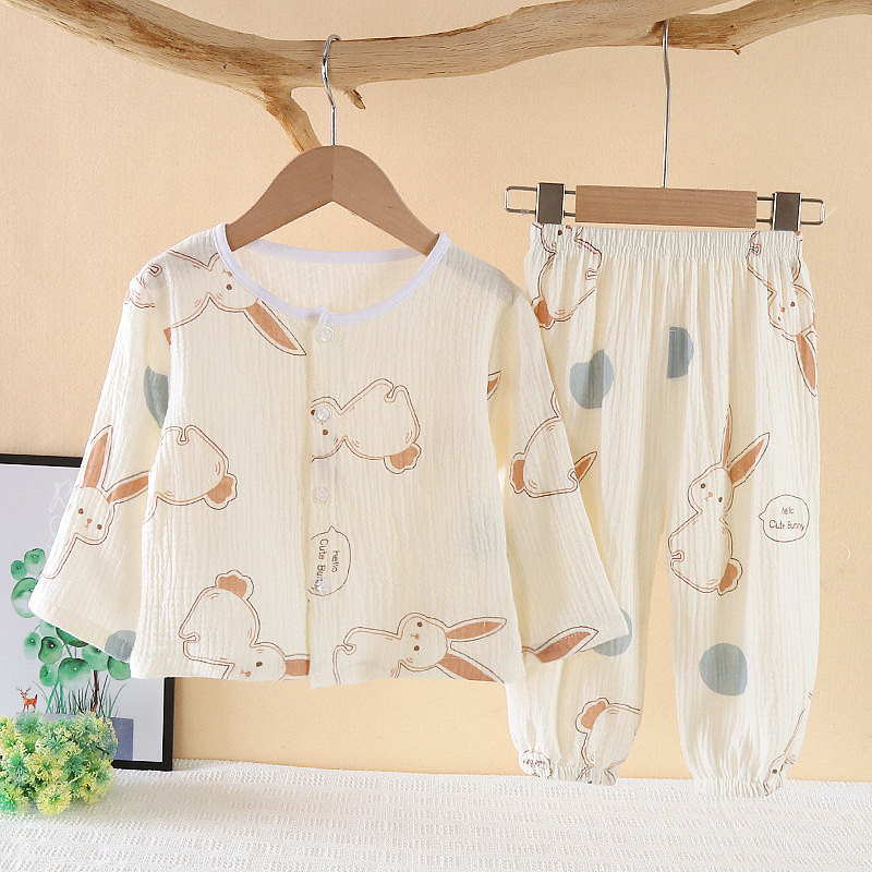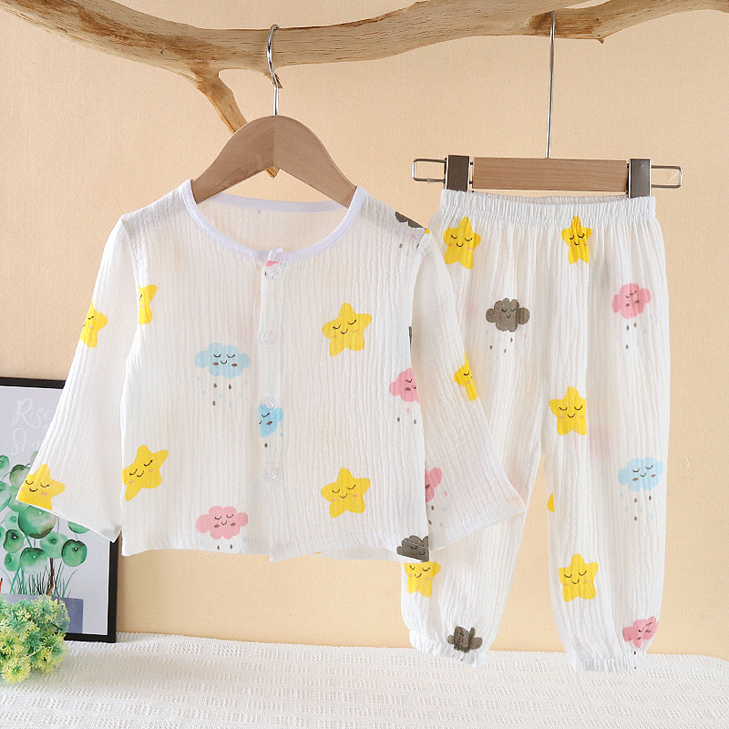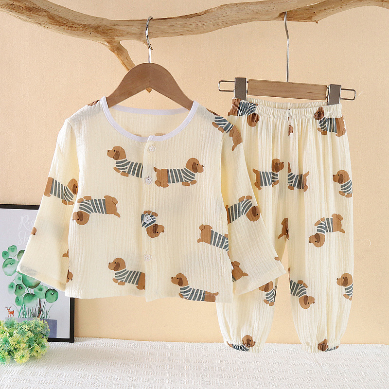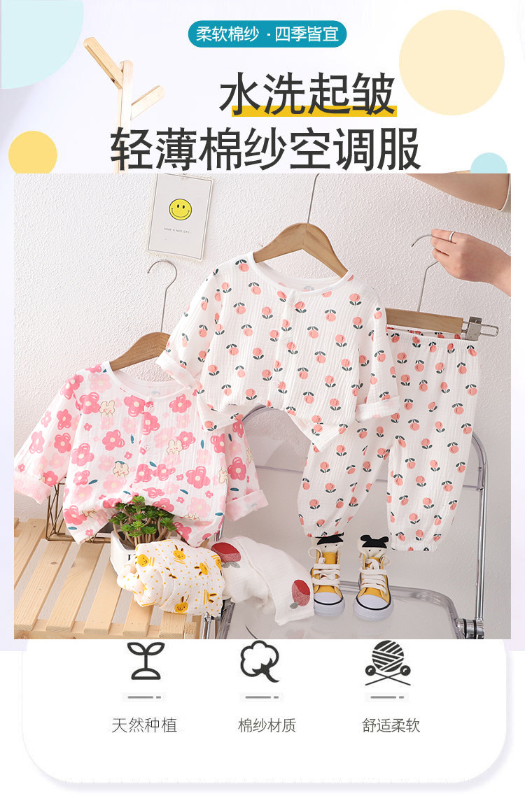 2024 새로운 어린이 가정은 얇은 봄과 여름 소년 소녀 더블 레이어 거즈 코튼 에어컨 아동복 잠옷을 입습니다.스토어 가기