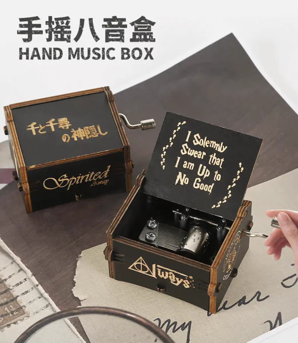 손으로 크랭크 나무 음악 상자 마술 음악 상자 생일 선물 기계 시계 고전 조각 손으로 크랭크 음악 상자