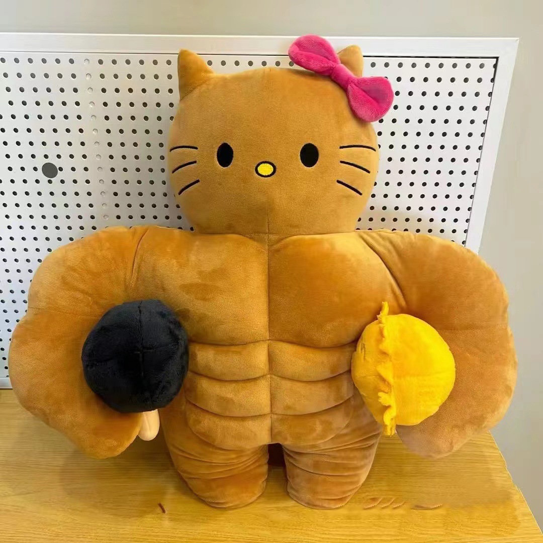 웃긴 근육 안녕하세요 헬로 키티 인형 검은 가죽 헬로 키티 인형 KT 고양이 인형 베개 소녀 자고스토어 가기
