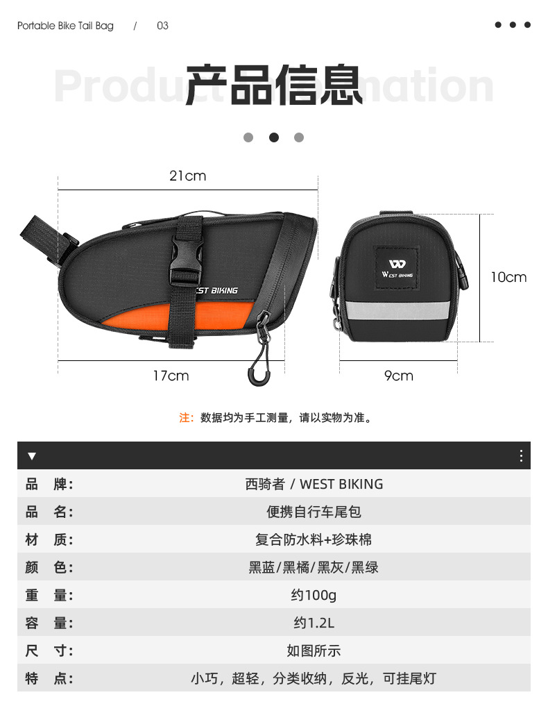 웨스트 라이더 자전거 휴대용 꼬리 가방 반사 매달려 꼬리 빛 승마 가방 산악 자전거 안장 가방 장비