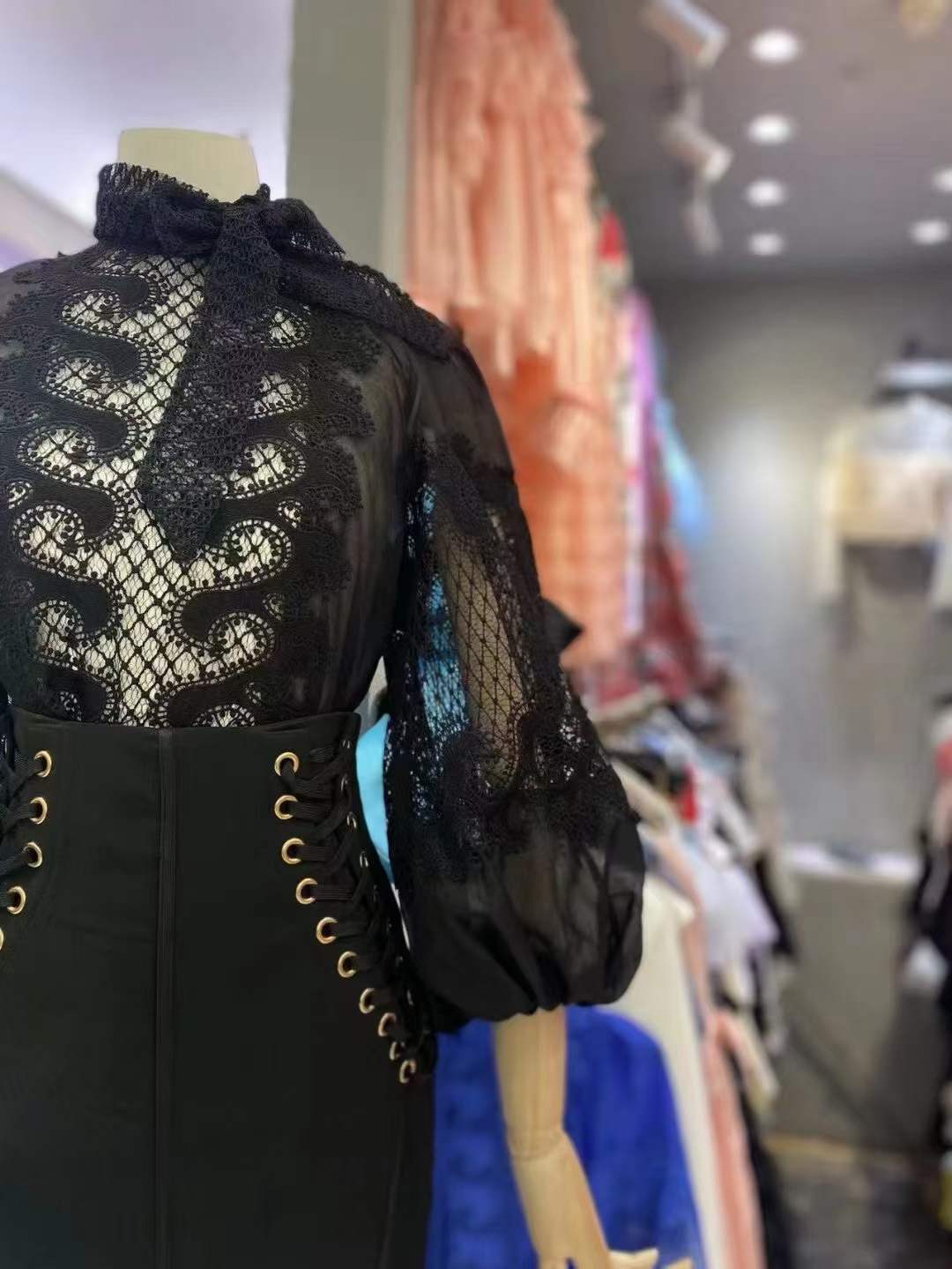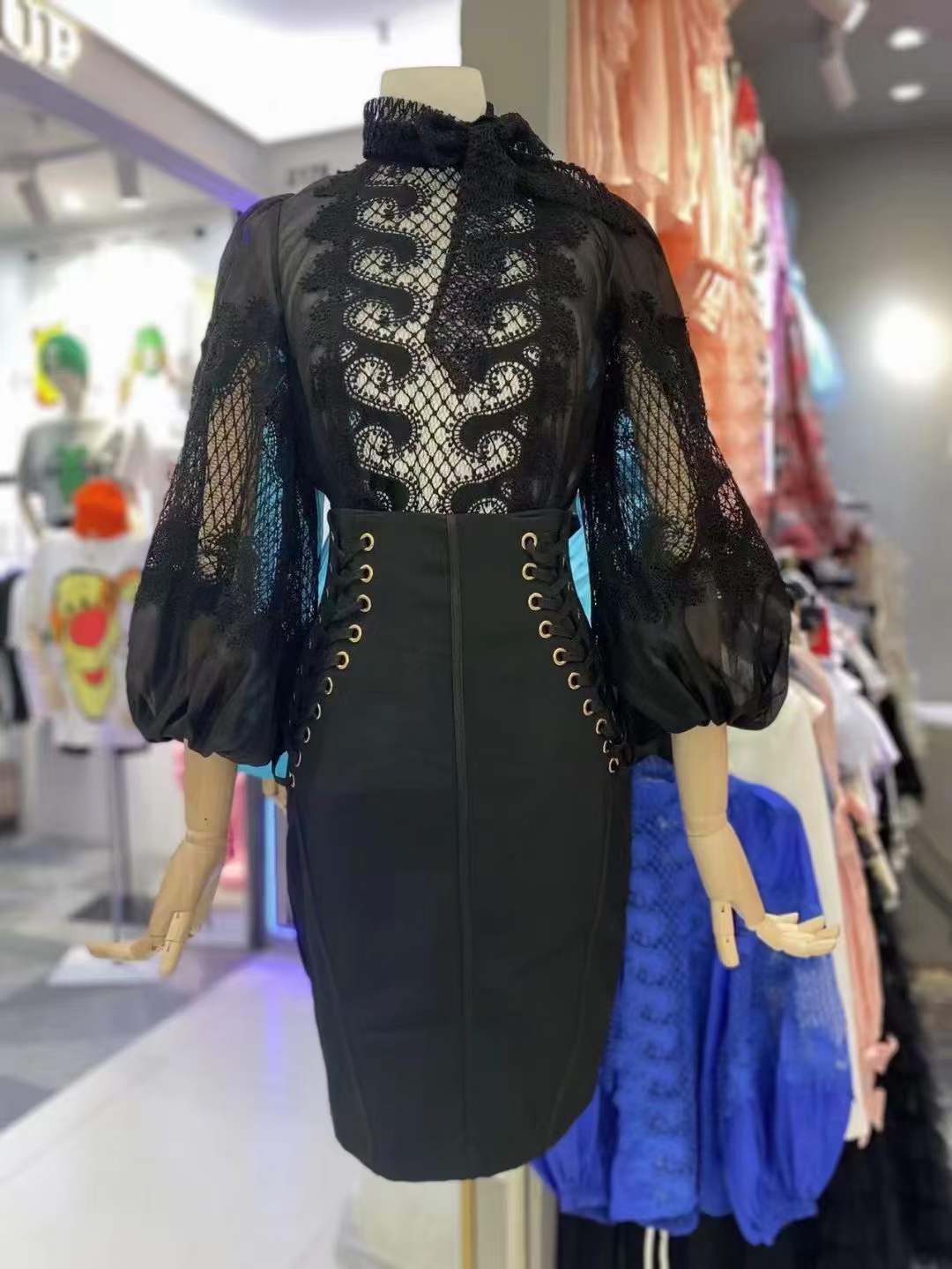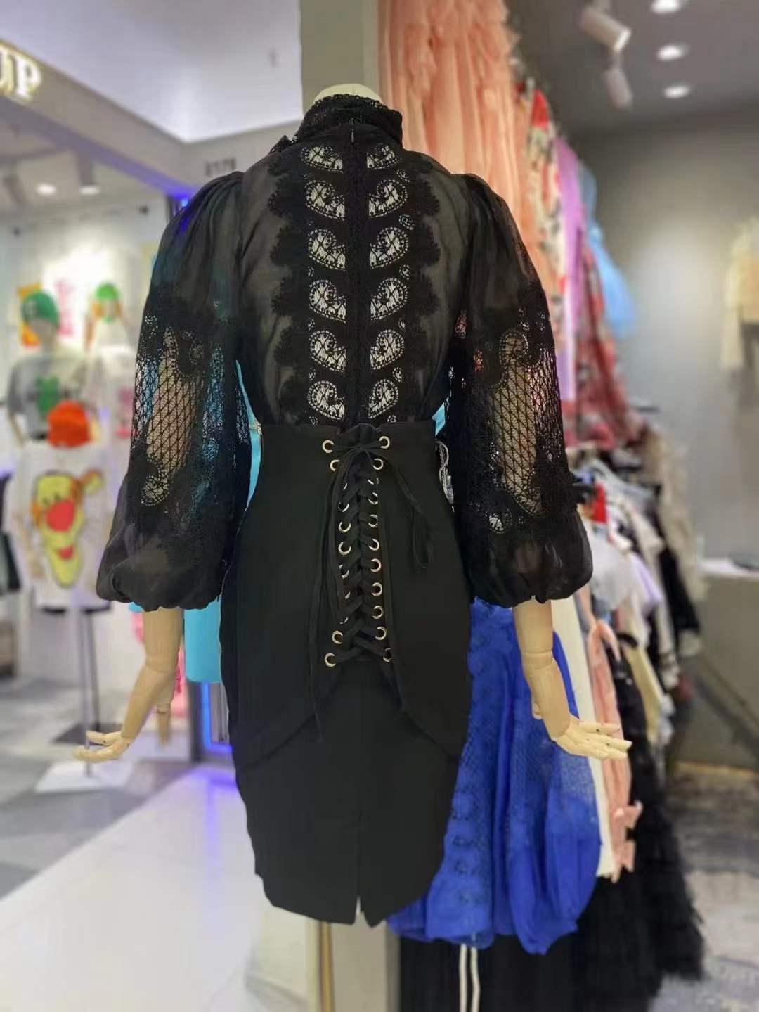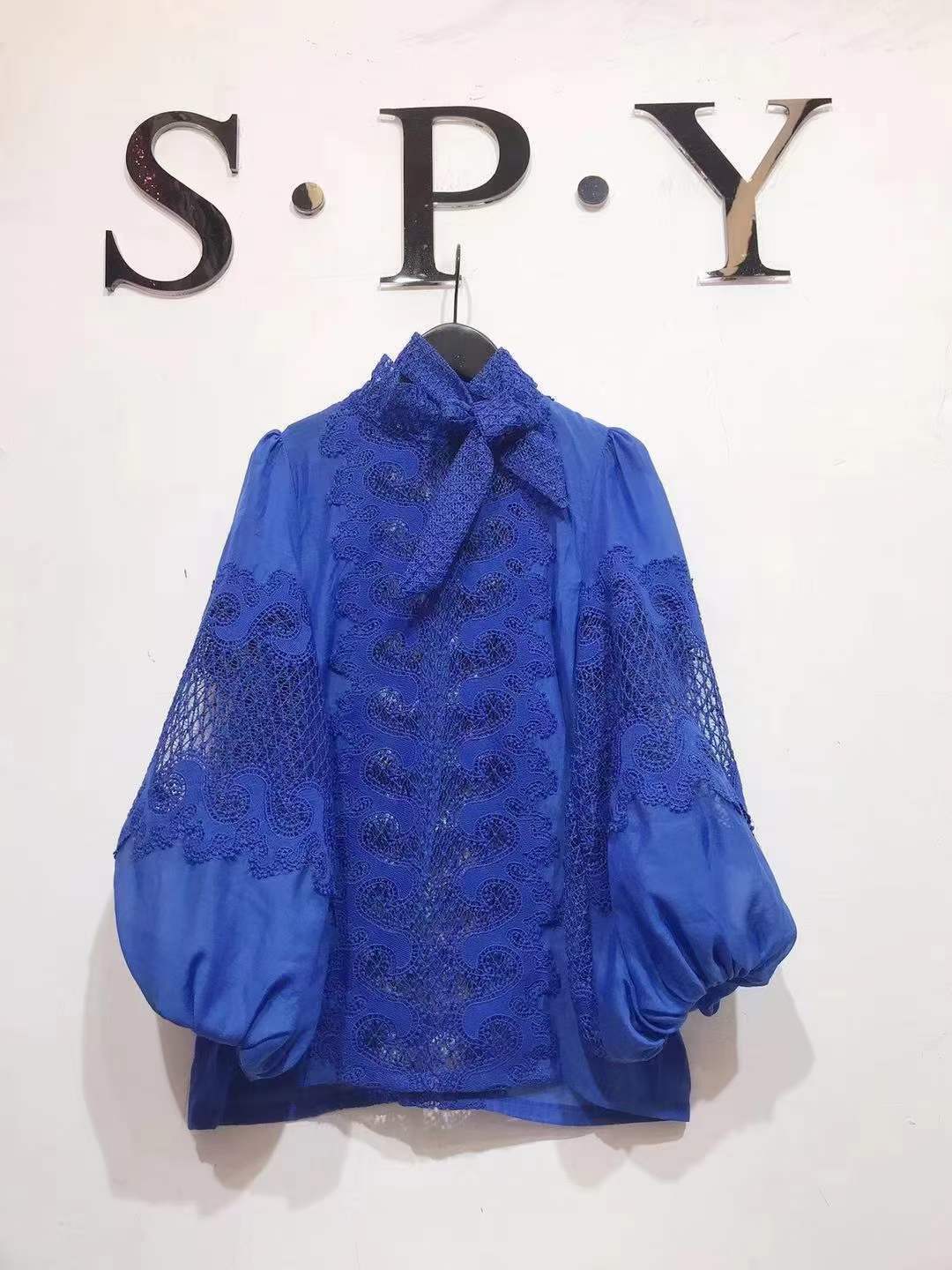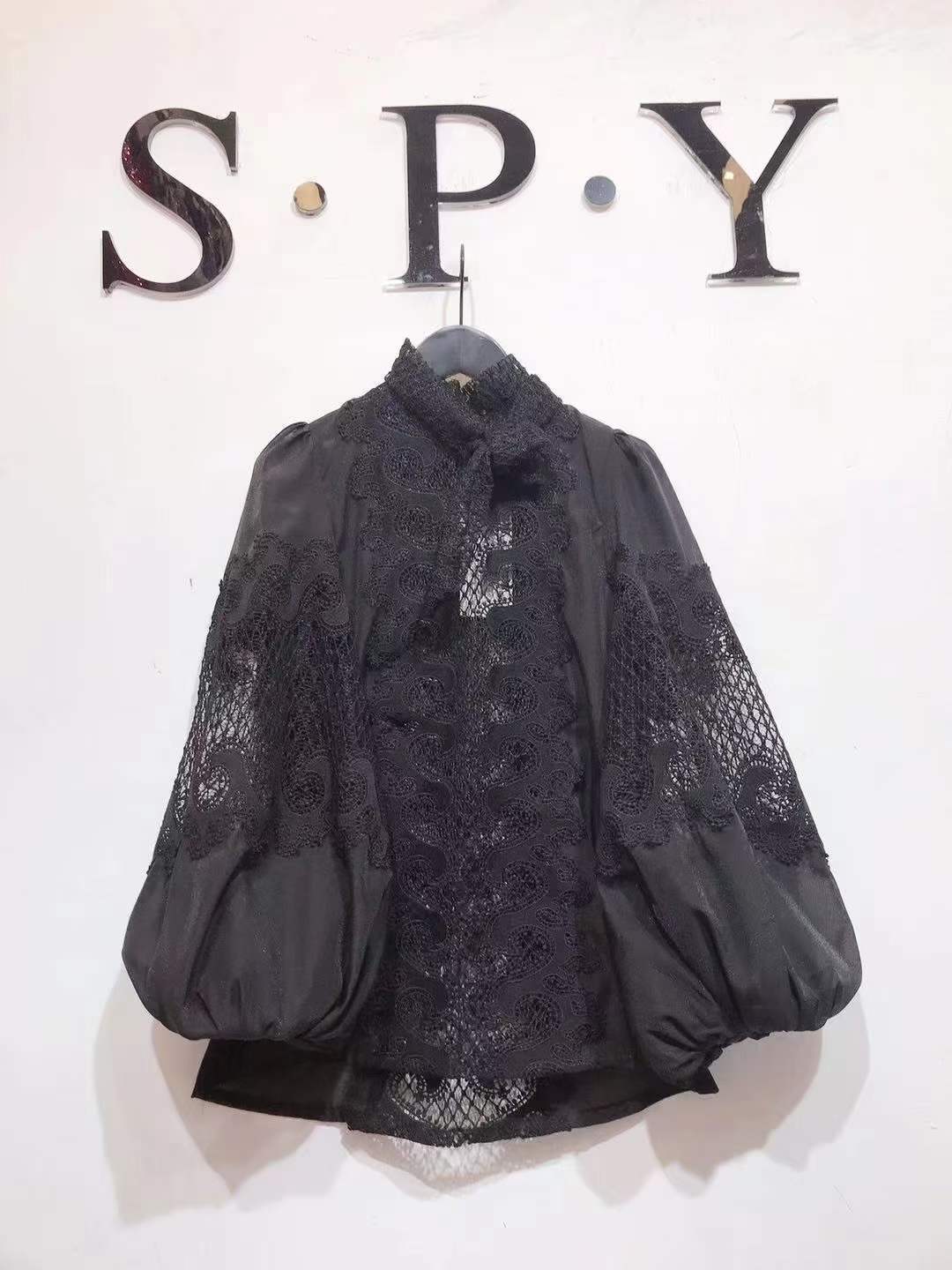 2024 봄과 여름 새로운 유명 패션 레이스 중공 레이스 디자인 센스 랜턴 슬리브 셔츠 한국 스타일 시스루 탑스토어 가기