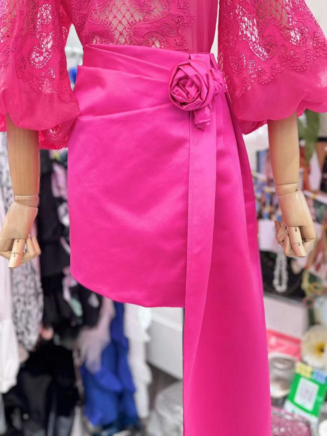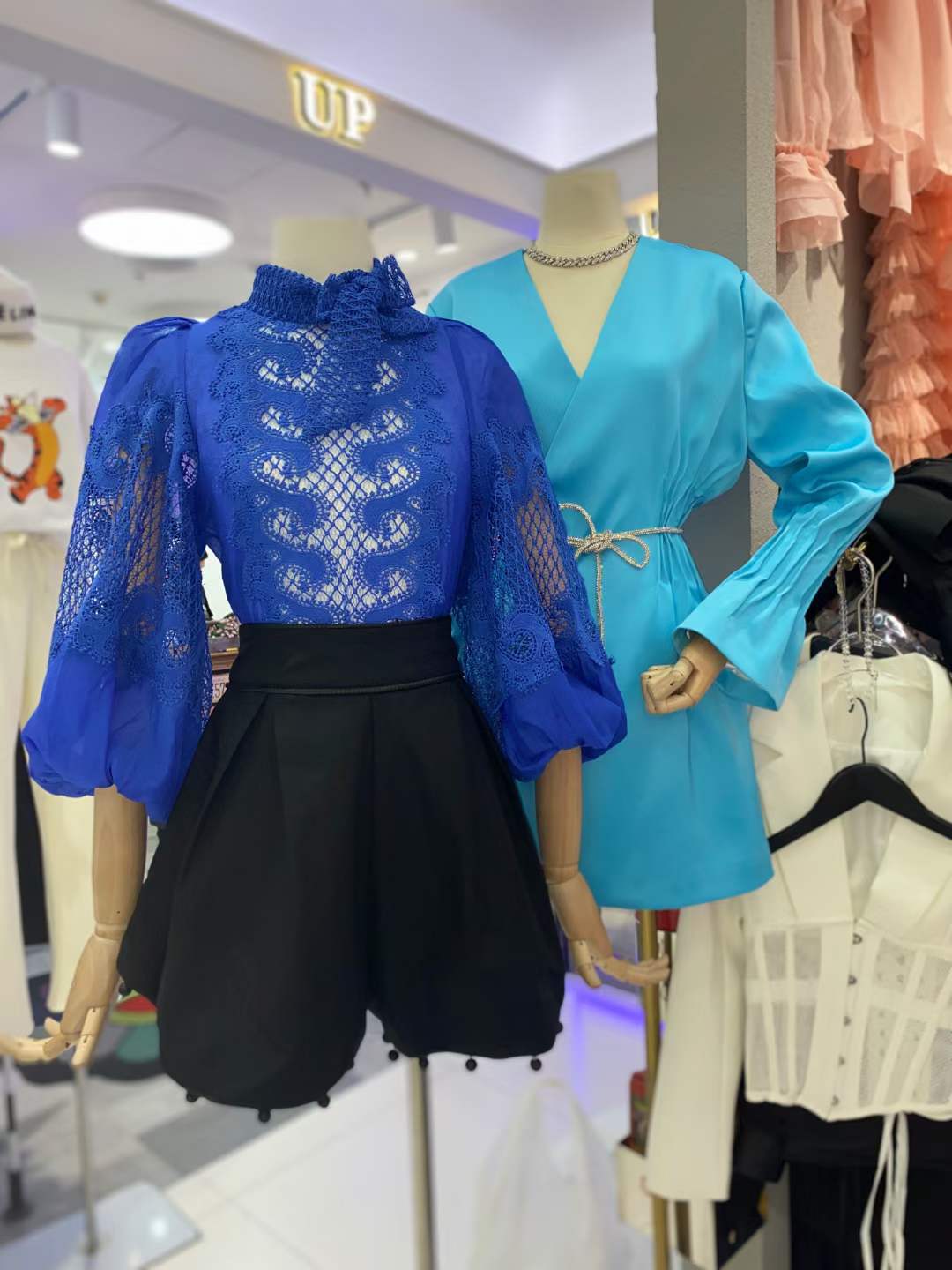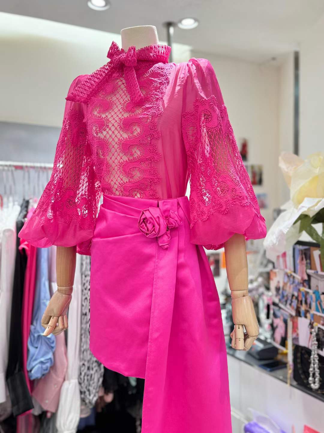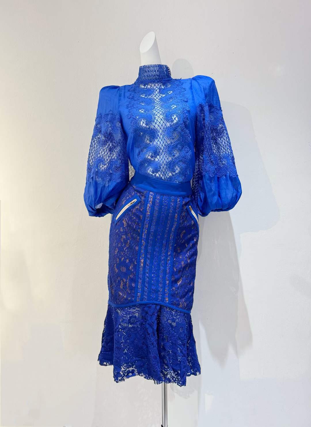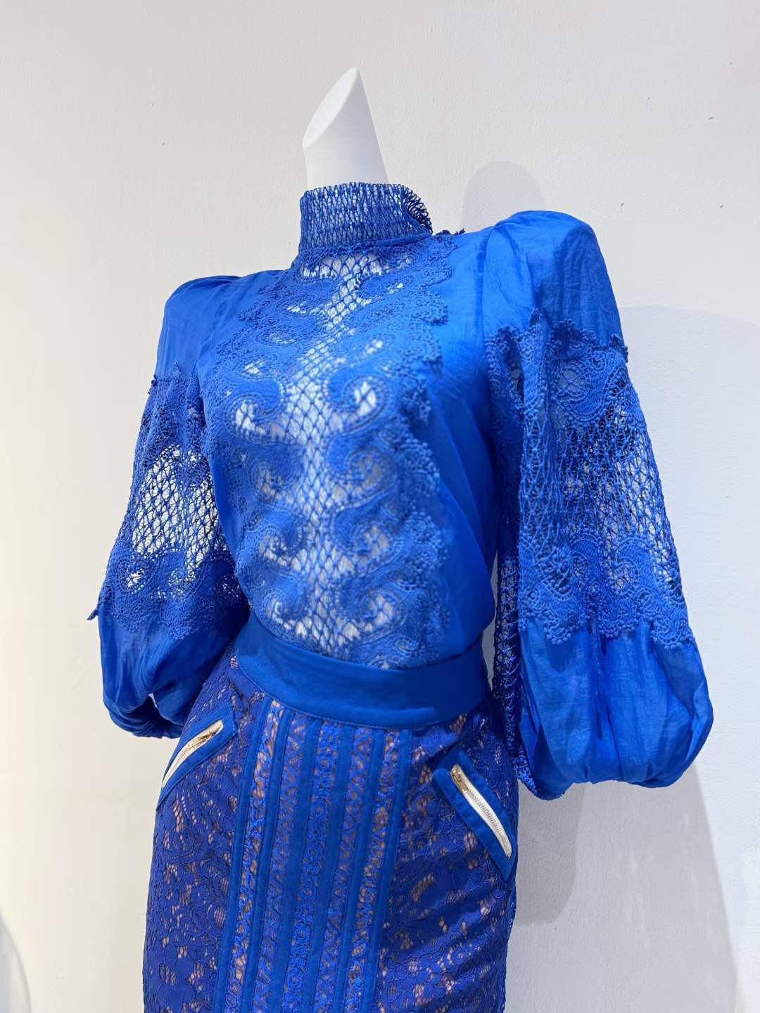 2024 봄과 여름 새로운 유명 패션 레이스 중공 레이스 디자인 센스 랜턴 슬리브 셔츠 한국 스타일 시스루 탑스토어 가기
