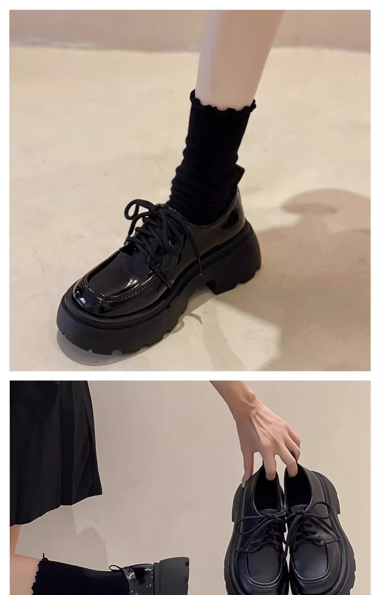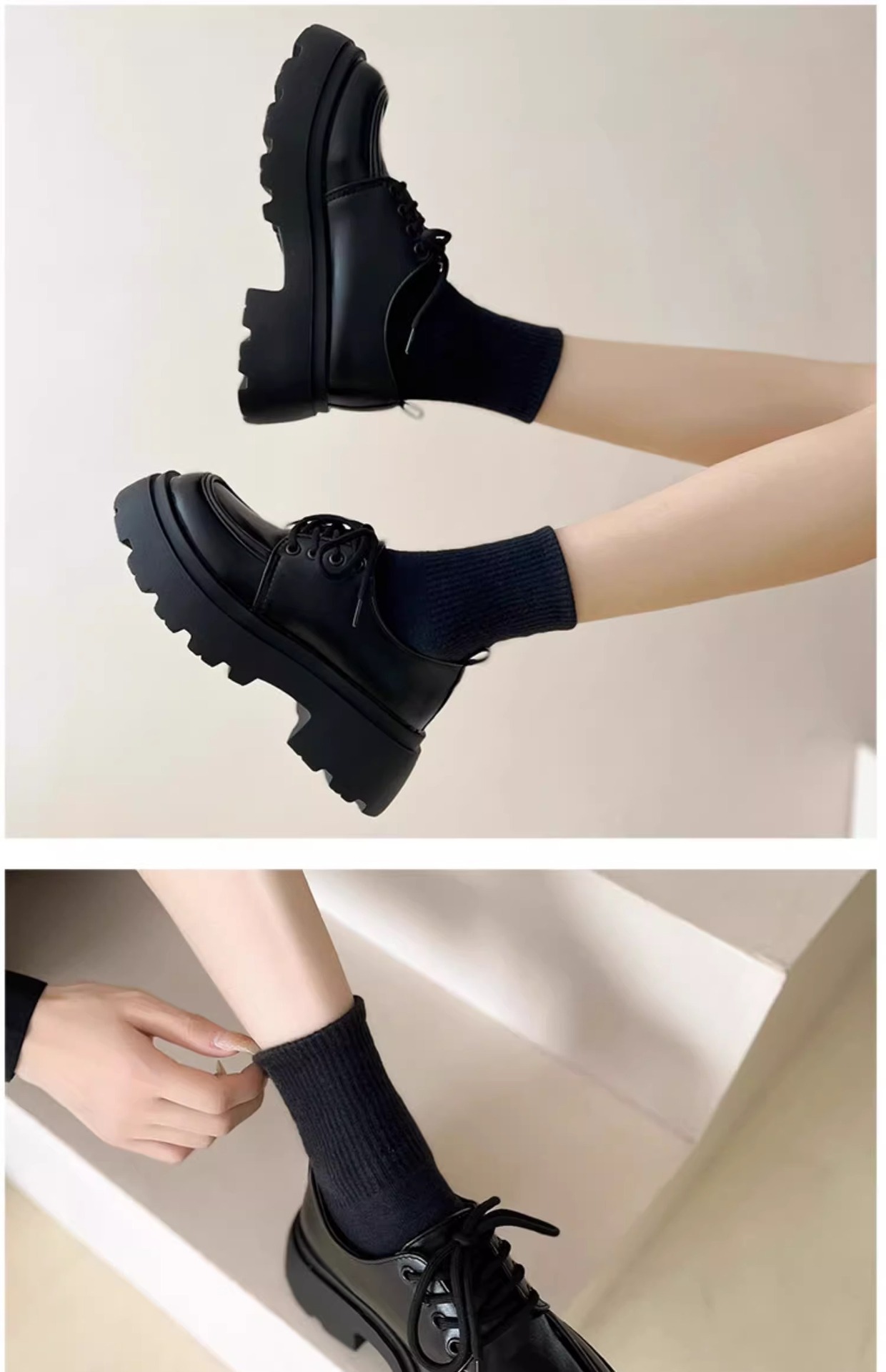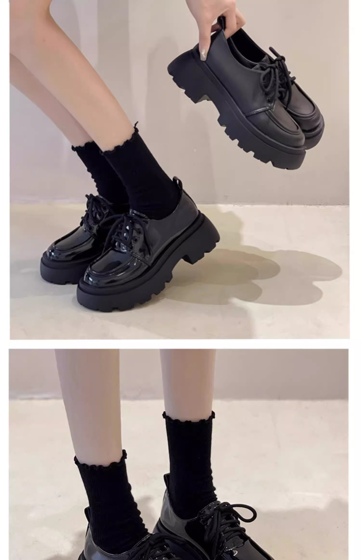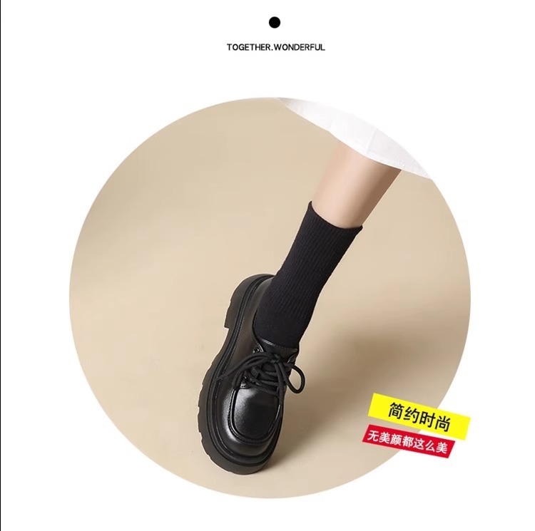 여성을위한 영국 스타일 두꺼운 밑창 작은 가죽 신발 2025 새로운 봄 다목적 블랙 jk 싱글 신발 플랫폼 로퍼 ins 트렌드