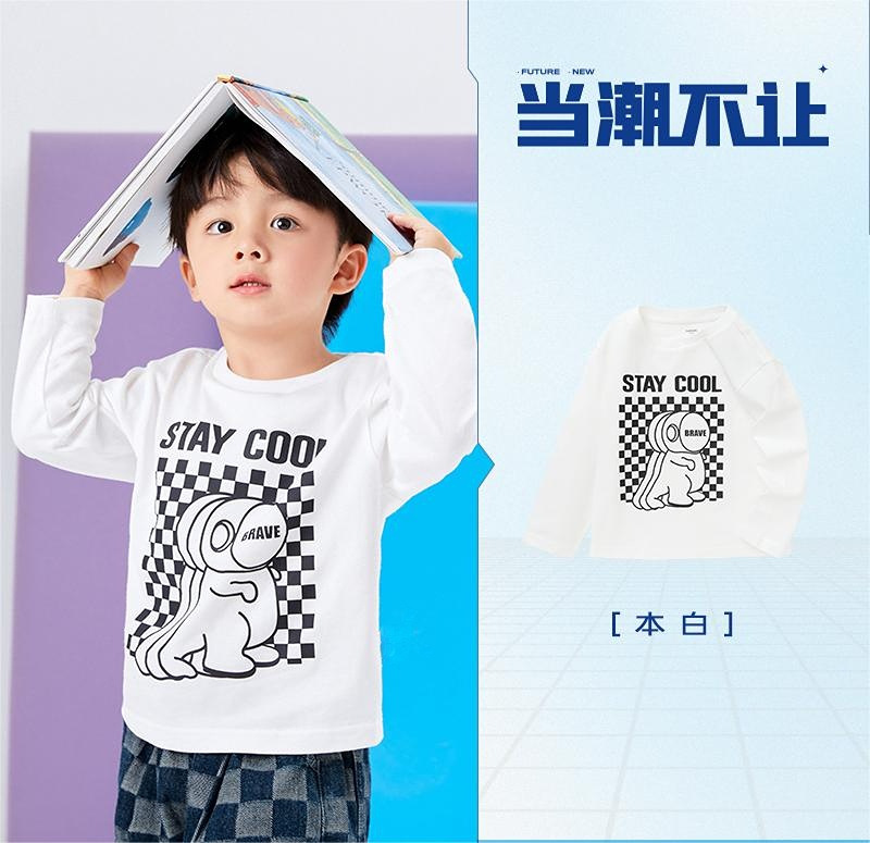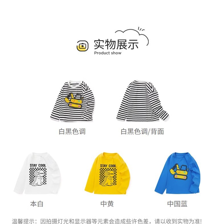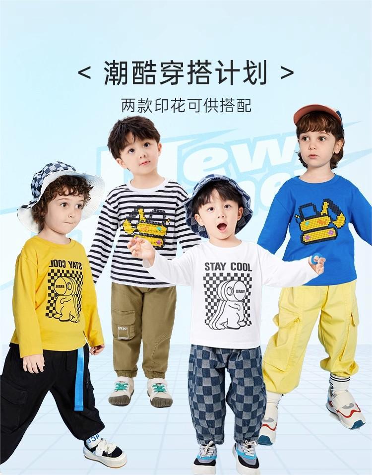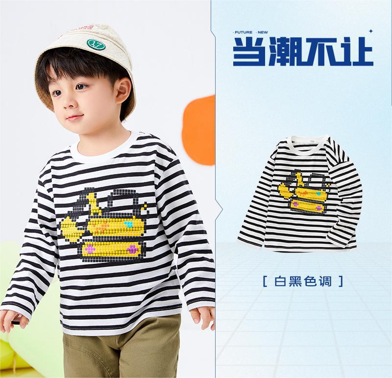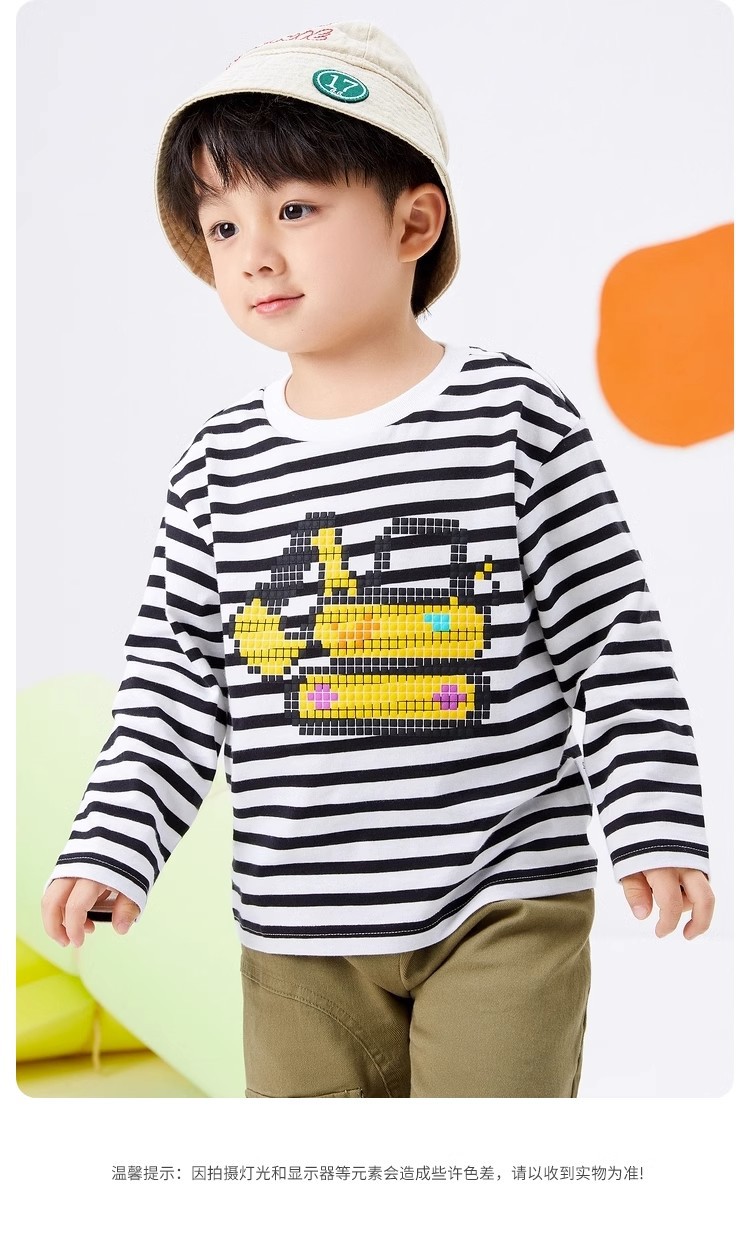 2024 봄 새 소년 긴팔 티셔츠 어린이 착용 만화 인쇄 줄무늬 면 탑 유행 한국 스타일스토어 가기