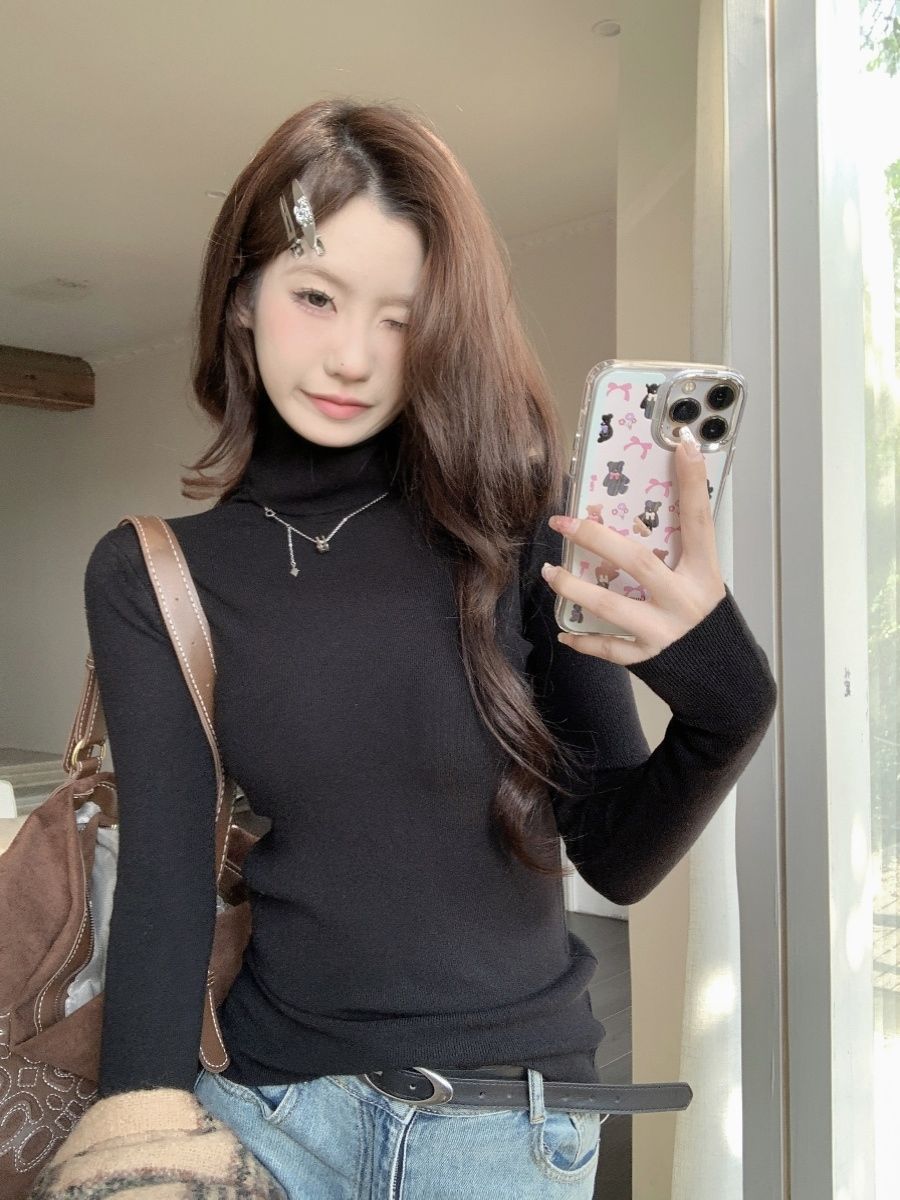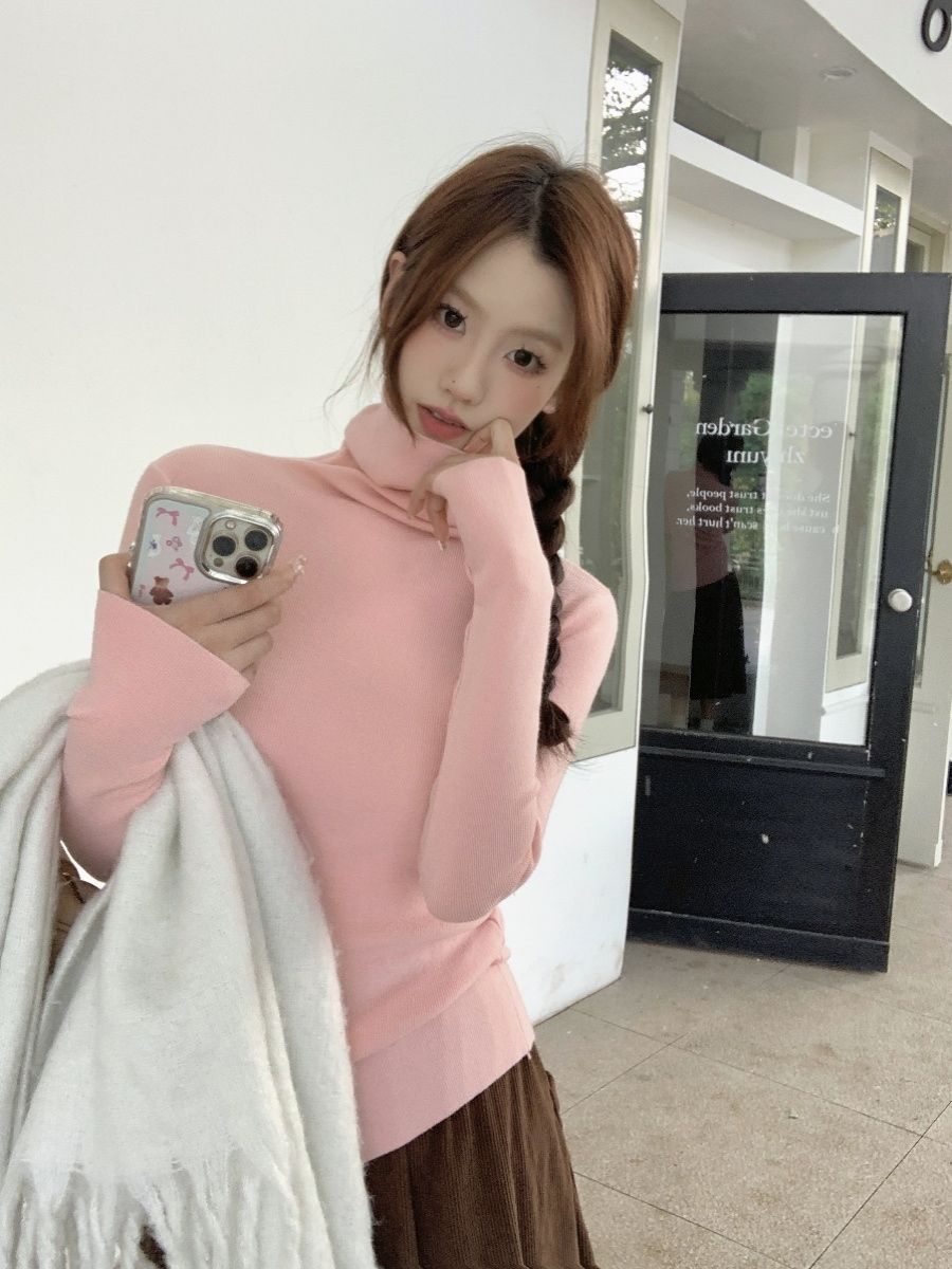 터틀넥 스웨터 여성 내복 가을과 겨울 풀오버 긴 소매 슬리밍 여성용 단색 슬림 스웨터 여성용 올 매치 탑스토어 가기