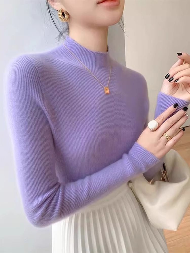 2025 가을 겨울 신상 고급 슬림핏 하프 터틀넥 스웨터 여성용 이너웨어 슬림핏 솔리드 컬러 니트 베이스 셔츠 아우터웨어