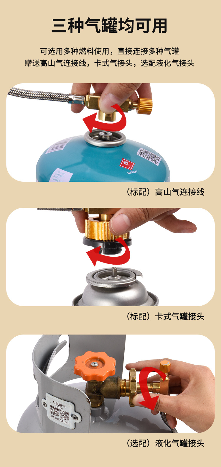 • 야외 난방 바베큐 다기능 로 1m 산 가스 연결 라인 + 카드 가스 커넥터 + 액화 가스 커넥터