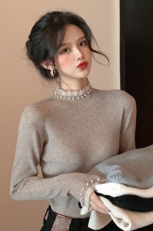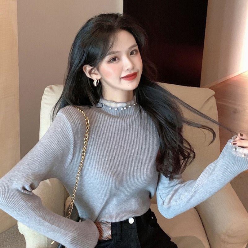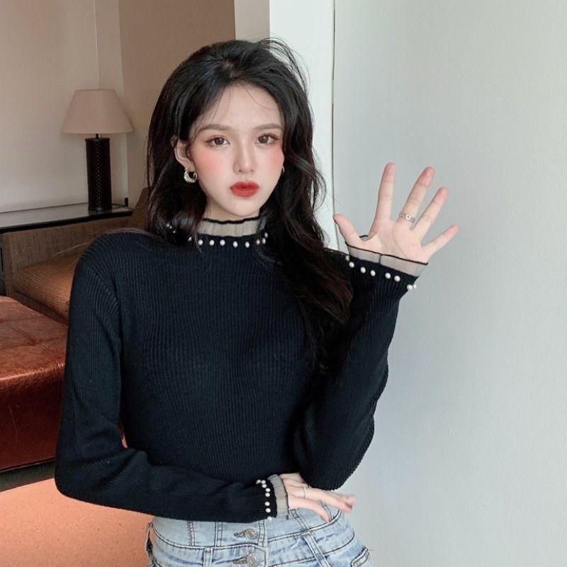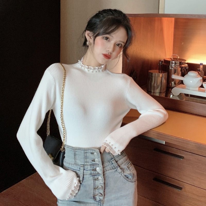 하프 터틀넥 니트 여성 가을 겨울 이너웨어 하이엔드 스웨터 여성 중간 목 외출복 아이스크림 색상스토어 가기
