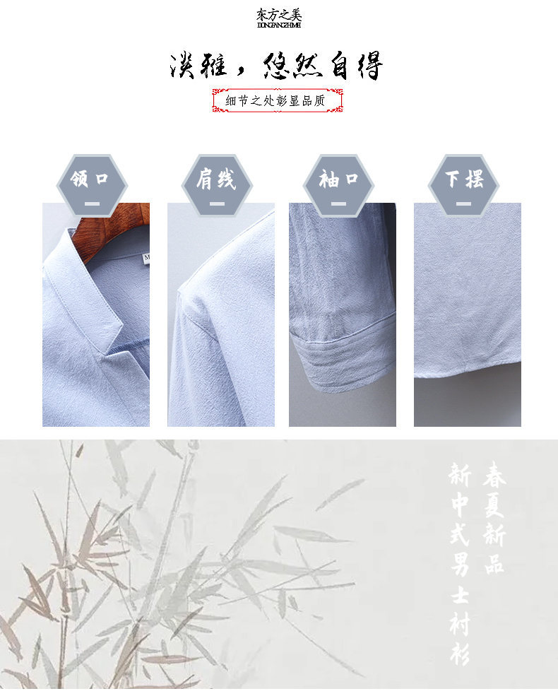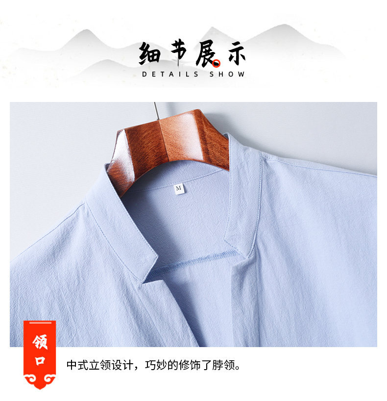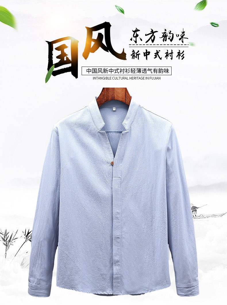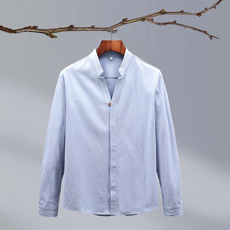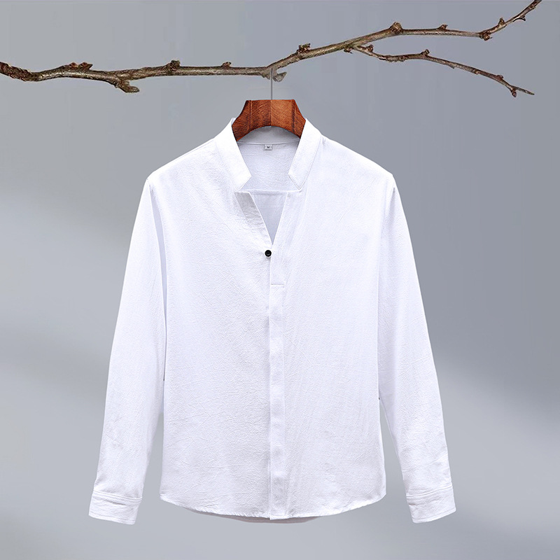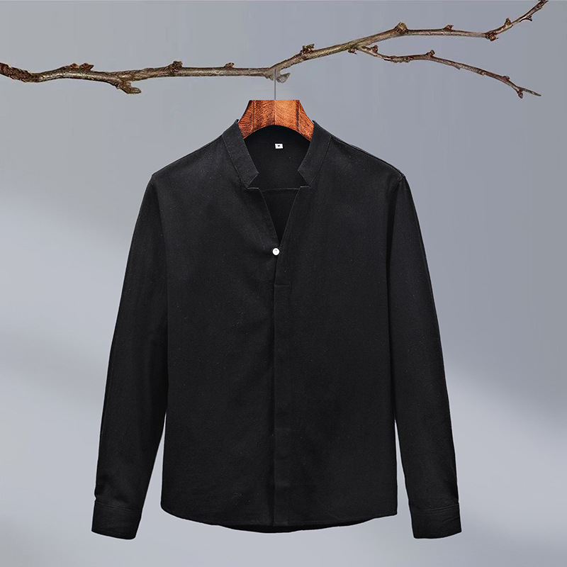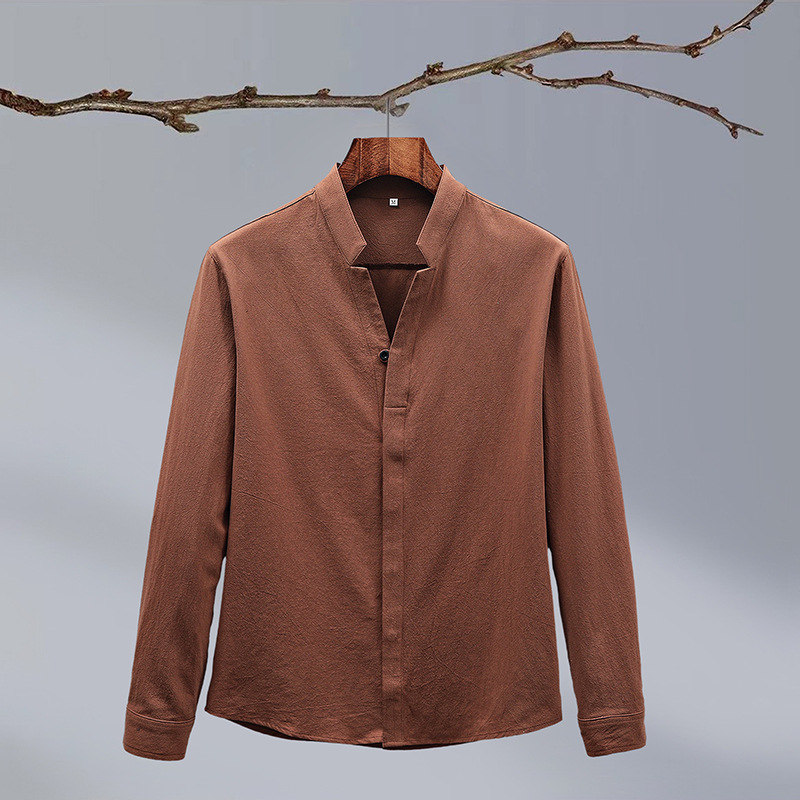 Tiktok 스타일 2024 봄 새로운 크레이프 단색 중국 스타일 남성 긴팔 셔츠 스탠드 칼라 슬림 핏 셔츠스토어 가기