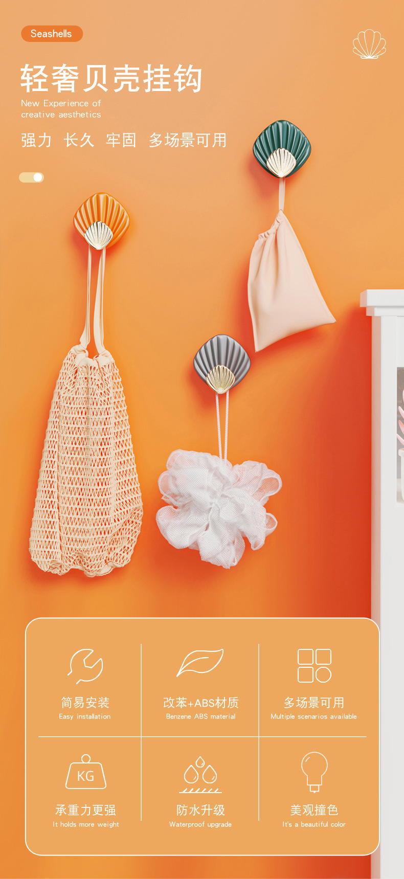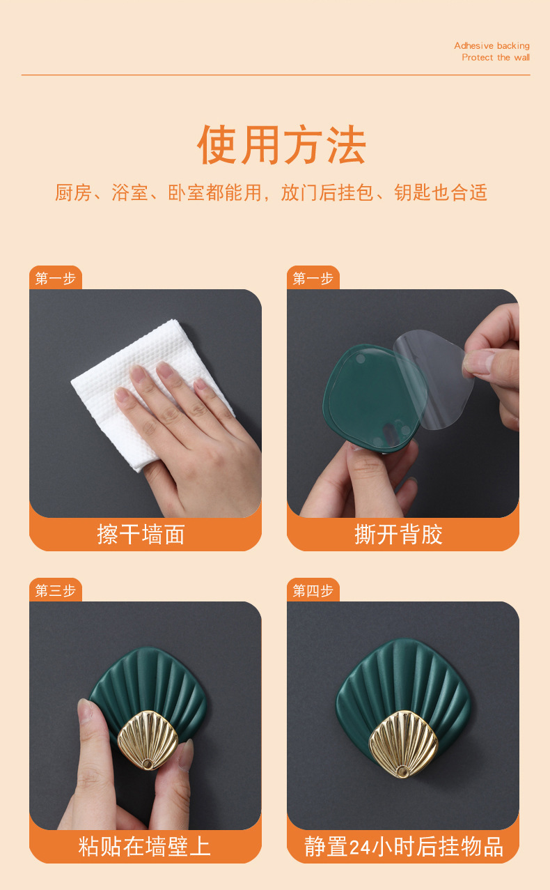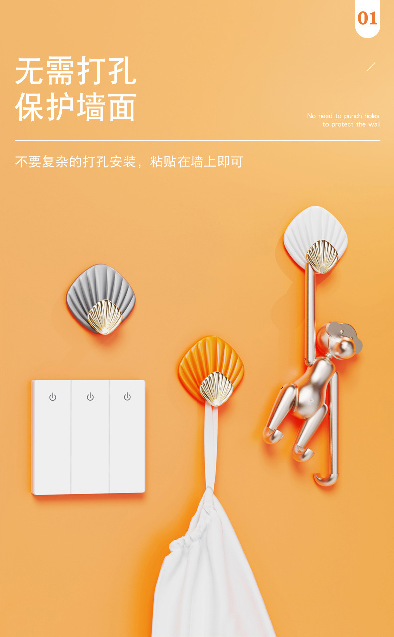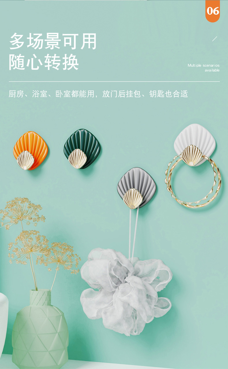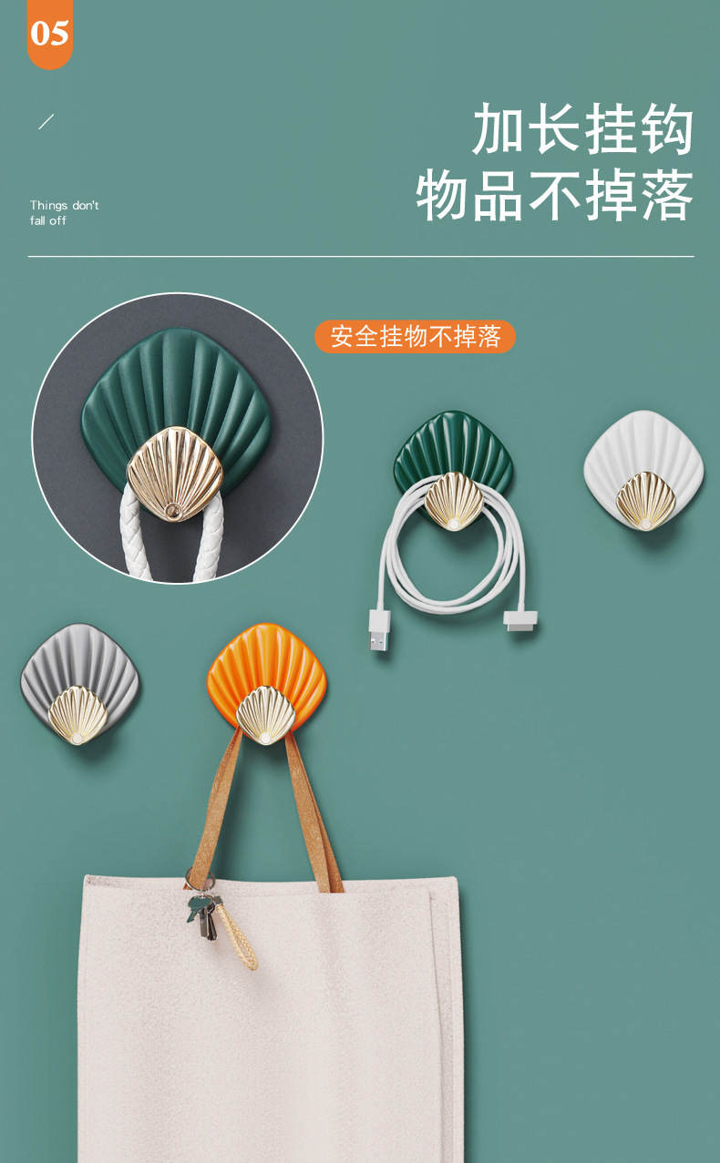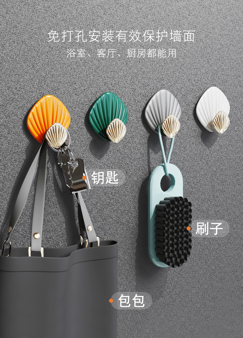 하중 베어링 쉘 비스코스 라이트 럭셔리 펀치없는 강한 후크 뒤에 문 욕실 벽 주방 원활한 옷 끈적 끈적한 후크스토어 가기