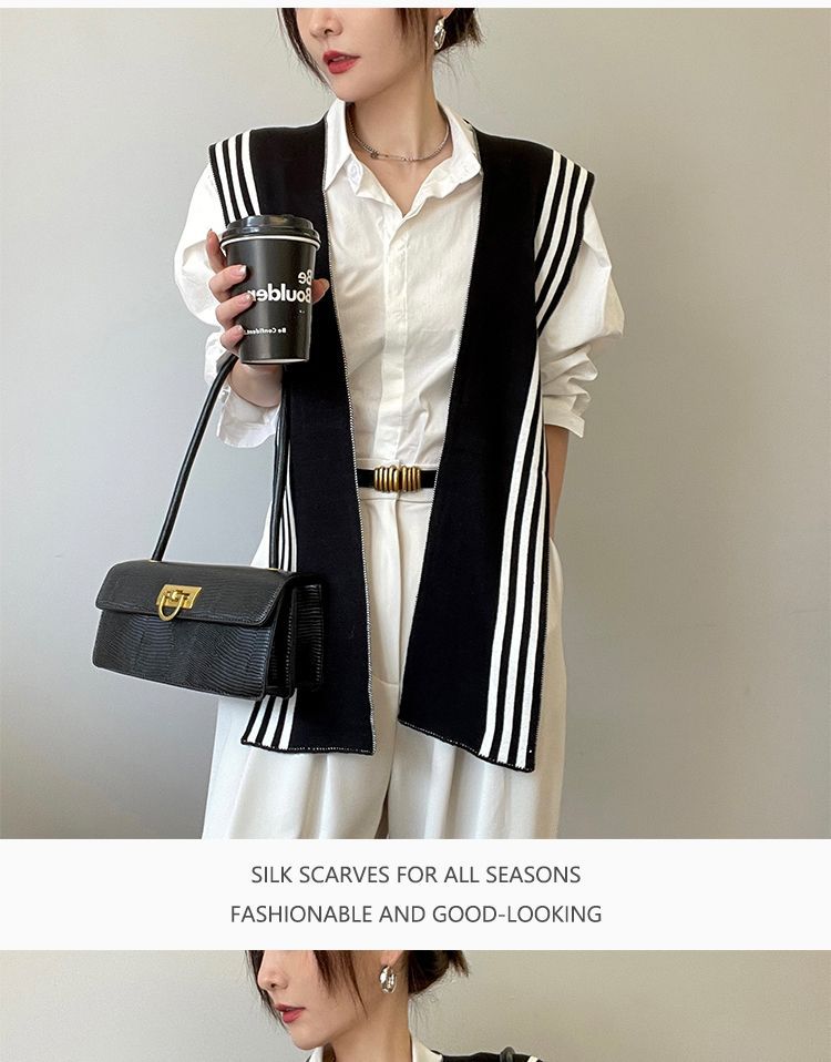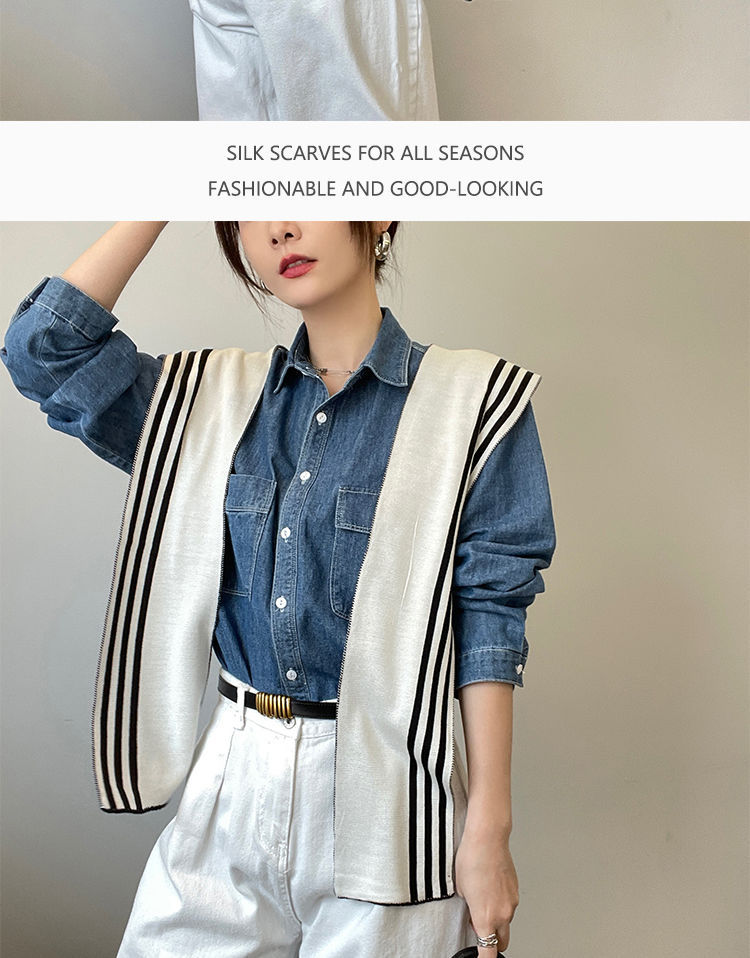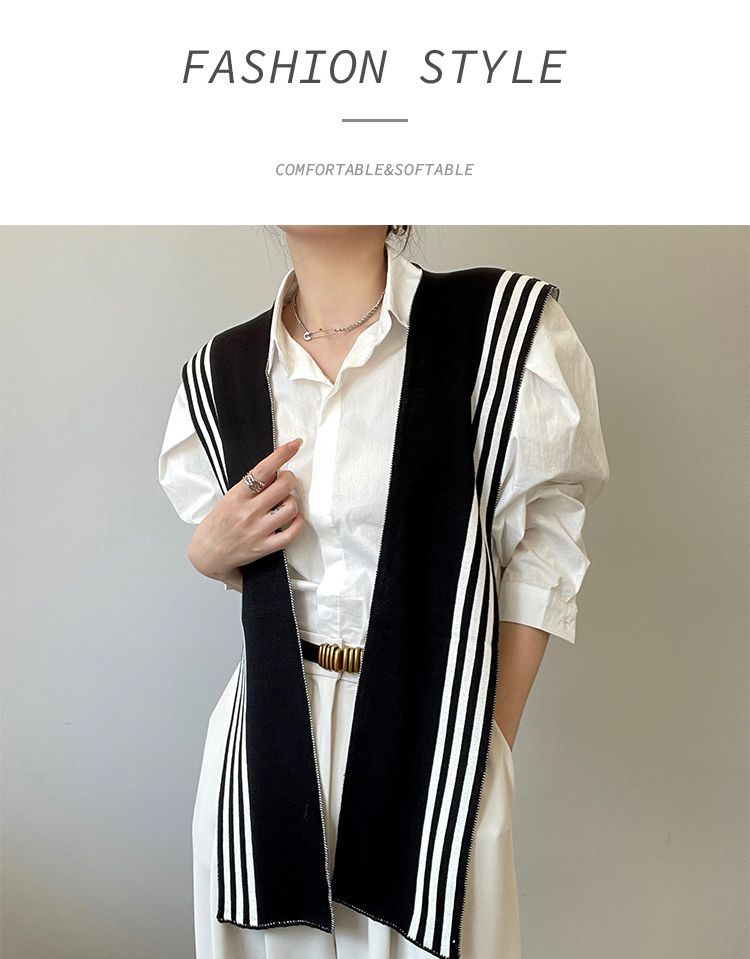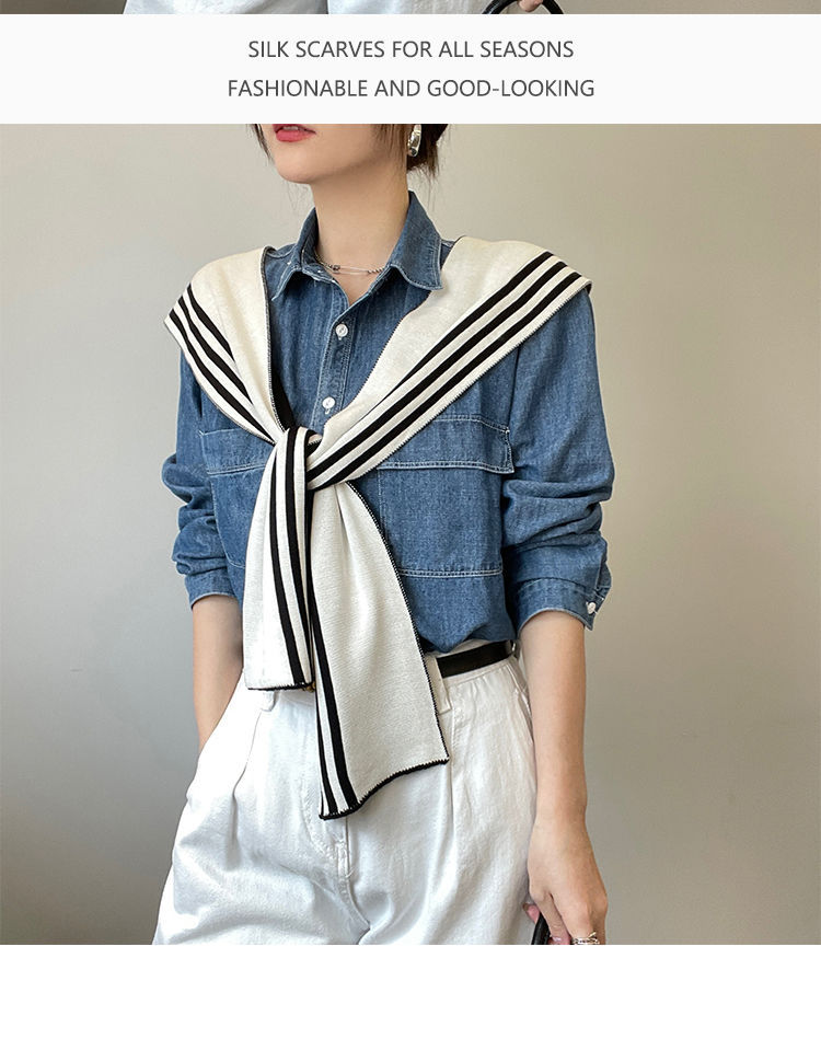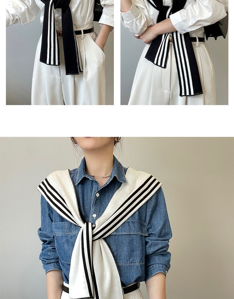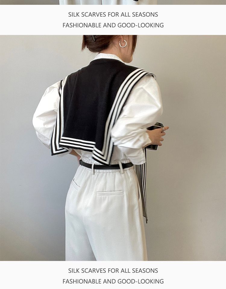 여성용 고급 인터넷 연예인 작은 숄, 흑백 스트라이프 아우터 셔츠, 봄, 가을 니트 페이크 칼라, 에어컨 룸 따뜻한 어깨스토어 가기