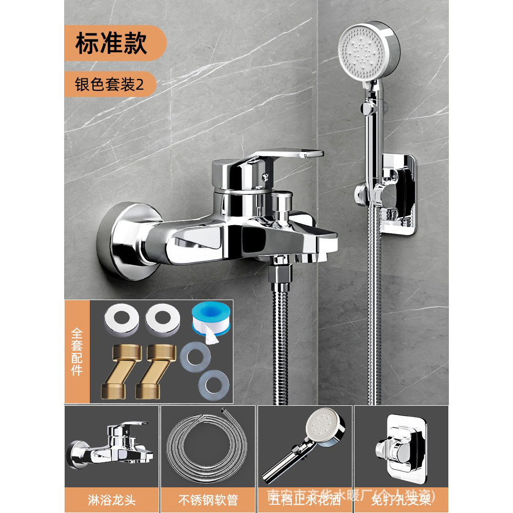 • 구리 [표준] 샤워 수도꼭지 + 스테인레스 스틸 샤워 헤드 + 샤워 브래킷 + 호스