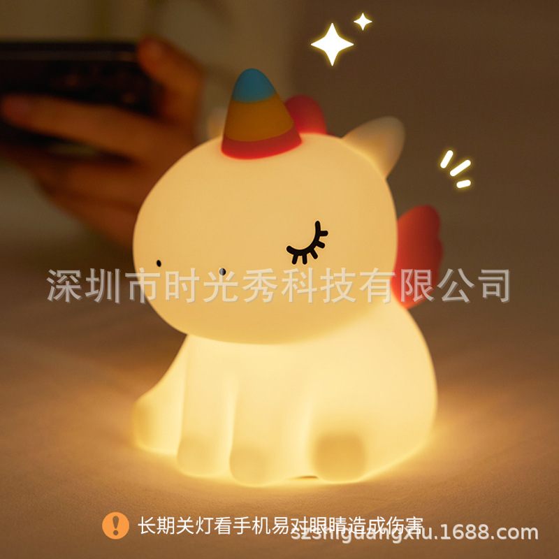 Egogo 유니콘 포니 실리콘 램프 팻 램프 수유 램프 엄마와 아기 램프 수면 램프 야간 조명 센서 분위기
