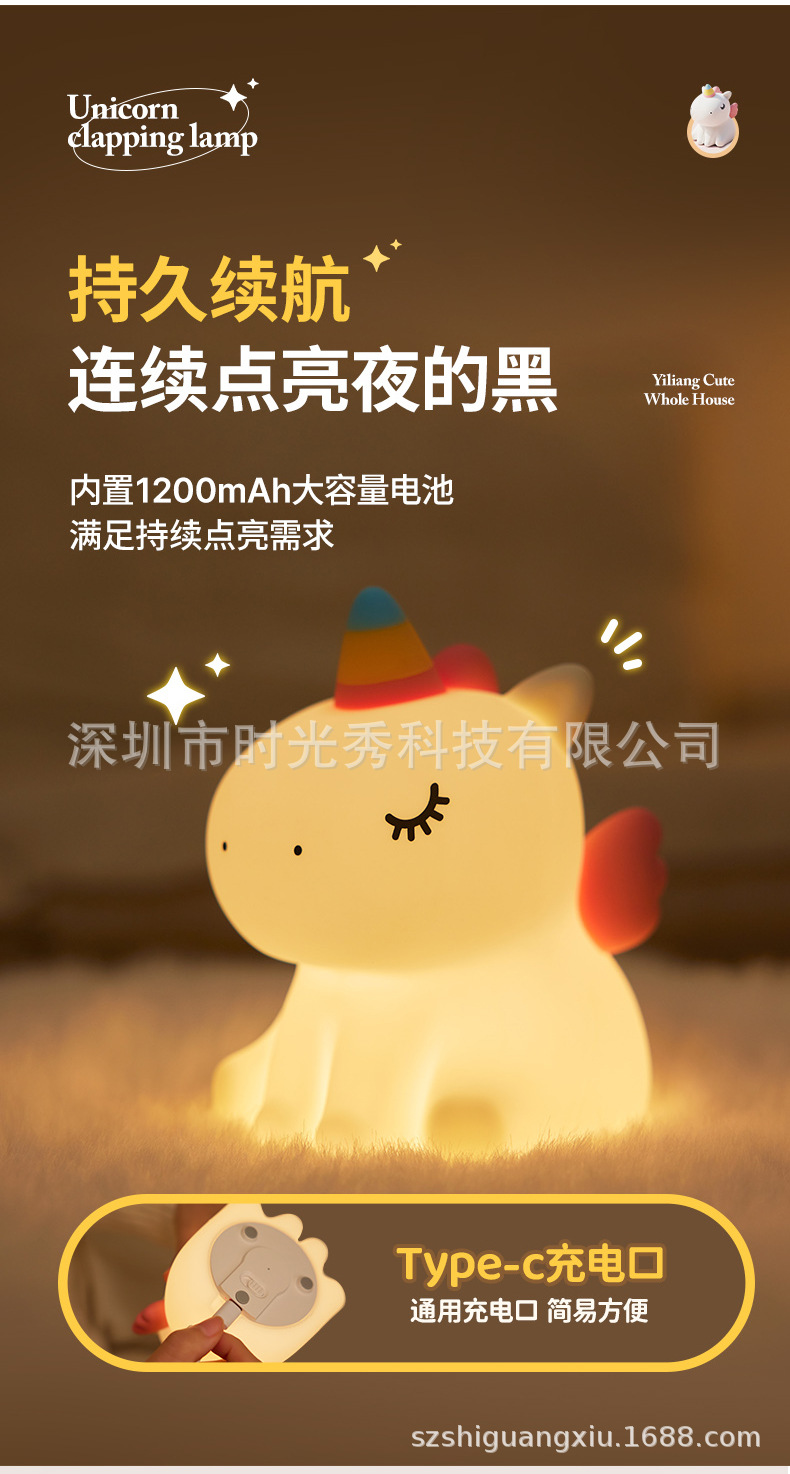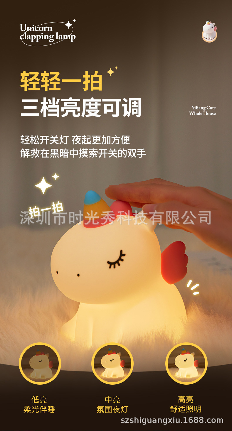 Egogo 유니콘 포니 실리콘 램프 팻 램프 수유 램프 엄마와 아기 램프 수면 램프 야간 조명 센서 분위기스토어 가기