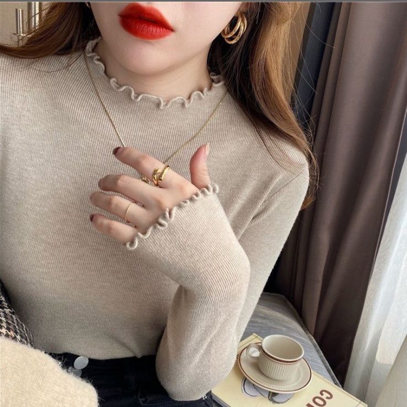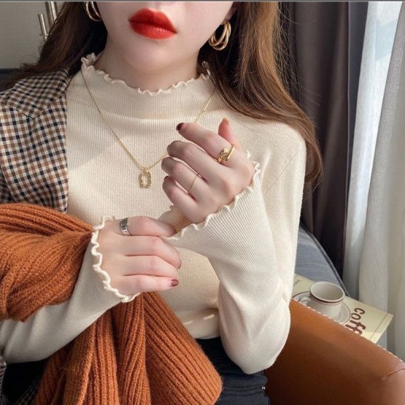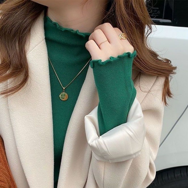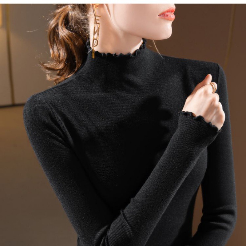 여성용 하프 터틀넥 슬림 니트 스웨터 가을, 겨울 2025 곰팡이 바닥 셔츠 슬리밍 내부 오른쪽 어깨 긴팔 탑스토어 가기