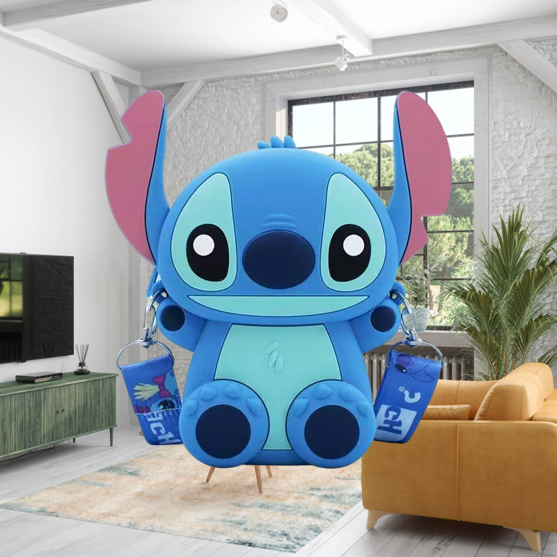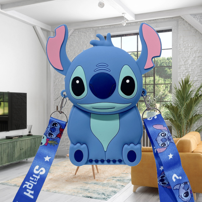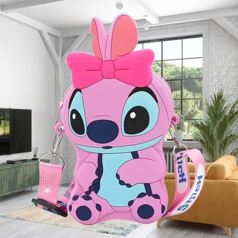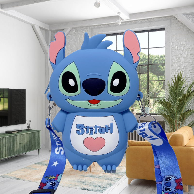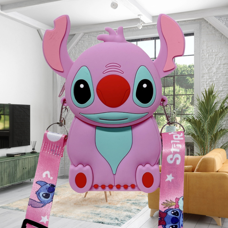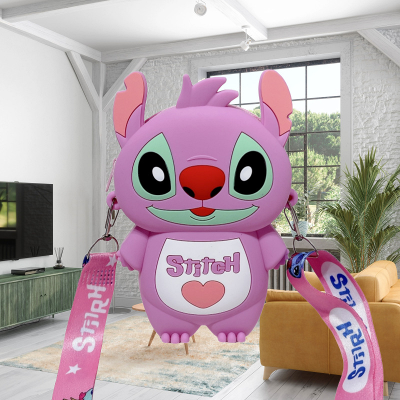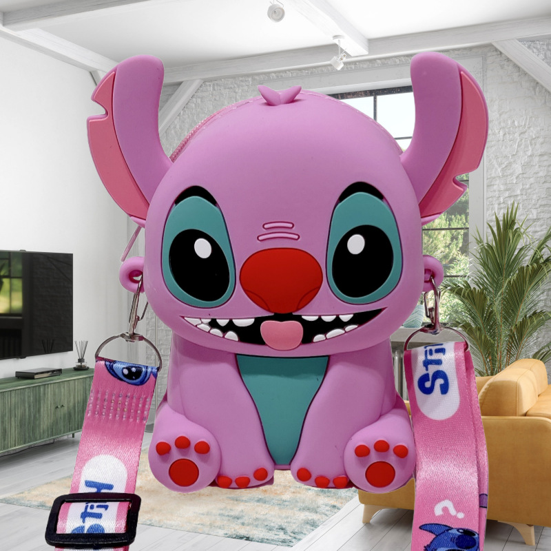 국경을 넘는 새로운 귀여운 만화 스티치 어린이 가방 패션 크로스 바디 공주 가방 미니 가방 실리콘 동전 지갑스토어 가기