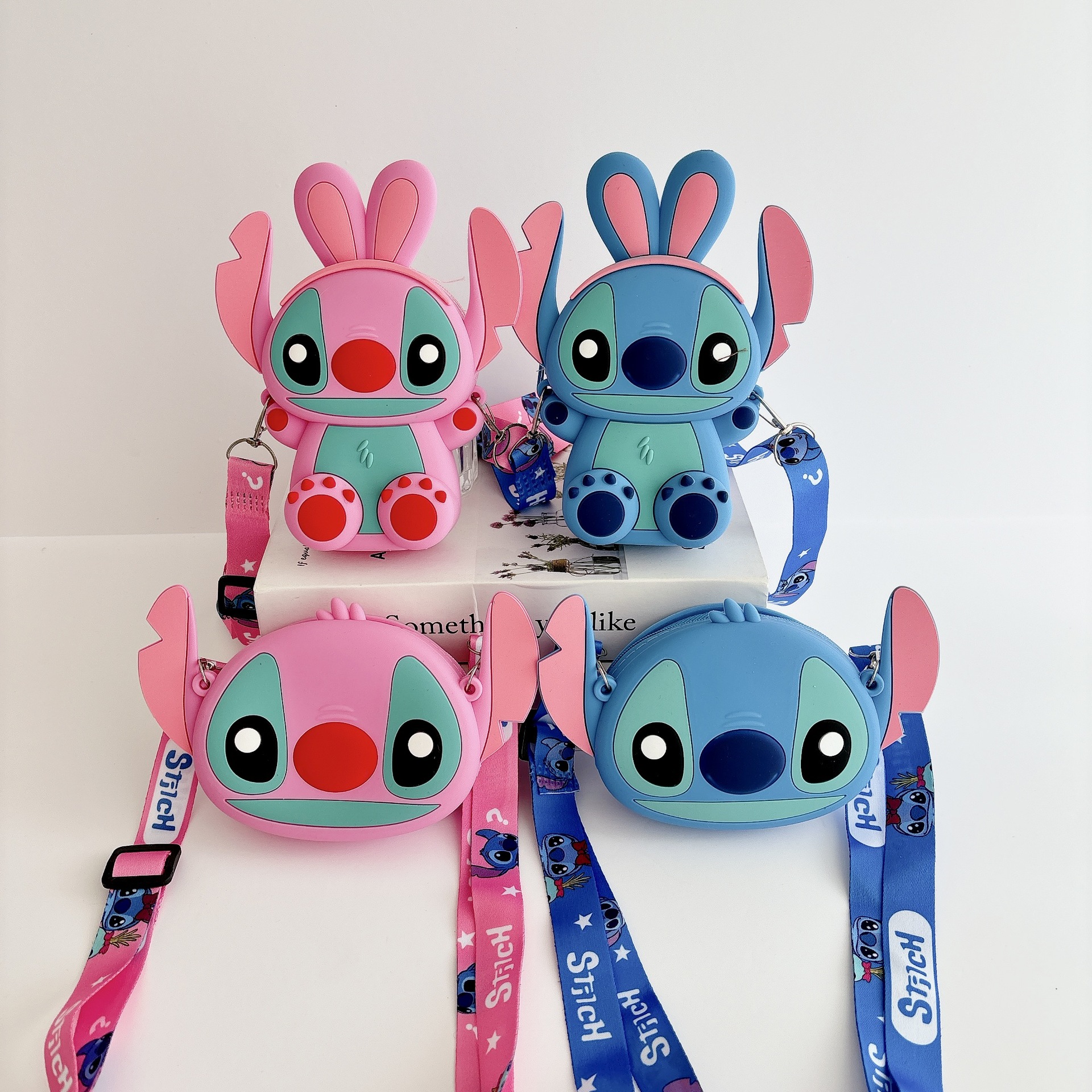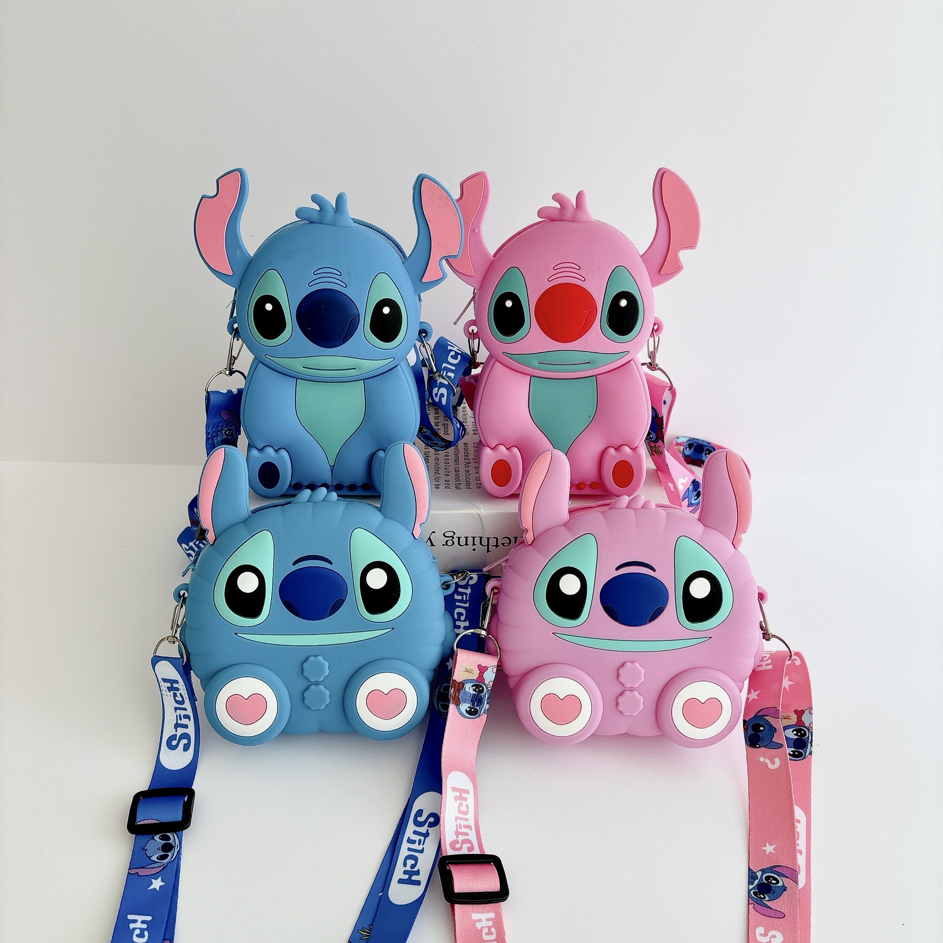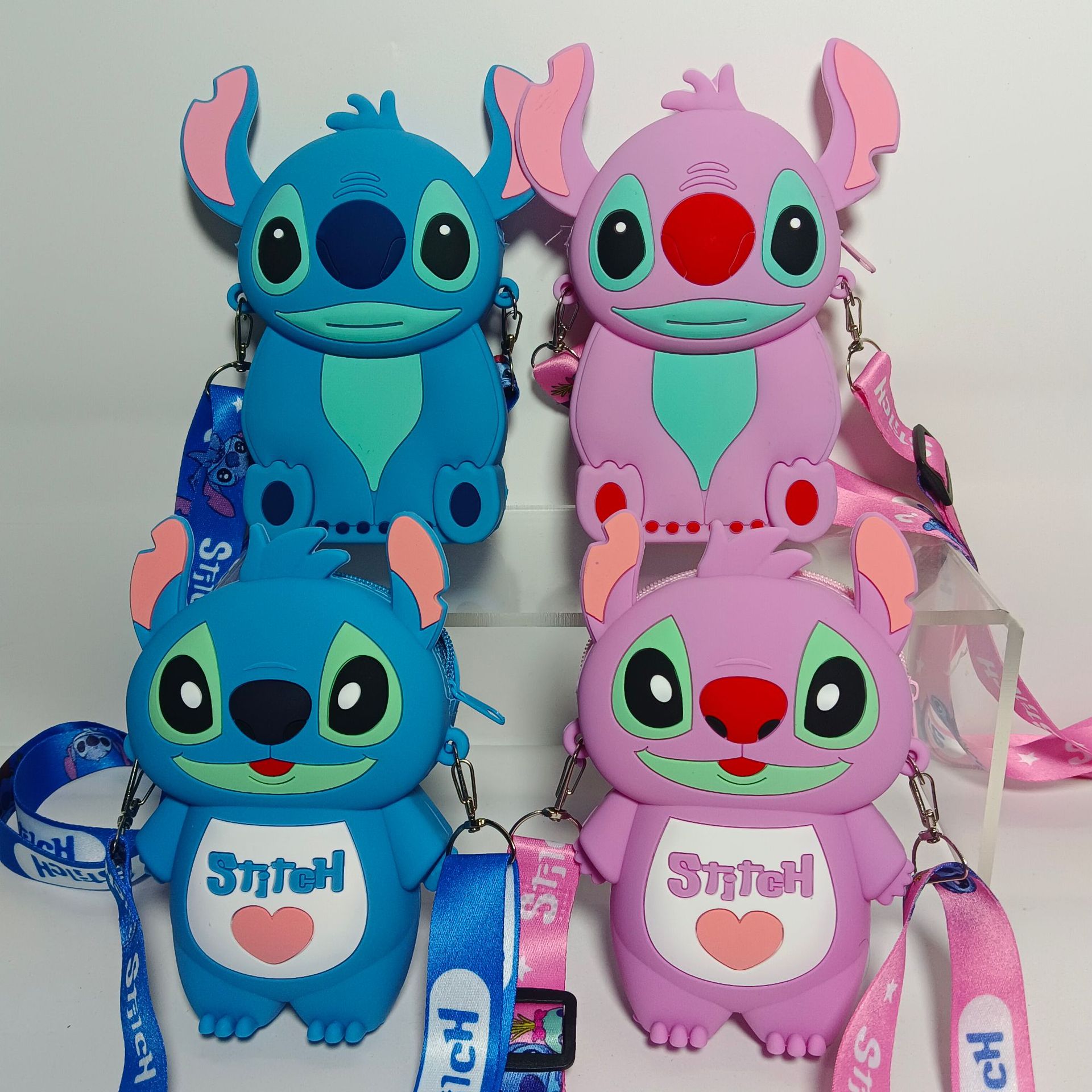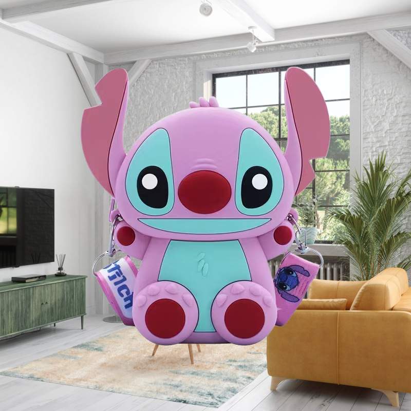 국경을 넘는 새로운 귀여운 만화 스티치 어린이 가방 패션 크로스 바디 공주 가방 미니 가방 실리콘 동전 지갑스토어 가기