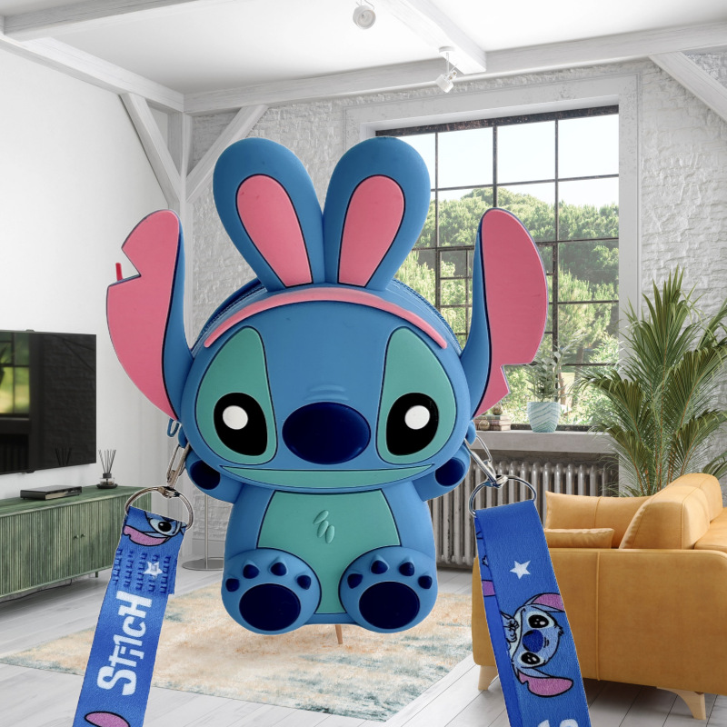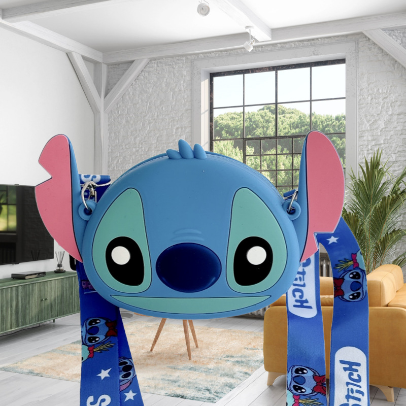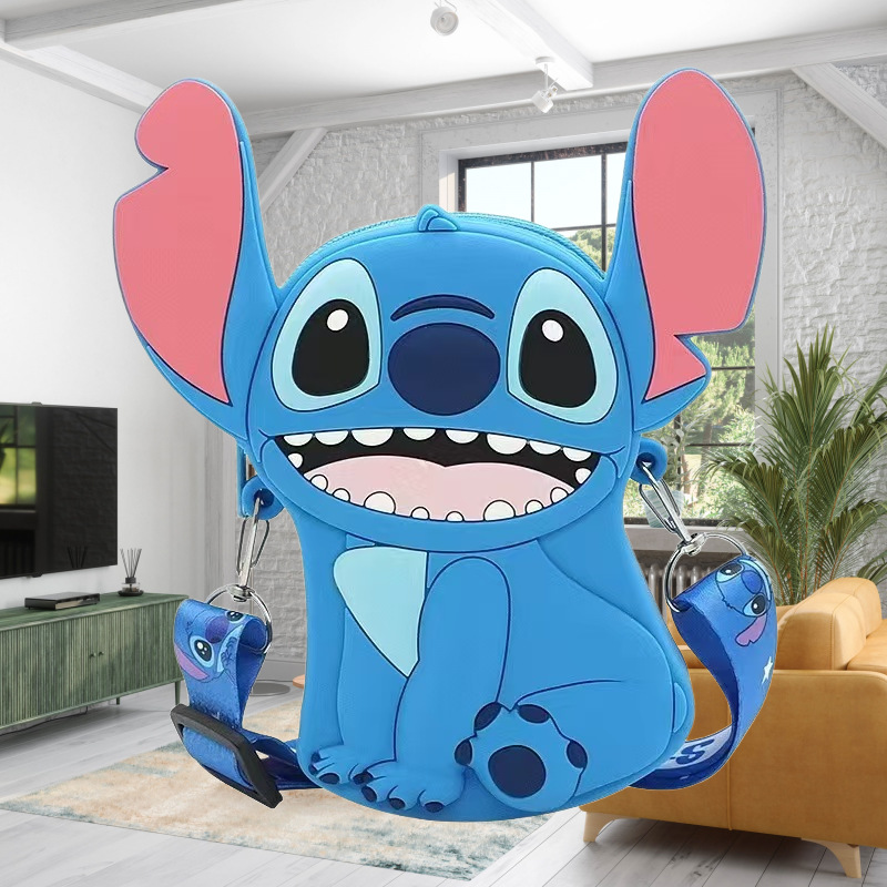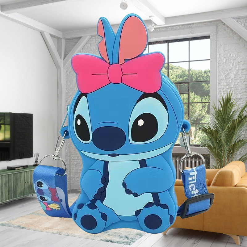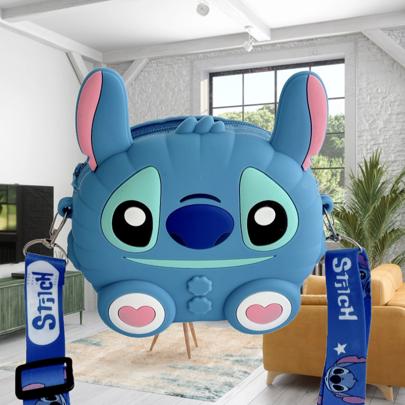 국경을 넘는 새로운 귀여운 만화 스티치 어린이 가방 패션 크로스 바디 공주 가방 미니 가방 실리콘 동전 지갑
