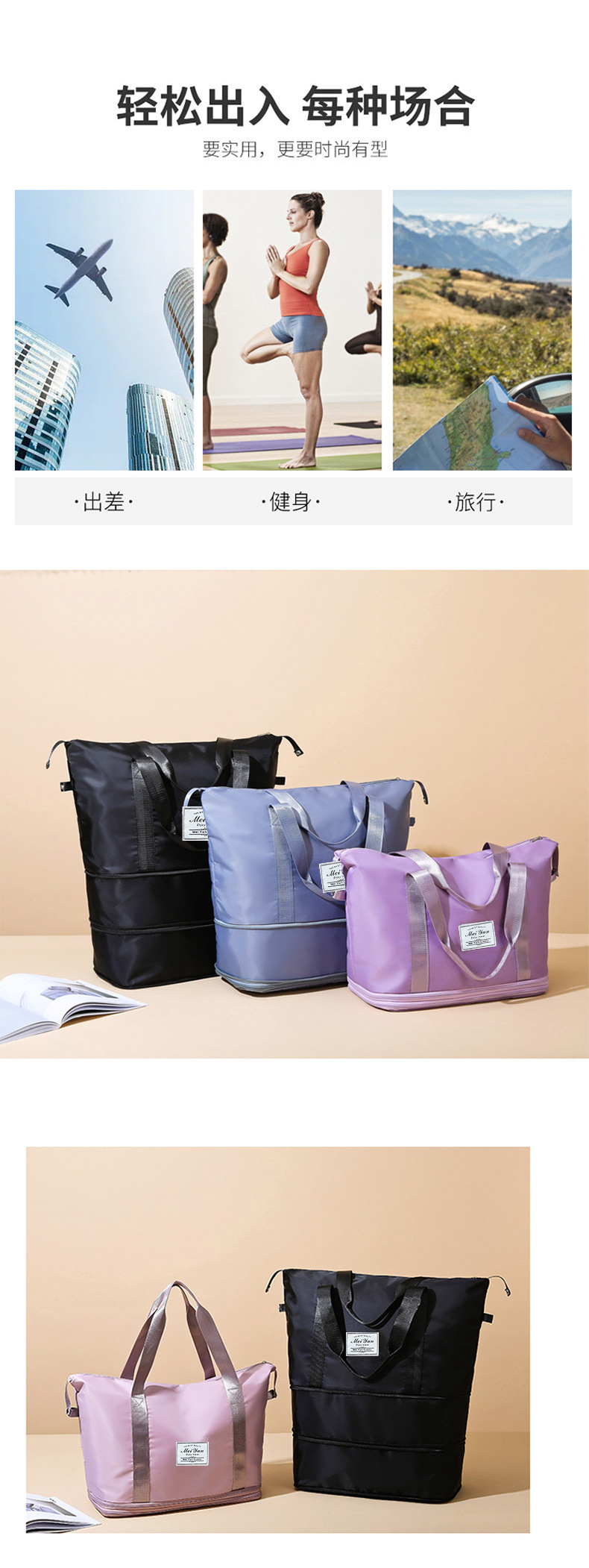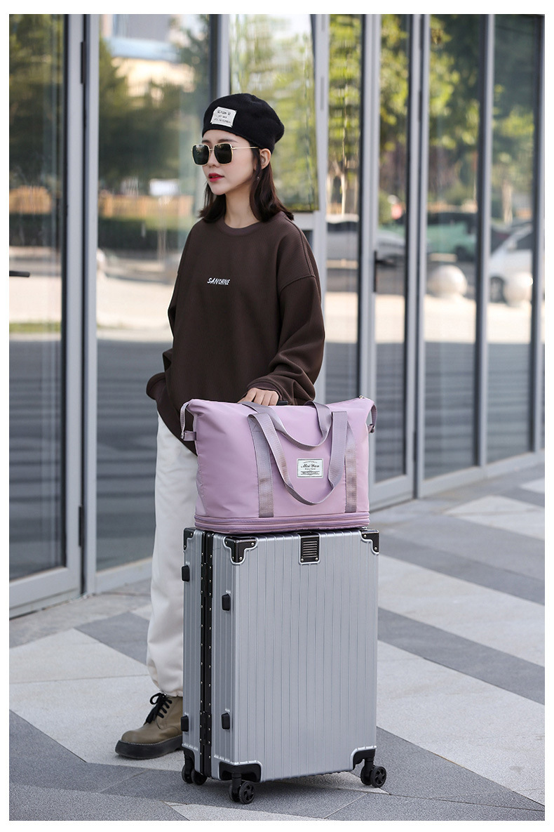 맞춤형 피트니스 가방 이중 레이어 확장 간단한 여행 가방 경량 가방 정시 학생 수하물 가방 인쇄 로고스토어 가기