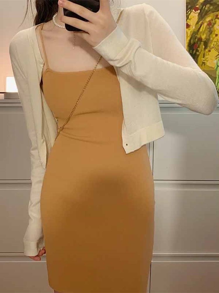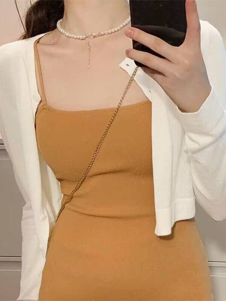 여름 얇은 얼음 실크 니트 선 스크린 카디건 서스펜더 스커트 작은 짧은 코트 스커트 목도리 에어컨 탑스토어 가기