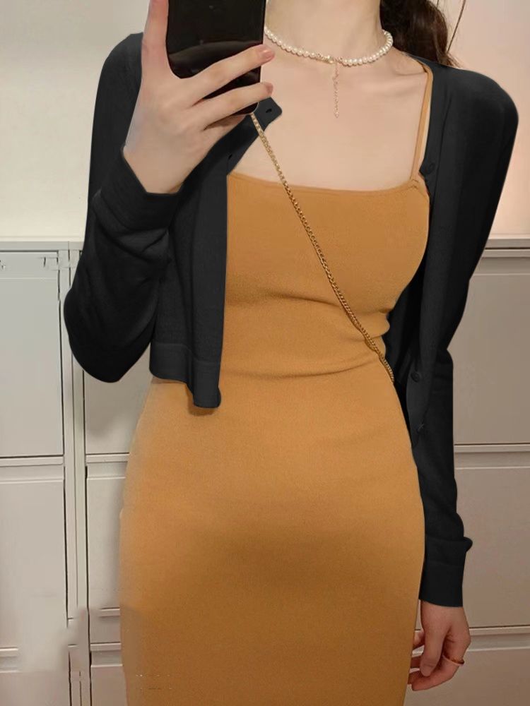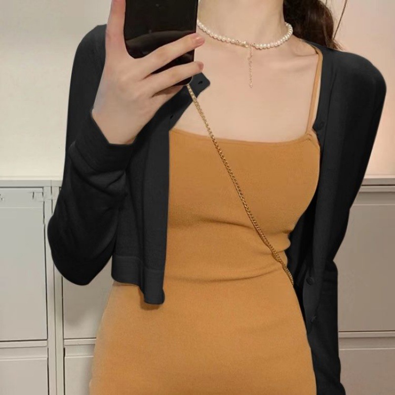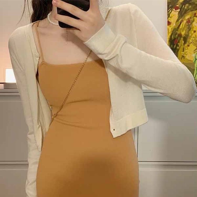 여름 얇은 얼음 실크 니트 선 스크린 카디건 서스펜더 스커트 작은 짧은 코트 스커트 목도리 에어컨 탑